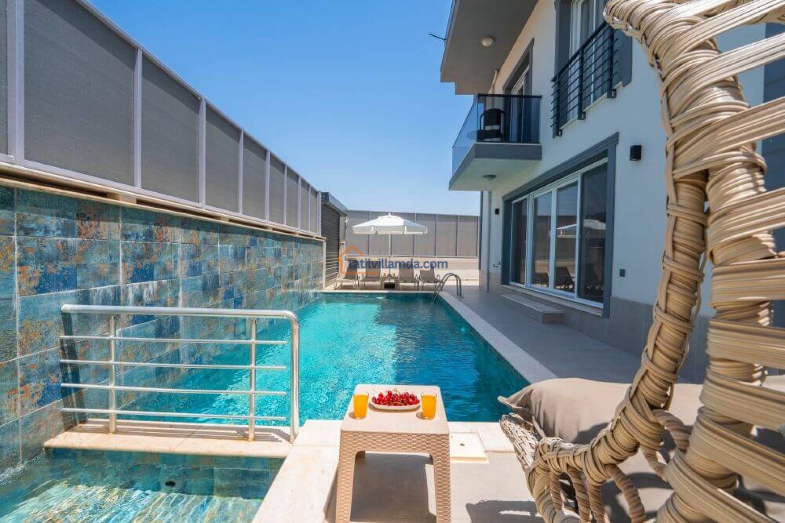 Villa Satürn, 3 yatak odası ve 1 geniş salonuyla 6 kişilik konaklama kapasitesine sahiptir. Modern ve şık tasarımıyla dikkat çeken villamızda, günün yorgunluğunu atabileceğiniz özel bir jakuzi bulunmaktadır. Ayrıca, tamamen korunaklı özel yüzme havuzu sayesinde dilediğiniz gibi yüzebilir, güneşlenebilir ve sevdiklerinizle huzurlu anlar yaşayabilirsiniz. Çocuklar için özel olarak tasarlanmış çocuk havuzu ise ailenizin minik üyeleri için güvenli ve eğlenceli bir alan sunar.