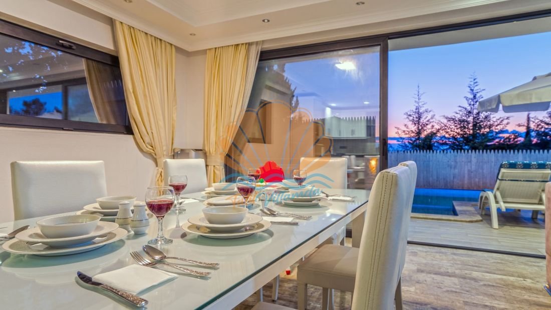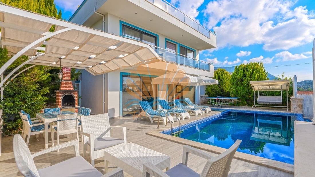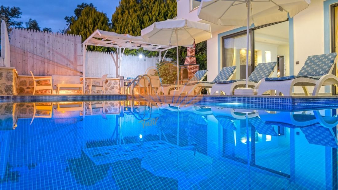 Villanın geniş havuz terası tatilin en keyifli anlarını yaşayabileceğiniz şekilde tasarlanmıştır. Havuz başında şezlonglar ve şemsiye bulunmakta olup güneşin tadını çıkarabilir veya gölgede dinlenebilirsiniz. Aynı zamanda açık havada keyifli yemekler hazırlayabileceğiniz bir barbekü alanı ve masa takımı da mevcuttur. Bahçe kısmında bulunan salıncak ve bahçe oturma grubu, gün batımını izlerken keyifli sohbetler yapabileceğiniz güzel bir alan sunar.