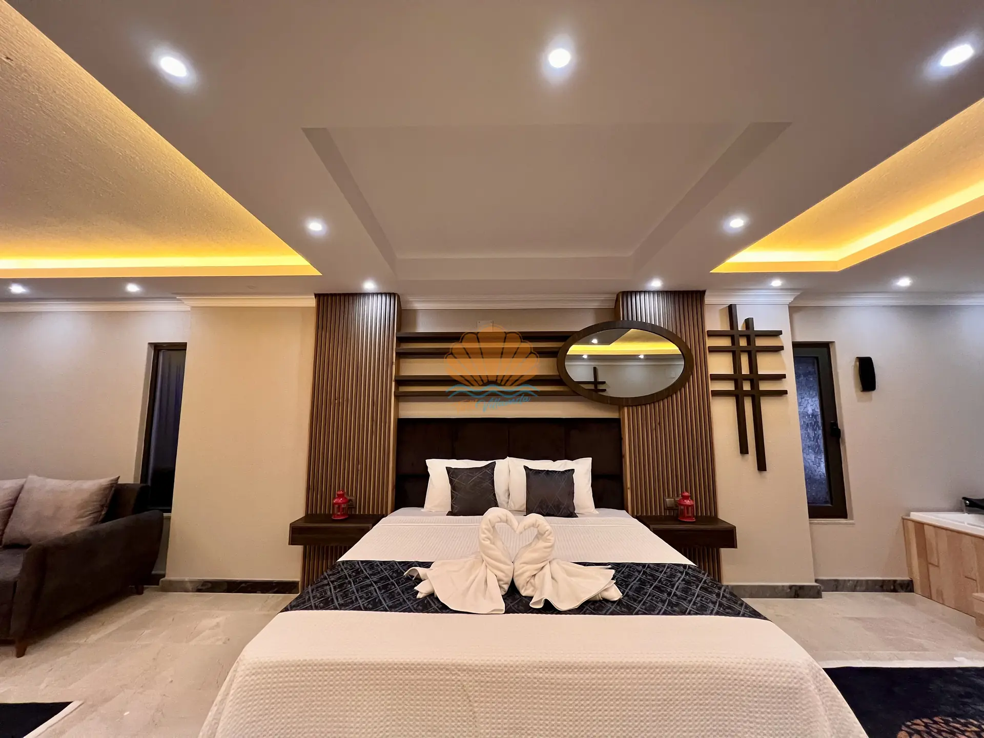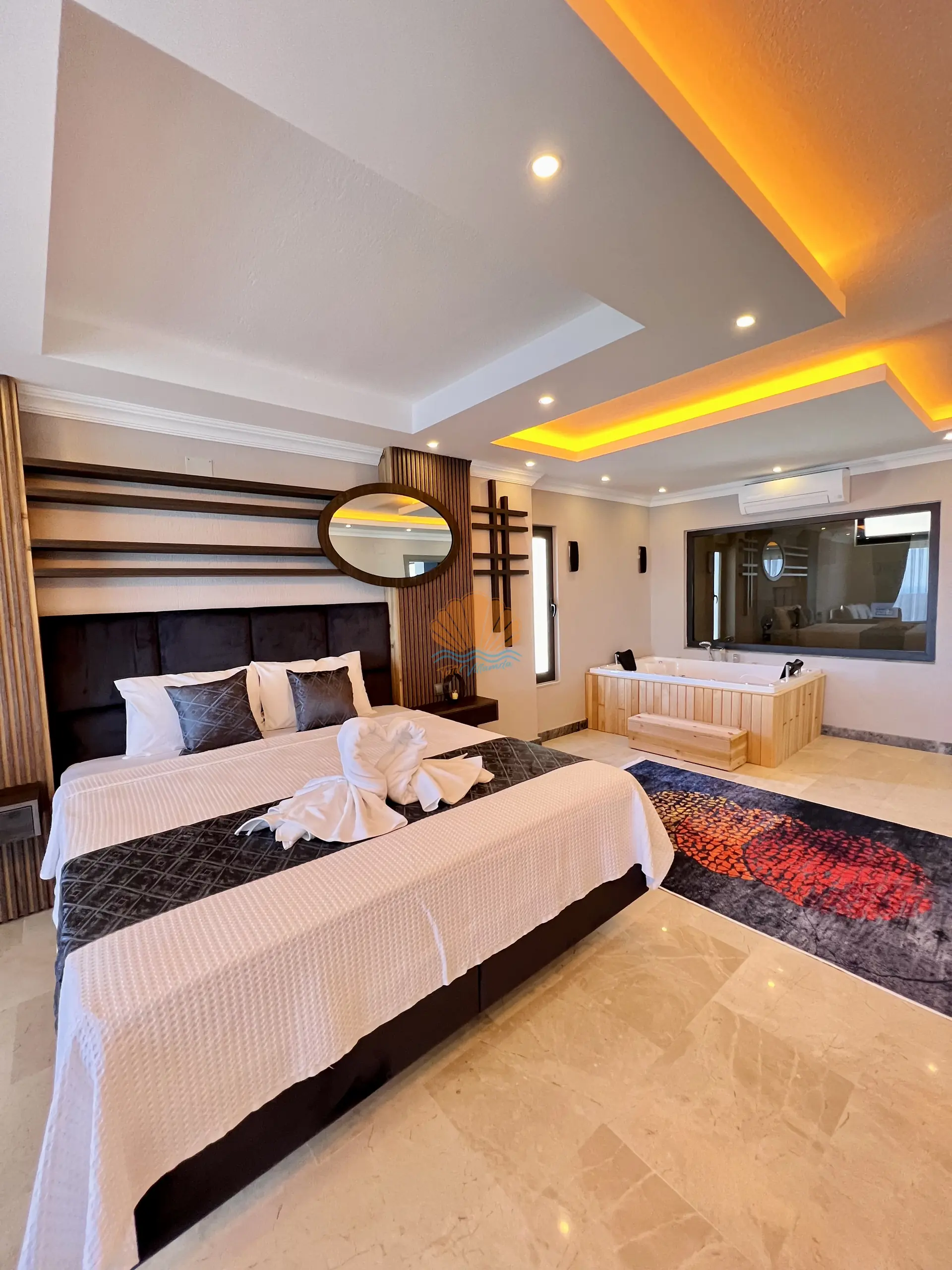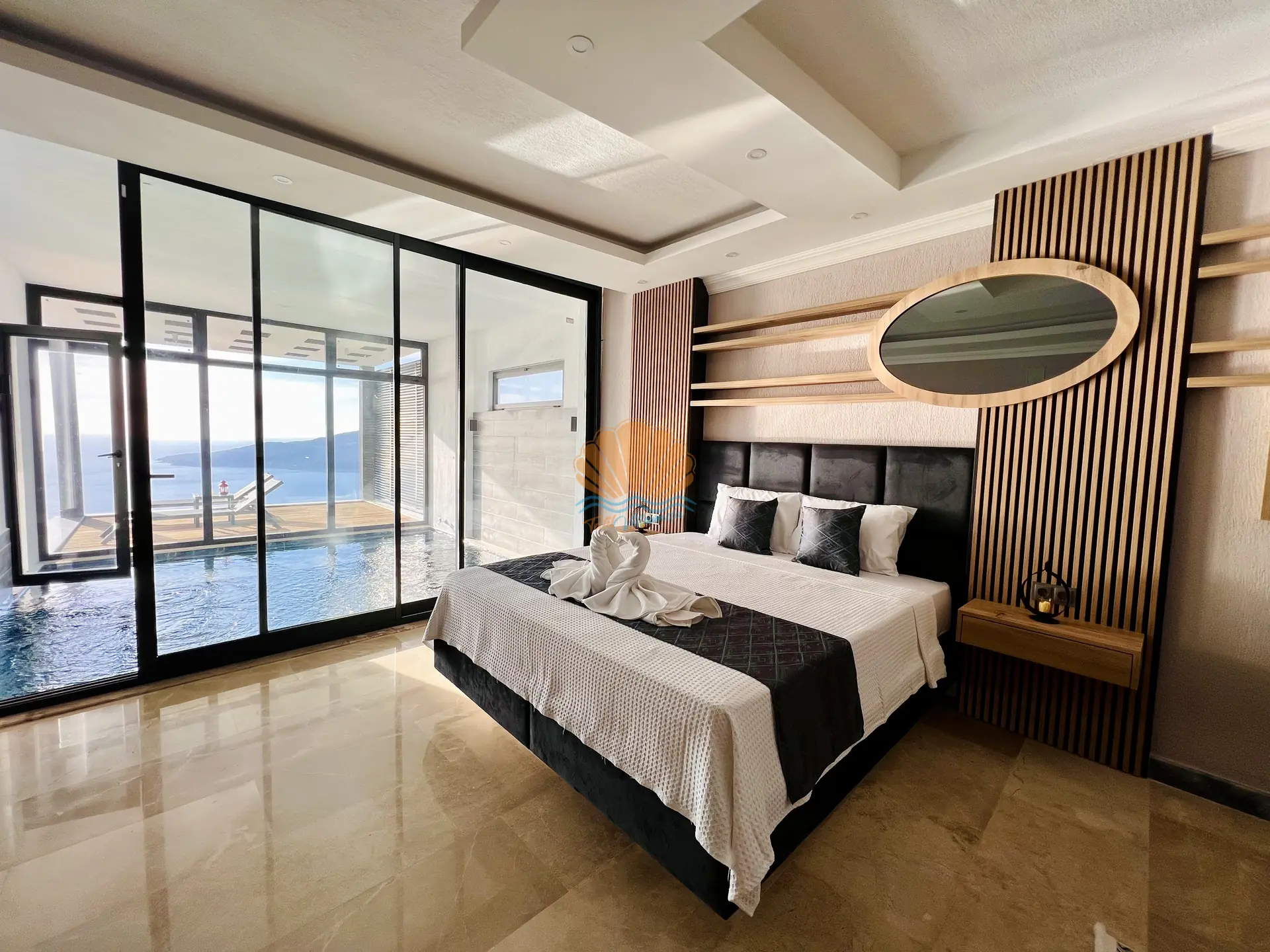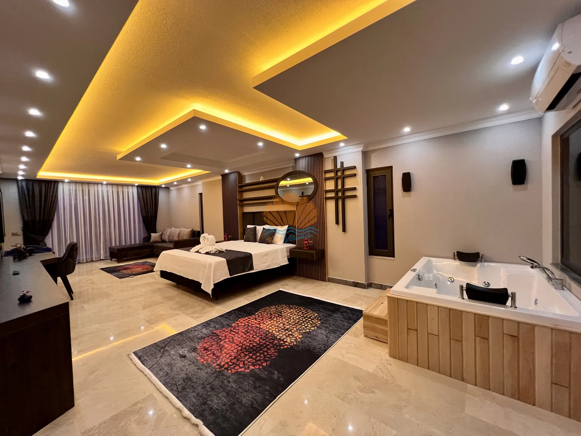 Toplamda 3 yatak odasına sahip olan villa, 6 kişilik konaklama kapasitesi ile aileler ve arkadaş grupları için oldukça uygundur. Odaların konforlu ve şık tasarımı, tatiliniz boyunca rahat etmenizi sağlarken; jakuzi, sauna ve Türk hamamı gibi ayrıcalıklı özellikler sayesinde adeta bir spa deneyimi yaşarsınız. Ayrıca villada bulunan kapalı ve ısıtmalı iç havuz, özellikle sezon dışı konaklamalarda da keyifli bir tatil imkânı sunar.