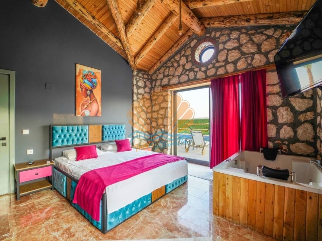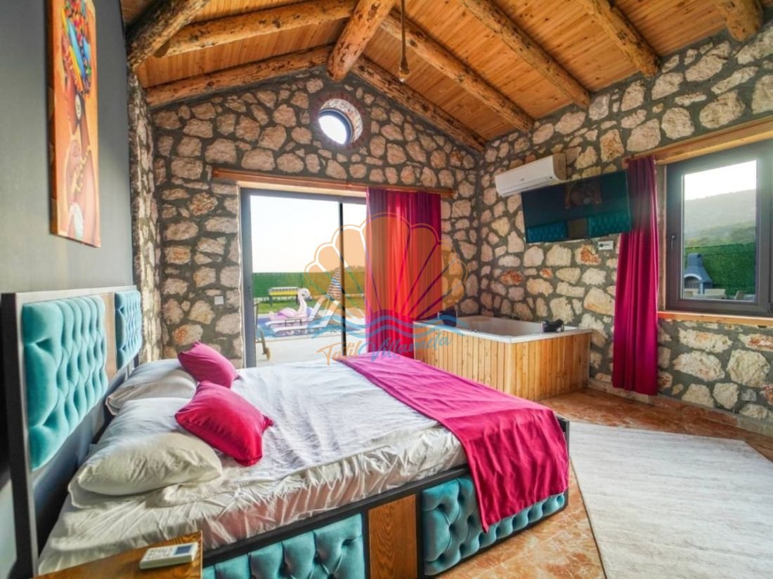 Kalkan Kumluova mevkiinde konumlanan, doğayla iç içe ve tam korunaklı yapısıyla öne çıkan özel bir tatil villasıdır. Gözlerden uzak, huzurlu bir konaklama arayan misafirler için ideal olan villa; hem muhafazakâr ailelere hem de sakin bir tatil planlayan çekirdek ailelere hitap etmektedir. Taş mimarisi sayesinde yaz aylarında serin, estetik ve doğal bir atmosfer sunar. Özenle tasarlanmış iç ve dış yaşam alanları, konfor ile şıklığı bir araya getirir.