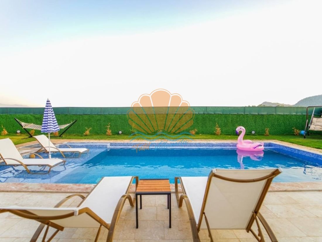 Geniş ve korunaklı özel yüzme havuzu, dışarıdan görünmeyecek şekilde konumlandırılmıştır. Havuz terasında şezlonglar, şemsiye, salıncak, bahçe oturma grubu ve barbekü alanı yer alır. Gün boyu güneşin ve temiz havanın tadını çıkarabilir, akşam saatlerinde ise barbekü keyfi yapabilirsiniz. Geniş bahçesi sayesinde çocuklu aileler için de rahat ve güvenli bir kullanım alanı sunar.