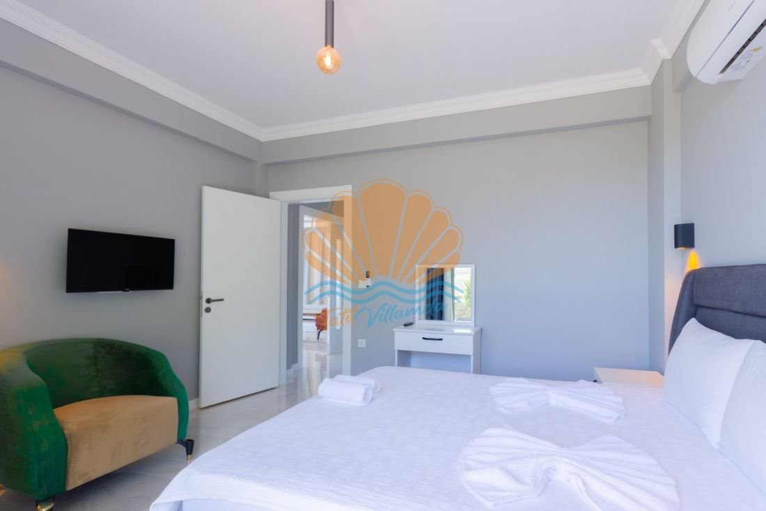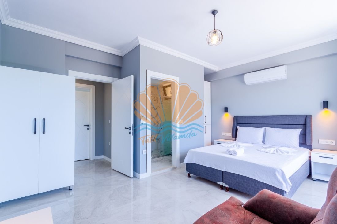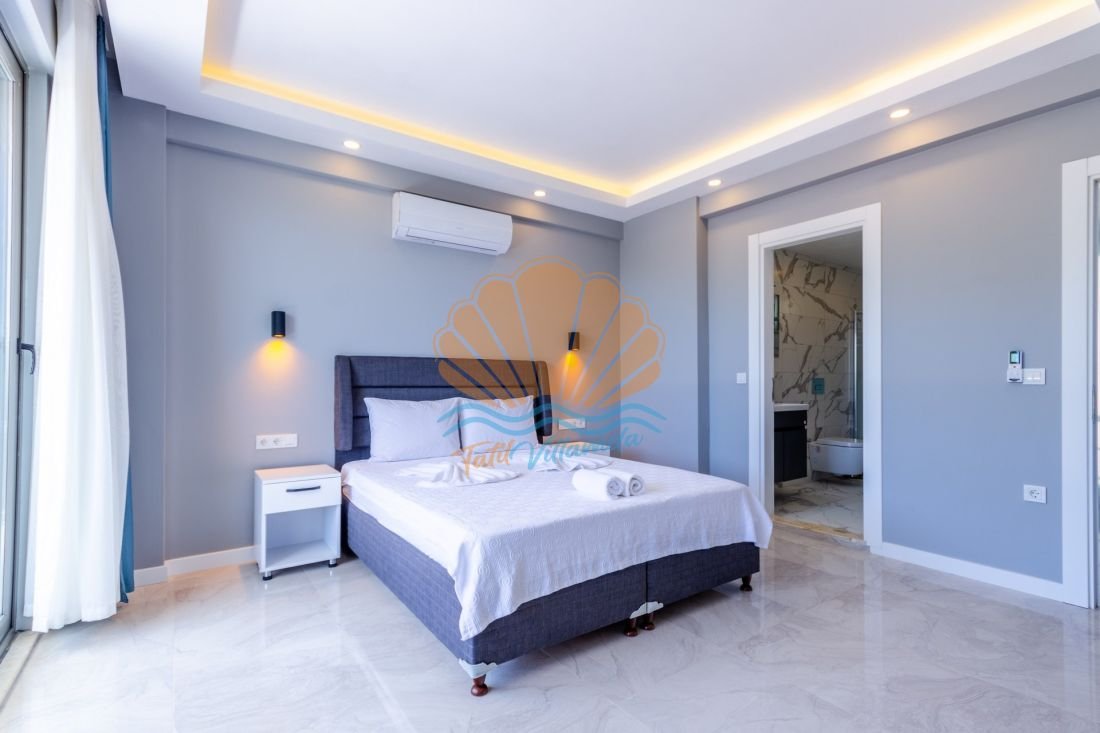 4 yatak odalı ve 8 kişi konaklama kapasitesine sahip olan Villa Sonyaz 2, geniş aileler ve arkadaş grupları için oldukça konforlu bir seçenektir. Tüm yatak odalarının ebeveyn banyolu olması, misafirlere maksimum mahremiyet ve rahatlık sunar. Modern ve şık bir mimari anlayışla dizayn edilen villa, konforlu mobilyaları ve ferah yaşam alanlarıyla dikkat çeker.