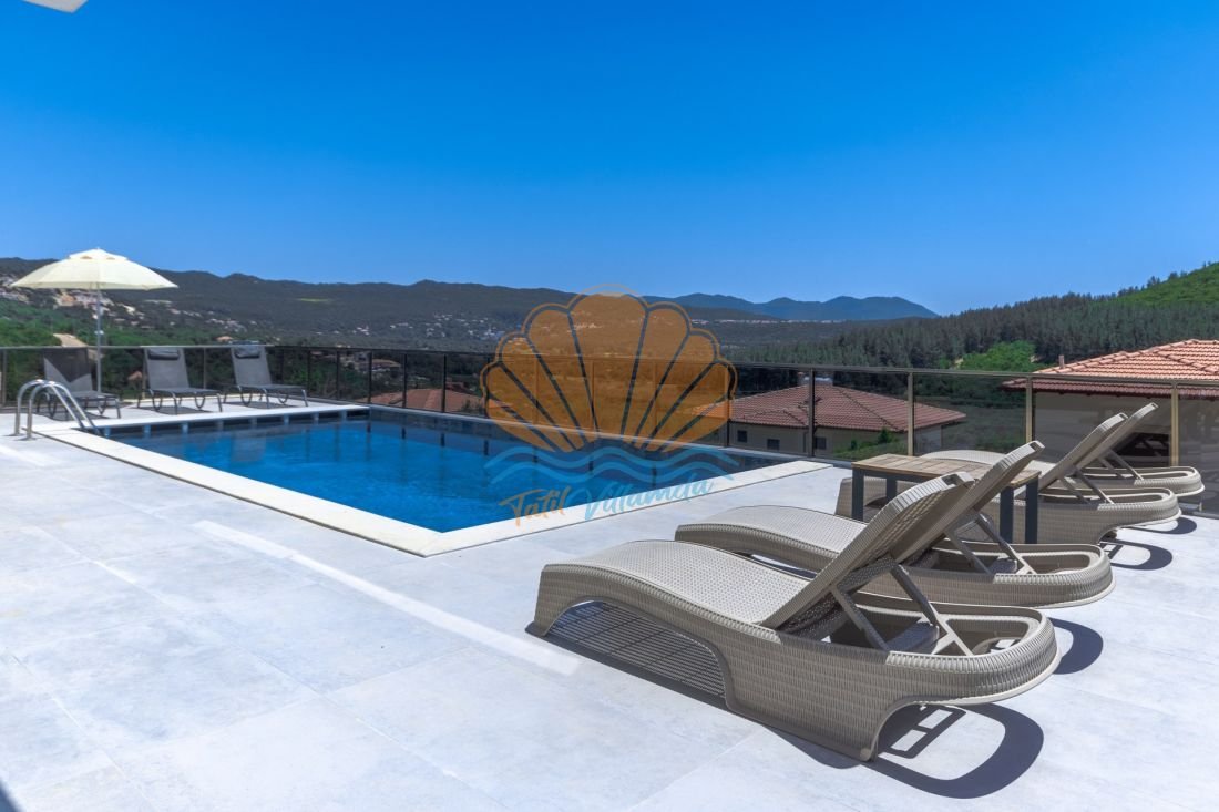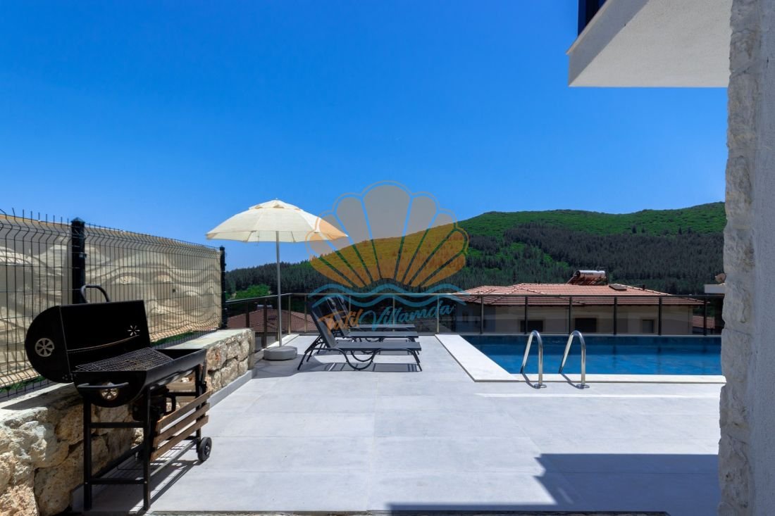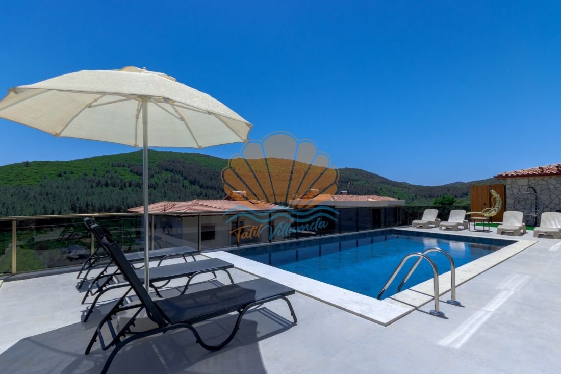 Villanın en keyifli alanlarından biri olan özel ve geniş yüzme havuzu, gün boyu serinlemenin tadını çıkarabileceğiniz bir alan sunar. Havuz başında yer alan şezlonglar, şemsiye, barbekü alanı, masa takımı, bahçe oturma grubu sayesinde sevdiklerinizle birlikte keyifli akşam yemekleri ve sohbetler gerçekleştirebilirsiniz.
