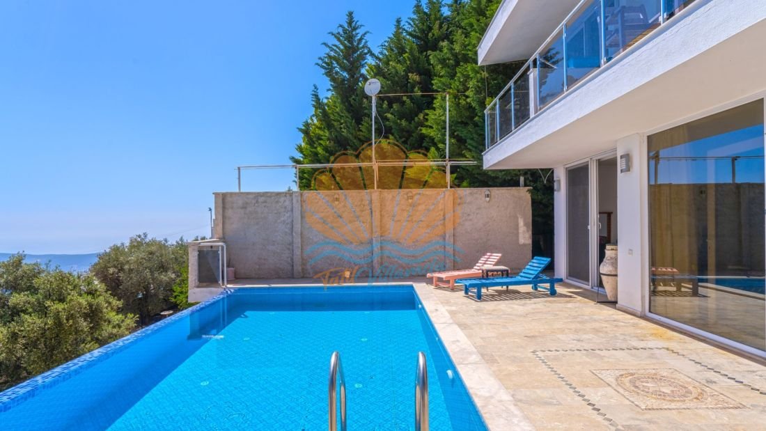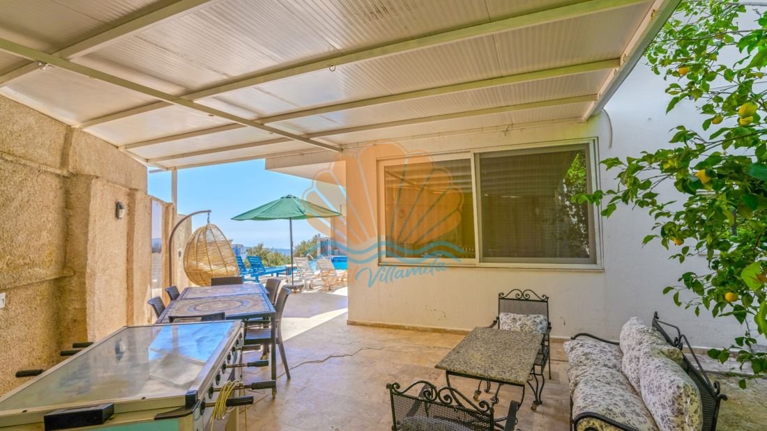 Villa, panoramik deniz manzarası ile öne çıkmaktadır. Gün doğumu ve gün batımında eşsiz manzaralar eşliğinde vakit geçirebilir, tatilinize görsel bir şölen katabilirsiniz. Geniş ve korunaklı yüzme havuzu, dışarıdan görünmeyen yapısıyla mahremiyete önem veren misafirler için idealdir. Havuz başında yer alan şezlonglar, şemsiye ve salıncak ile güneşin ve temiz havanın tadını doyasıya çıkarabilirsiniz.