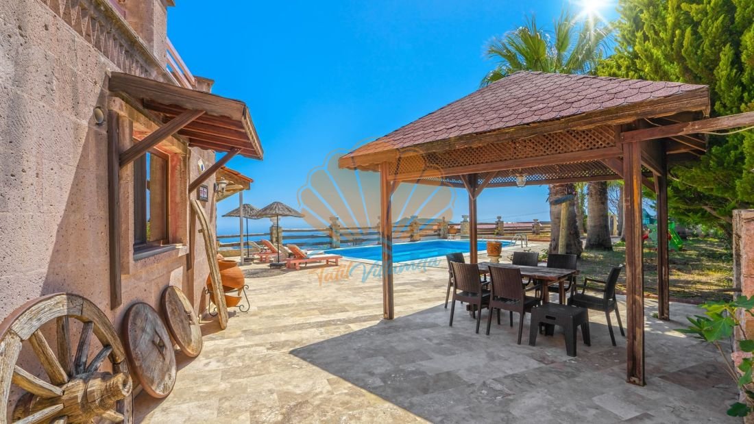 Geniş ve bakımlı bahçesi, doğayla iç içe bir tatil isteyenler için adeta bir cennettir. Çocuk havuzu ve mini çocuk oyun alanı sayesinde çocuklu aileler için de oldukça kullanışlıdır. Bahçede yer alan çardak, masa takımı ve barbekü alanı ise sevdiklerinizle birlikte keyifli yemekler yiyebileceğiniz harika bir ortam sunar. Havuz başında konumlanan şezlong ve şemsiyeler ile gün boyu güneşin tadını çıkarabilirsiniz.