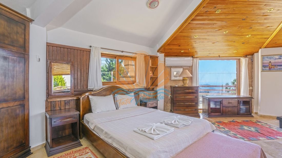 Kalkan Üzümlü’nün huzur veren doğasında konumlanan, gözlerden uzak yapısıyla özellikle muhafazakar aileler ve balayı çiftleri için ideal bir tatil seçeneğidir. Korunaklı geniş havuzu ve yemyeşil bahçesi sayesinde misafirlerine tamamen özel bir yaşam alanı sunan villa, aynı zamanda panoramik deniz manzarasıyla da büyüleyici bir atmosfer oluşturur. Gün batımında eşsiz manzaraya karşı keyifli anlar yaşayabilir, tatilinizin her anını unutulmaz kılabilirsiniz.
