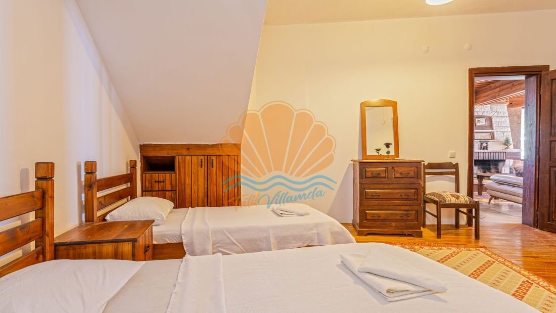 Toplamda 3 yatak odasına sahip olan villa, 6 kişilik konaklama kapasitesi ile aileler ve arkadaş grupları için oldukça uygundur. Odalardan birinde yer alan jakuzi, günün yorgunluğunu atmak ve rahatlamak isteyen misafirler için özel bir konfor sunar. Ayrıca villa içerisinde bulunan şömine, özellikle serin akşamlarda sıcak ve samimi bir ortam sağlar.
