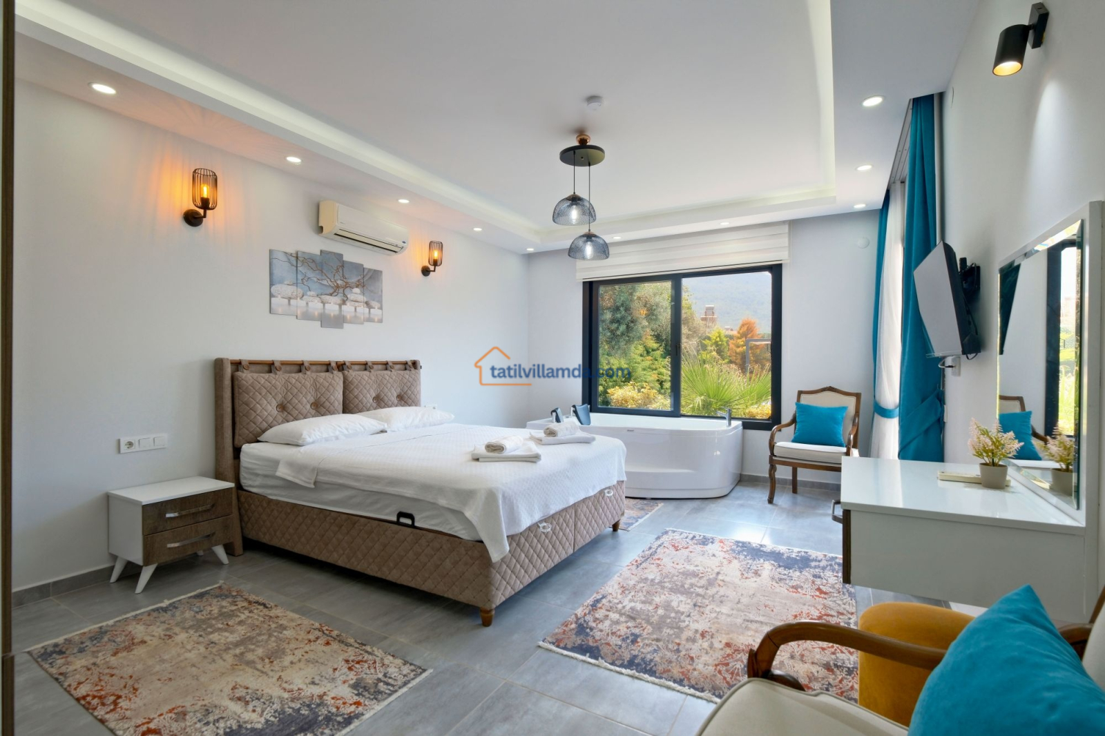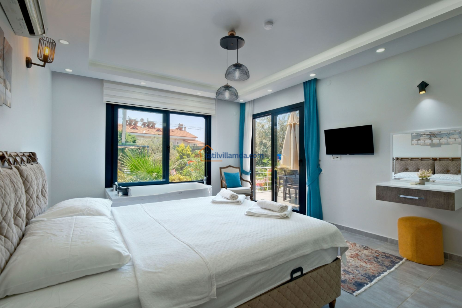 Fethiye şehir merkezine sadece 4 km mesafede yer alan Villa Tan, sakin bir konumda doğayla iç içe bir tatil sunarken aynı zamanda merkeze kolay ulaşım imkânı sağlar. Lüks ve konforu bir arada arayan misafirler için mükemmel bir seçenektir.