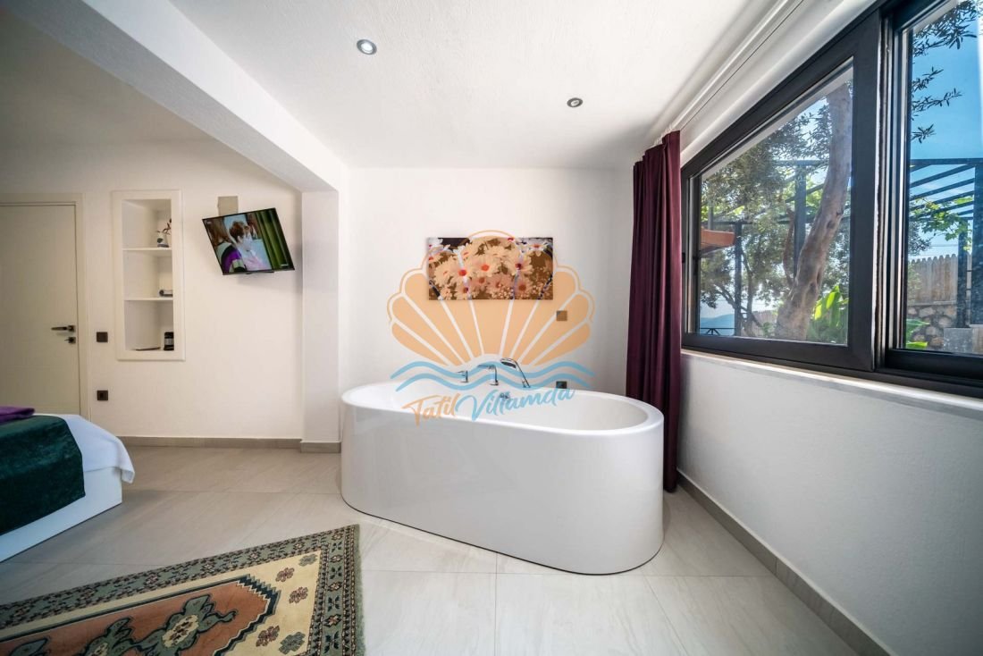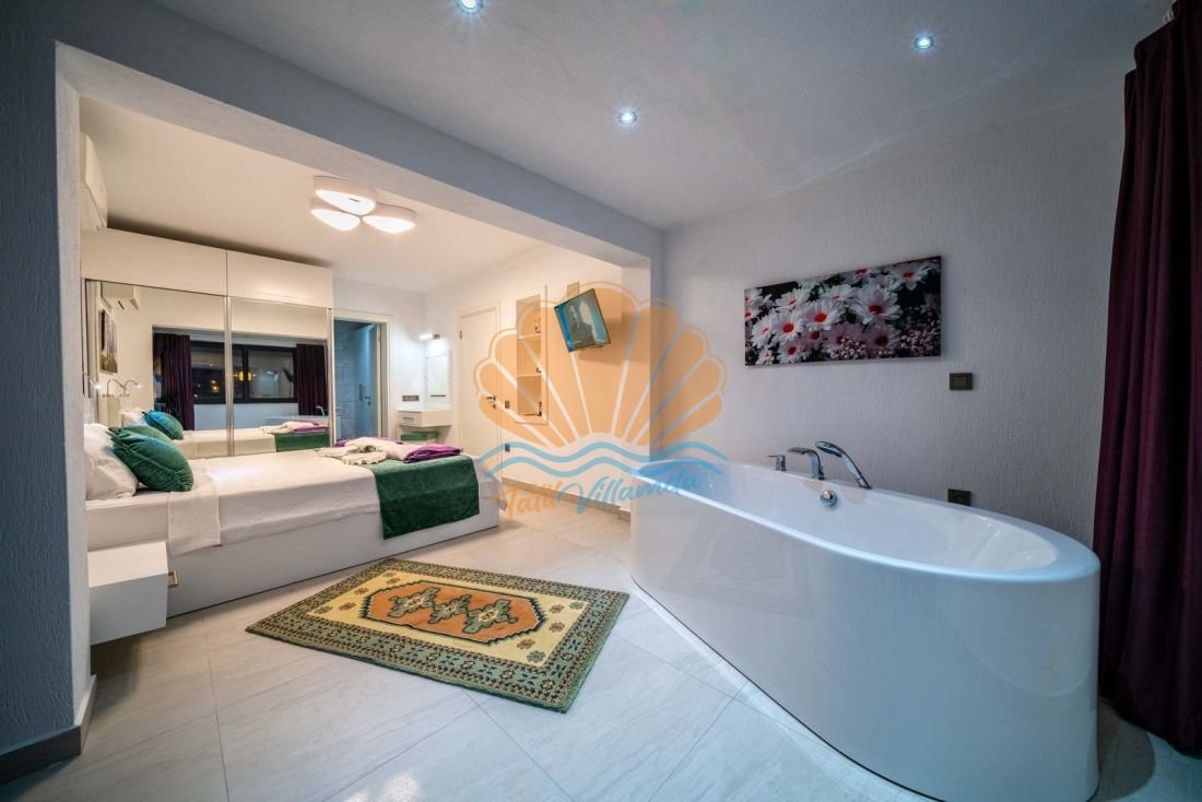 Villa, 2 yatak odasına sahip olup toplamda 4 kişiye kadar konaklama kapasitesi sunmaktadır. Odalar özenle döşenmiş, konfor ön planda tutularak hazırlanmıştır. Suit yatak odasında bulunan küvet, günün yorgunluğunu keyifle atabileceğiniz özel bir alan sağlar. Geniş salon ve açık mutfak bölümü, birlikte vakit geçirmek isteyen misafirler için fonksiyonel ve rahattır. Mutfakta ihtiyaç duyabileceğiniz temel ekipmanlar eksiksiz şekilde yer almaktadır.