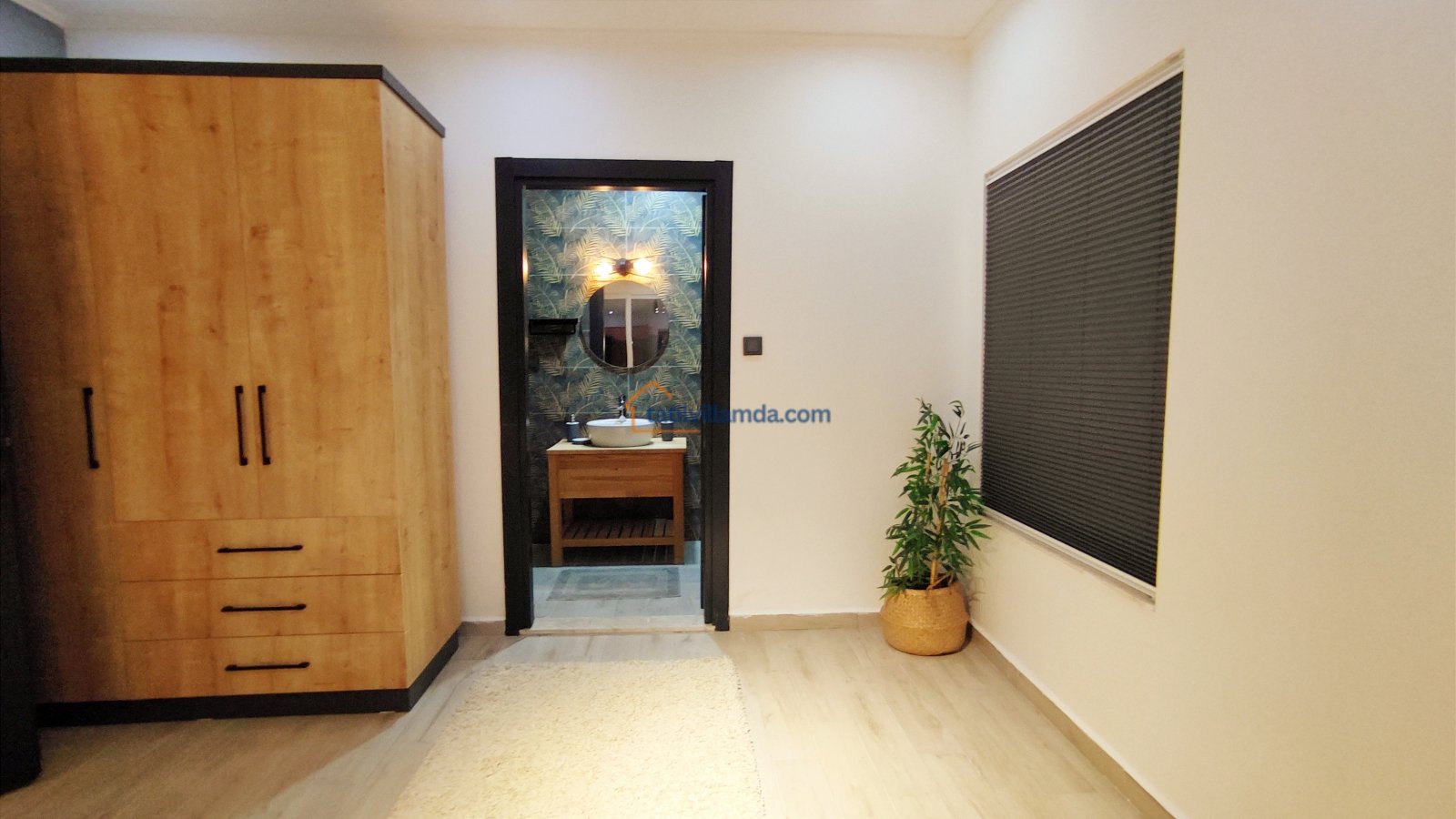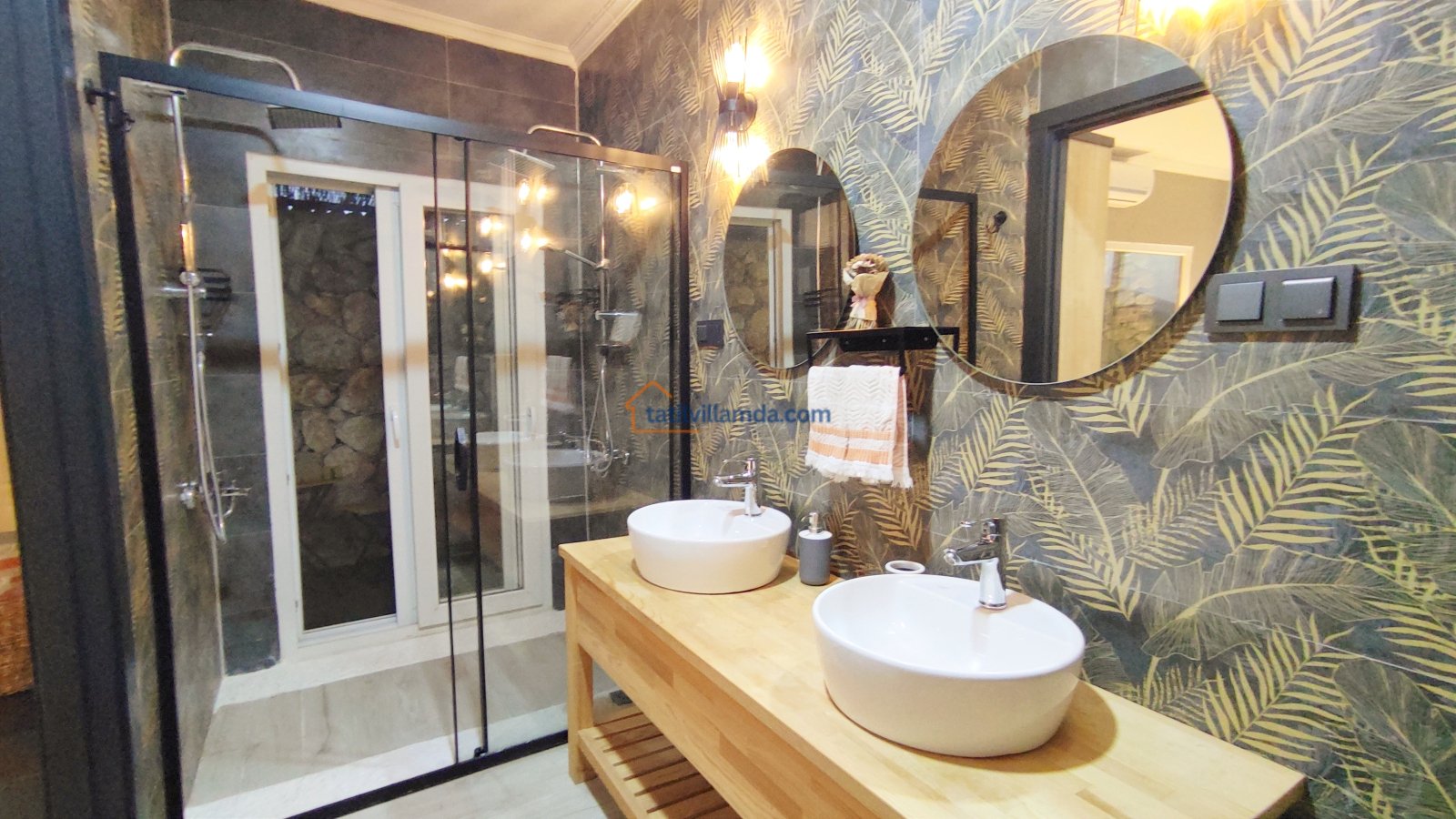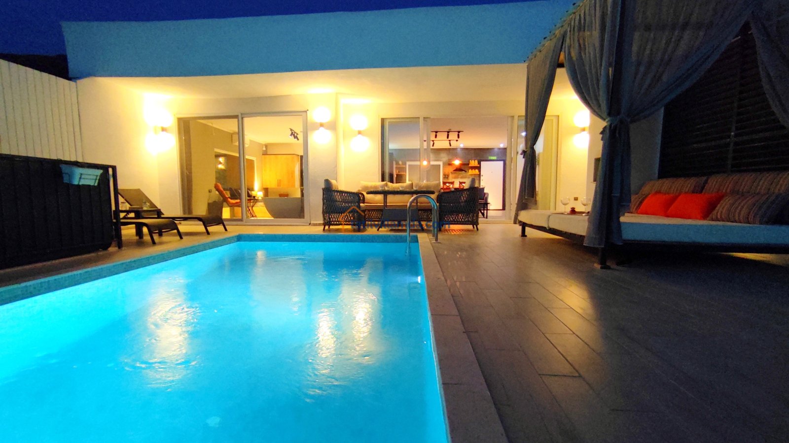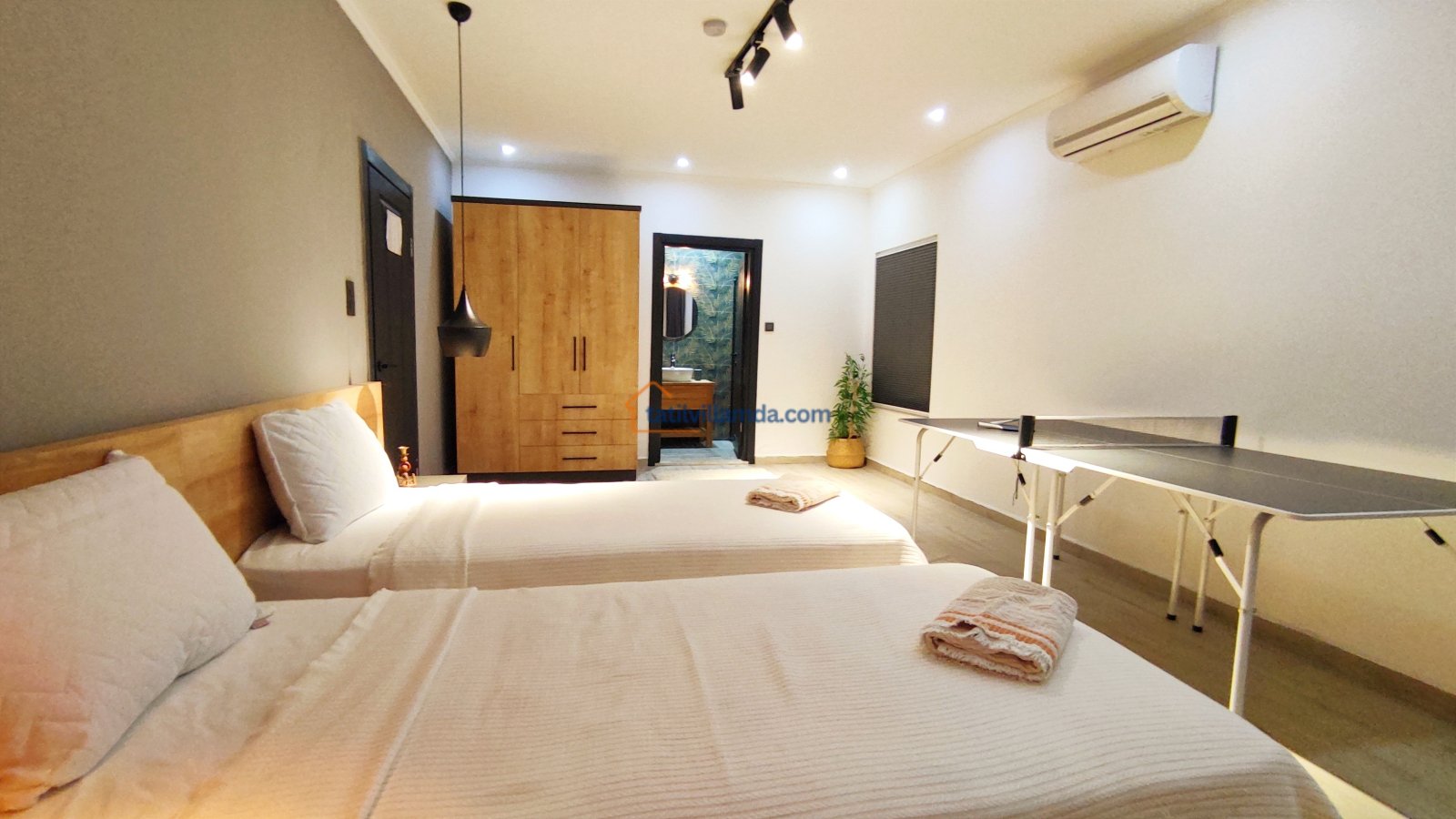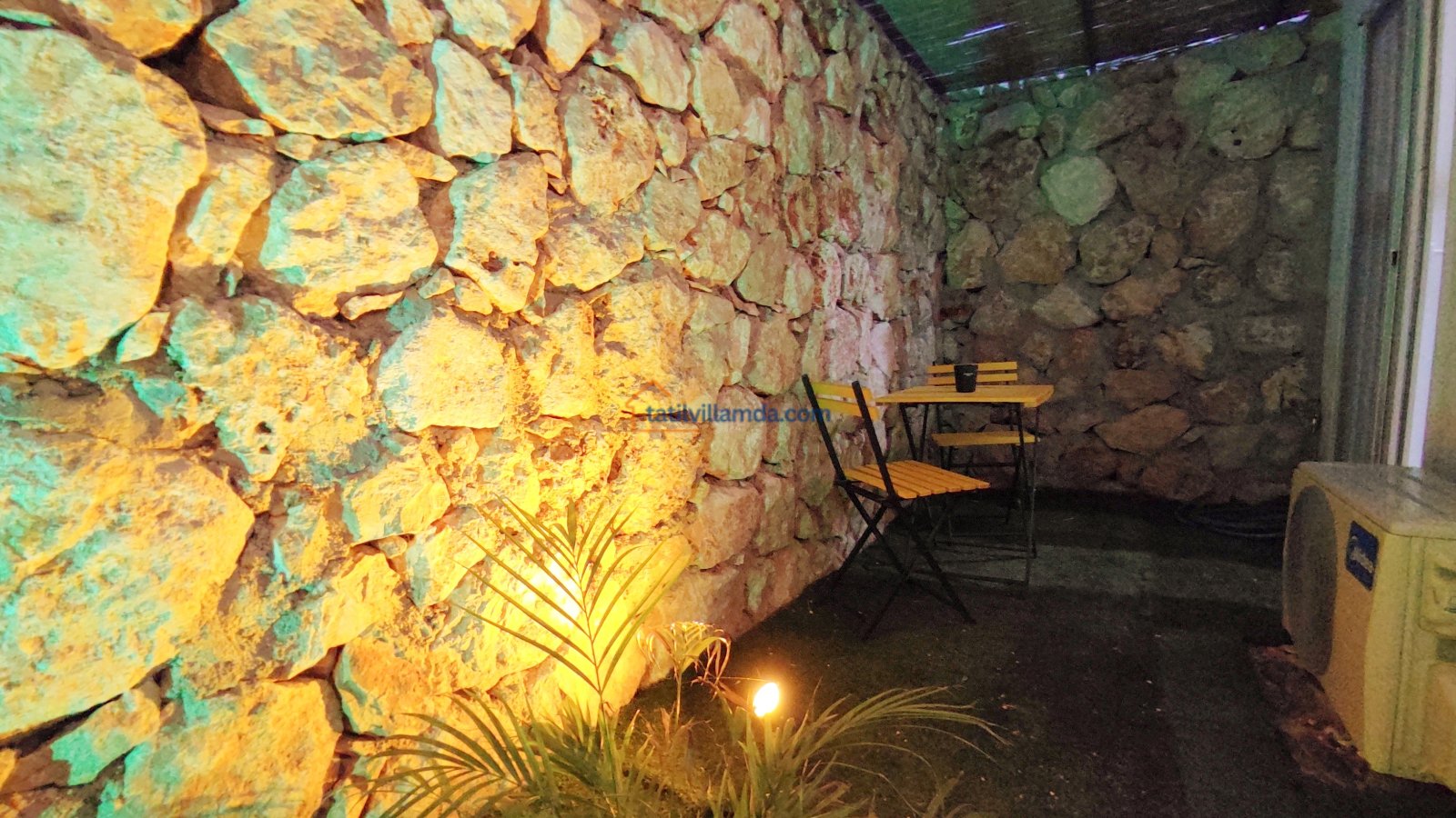 Ebeveyn yatak odasindaki, yatak arkasi camdır ve arkadaki, o oda için özel insaa edilmiş, tropikal bahçeyi görür. Banyo kısmında çift tarafli sevgili duşu ve oradan bu özel bahçeye çıkış vardir. Bahcede çay, kahve keyfi yapilabilir 2 kisilik, küçük fransiz cafe masa ve sandalyeleri bulunur. Ayrica odada bağımsız jakuzi vardir. Jakuzi keyfi yaparken yine yüzme havuzu ve patara manzarasi kesintisiz izlenebilir. İkinci odada, özel yaptirilmis ahsap yatak, birleştirilip ister büyük boy yatak, istenirsede tek kisilik çift yatak haline getirilebilir.