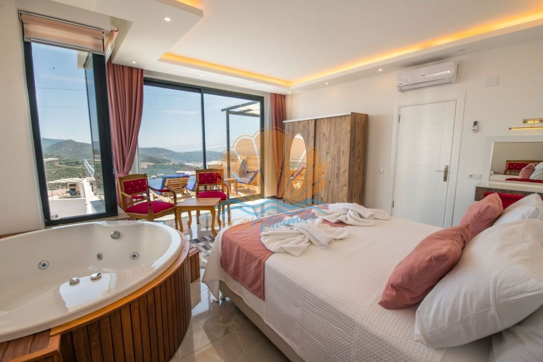 Kalkan Akbel mevkiinde konumlanan, doğa ile iç içe huzurlu bir tatil arayanlar için özenle tasarlanmış özel bir villadır. Korunaklı ve geniş havuz alanı sayesinde özellikle muhafazakar aileler ve balayı çiftleri için ideal bir konaklama seçeneği sunar. Göz alıcı deniz manzarası eşliğinde gün batımını izleyebilir, tatilin her anını keyifle yaşayabilirsiniz.