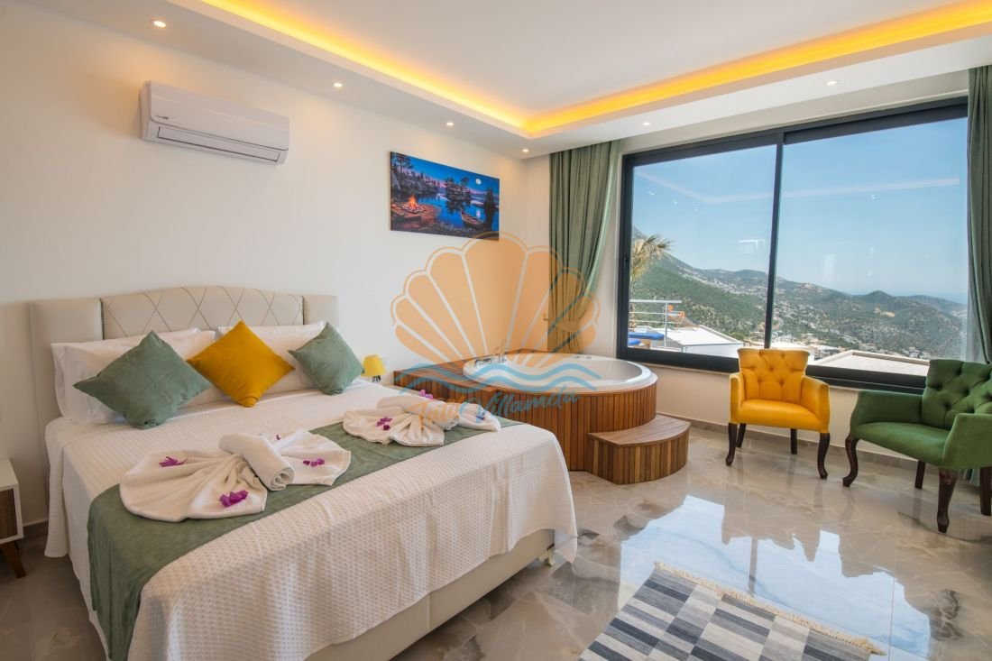 Kalkan Akbel mevkiinde konumlanan, doğa ile iç içe huzurlu bir tatil arayanlar için özenle tasarlanmış özel bir villadır. Korunaklı ve geniş havuz alanı sayesinde özellikle muhafazakar aileler ve balayı çiftleri için ideal bir konaklama seçeneği sunar. Göz alıcı deniz manzarası eşliğinde gün batımını izleyebilir, tatilin her anını keyifle yaşayabilirsiniz.