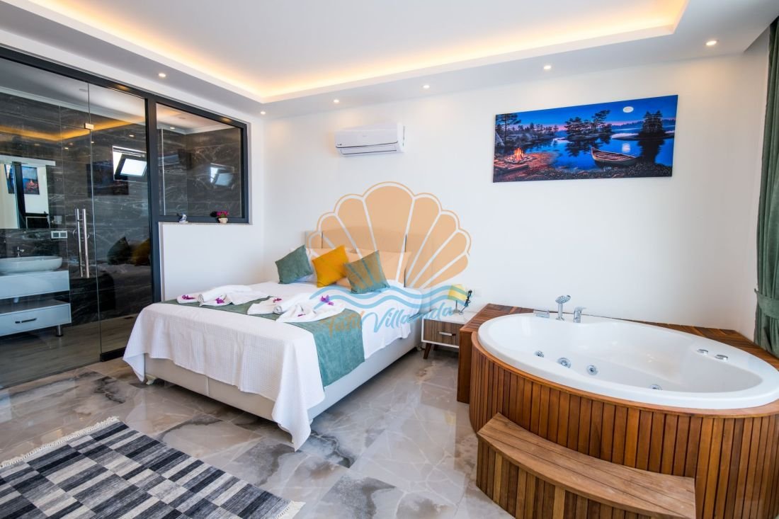 Toplamda 2 yatak odasına sahip olan villa, 4 kişilik konaklama kapasitesiyle çekirdek aileler ve arkadaş grupları için uygundur. Modern ve konforlu şekilde dekore edilmiş odaların tamamı ebeveyn banyoludur. Ayrıca villada bulunan jakuzi, günün yorgunluğunu atabileceğiniz özel bir rahatlama alanı sunar.