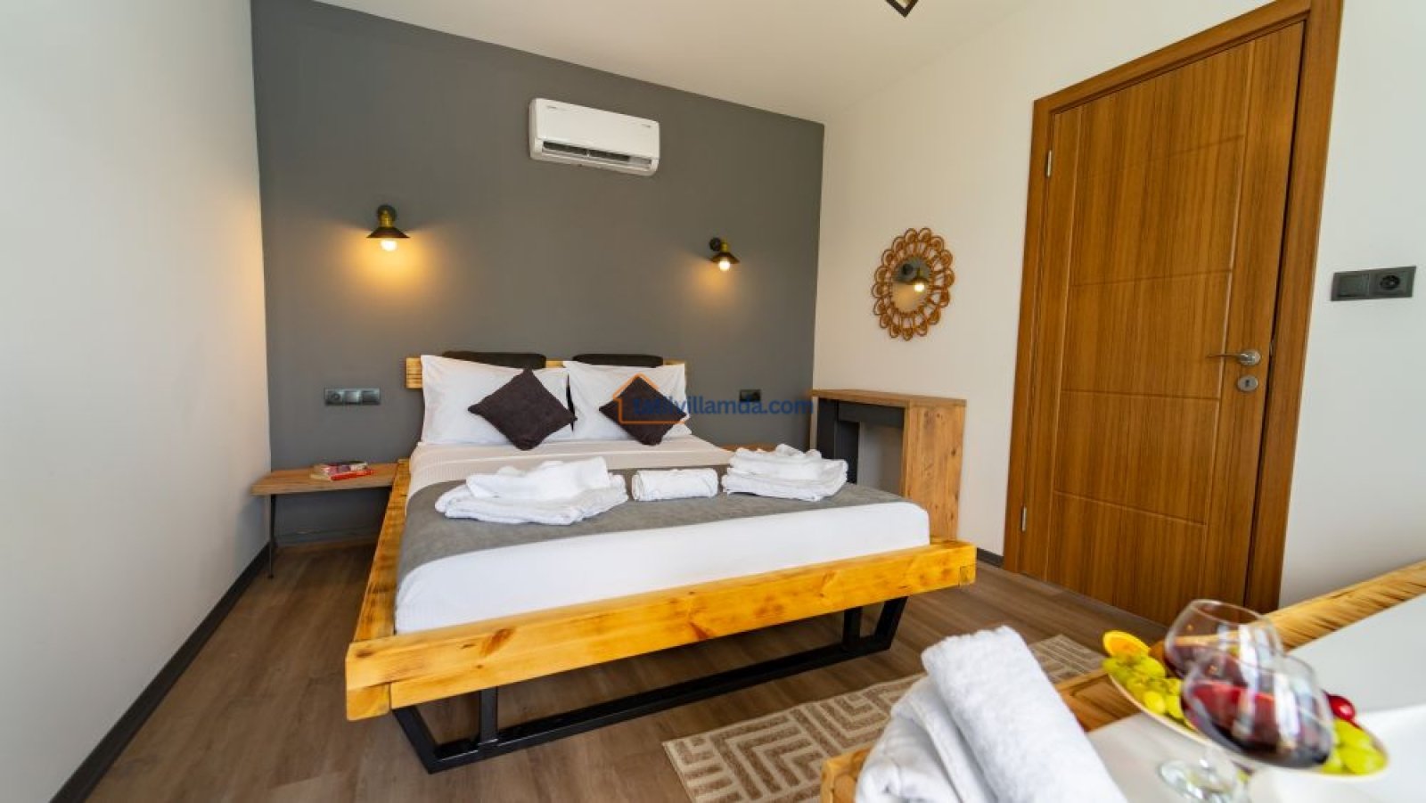 Villa, 1 yatak odası ve 1 salondan oluşur. Yatak odasında rahat bir çift kişilik yatak bulunurken, salondaki açılabilir koltuk 200×140 cm ölçülerinde olup, gerektiğinde ek yatak olarak kullanılabilir. Bu sayede villa, küçük aileler veya arkadaş grupları için de uygundur.