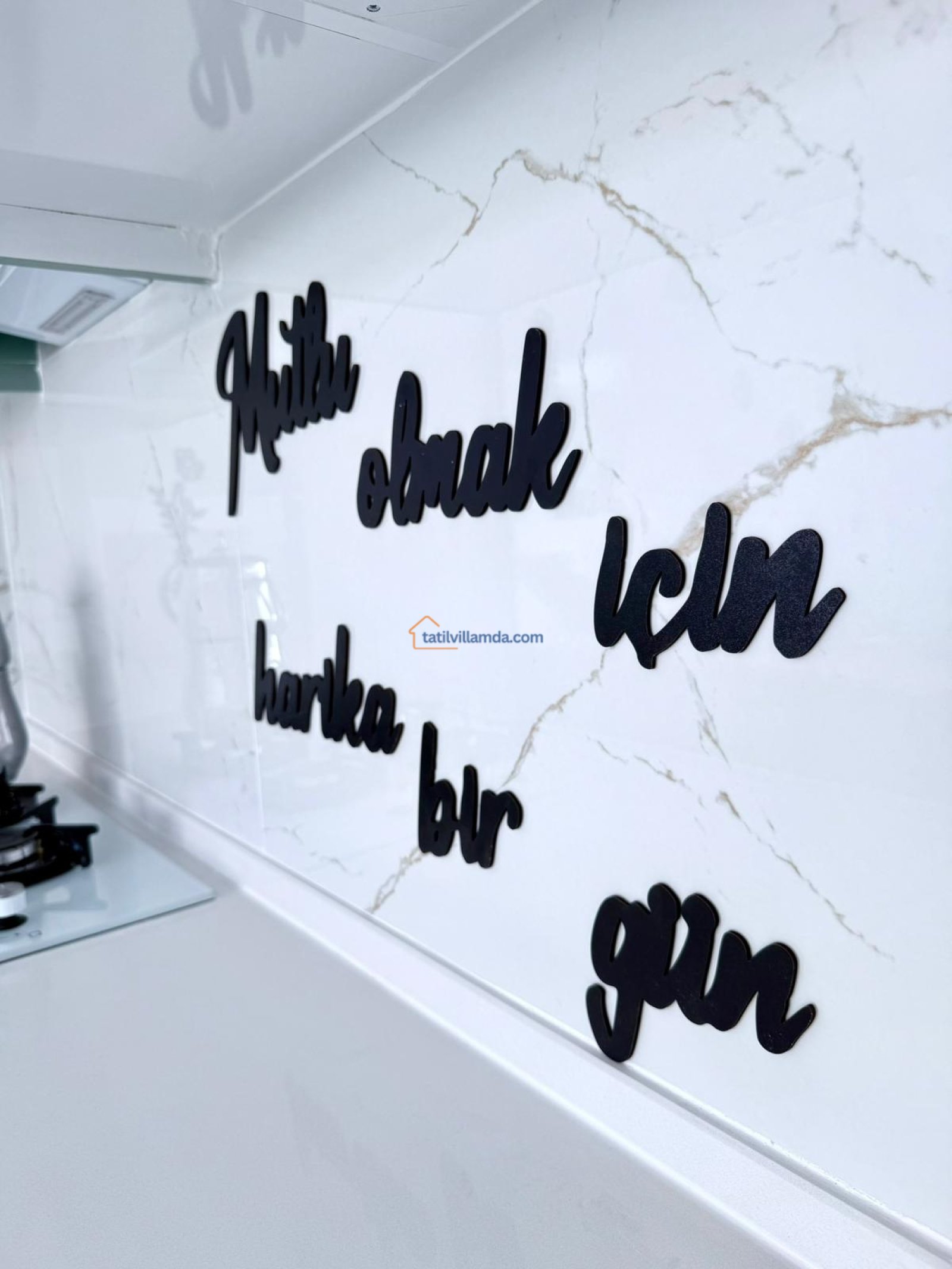 Villada mutfak, salon ve yatak odası tek bir açık yaşam alanı içerisinde yer almakta olup, modern ve işlevsel bir düzenle tasarlanmıştır. Şık detaylarla dekore edilen iç mekân, ferah yapısı sayesinde konforlu bir tatil atmosferi oluşturur. Donanımlı mutfağı sayesinde kendi yemeklerinizi rahatlıkla hazırlayabilir, salon alanında keyifli vakit geçirebilirsiniz.
