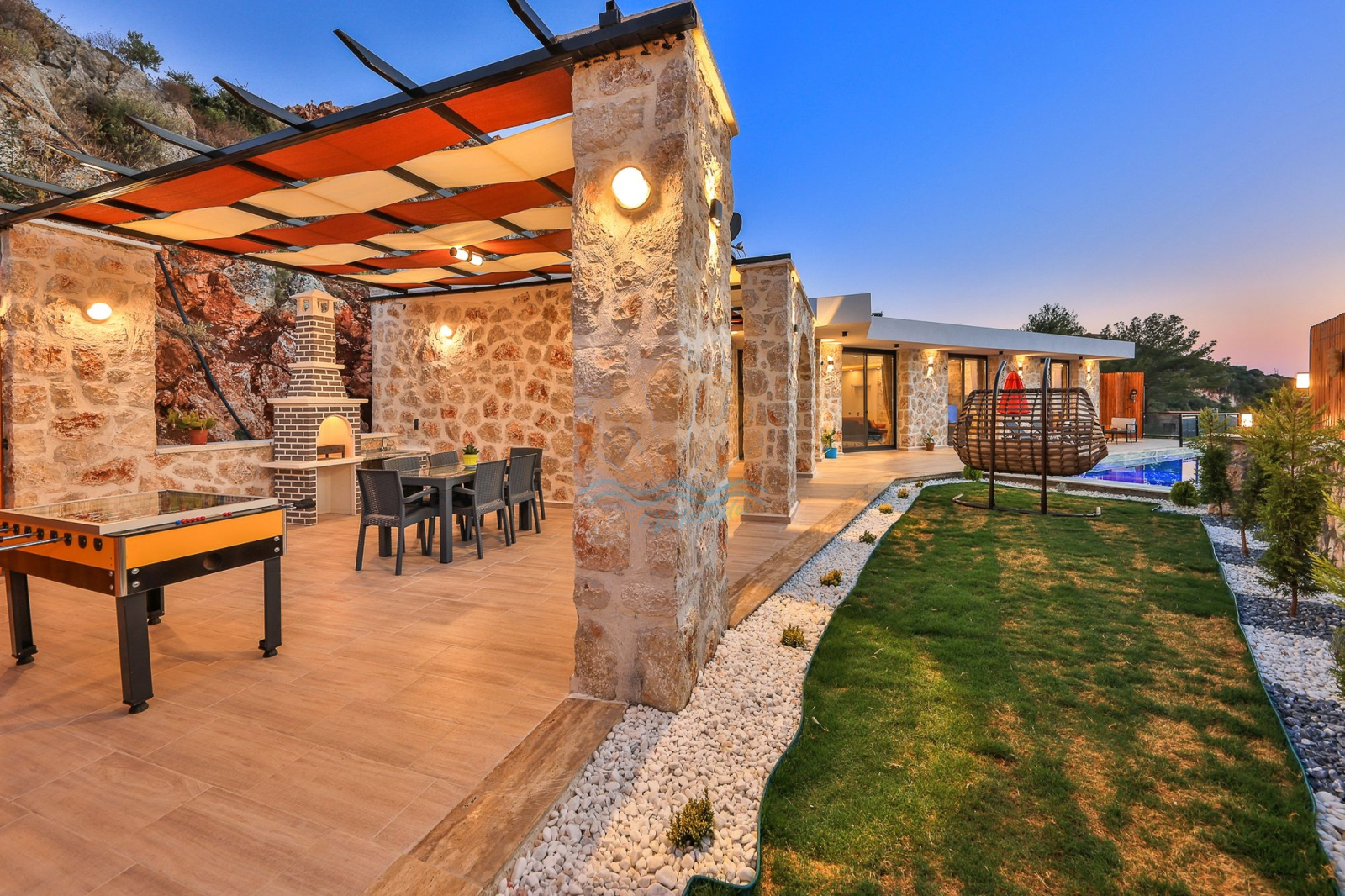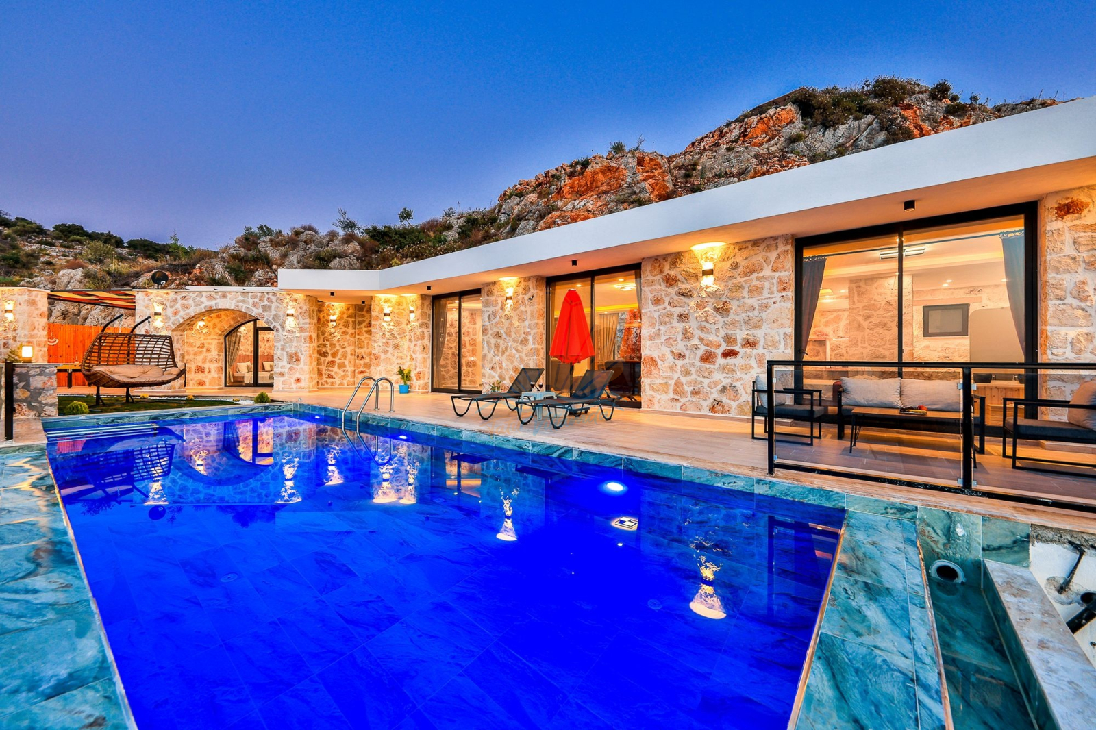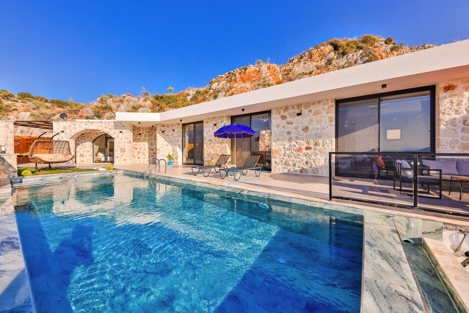 Kalkan’ın tarihi ve doğasıyla ünlü Patara bölgesinde, huzuru ve konforu bir arada sunan özel bir tatil villasıdır. Taş mimarisiyle bölgenin dokusuna uyum sağlayan bu villa, ilk bakışta sıcak ve samimi bir atmosfer hissi verir. Korunaklı ve geniş yüzme havuzu sayesinde gözlerden uzak, özgürce tatil yapma imkânı sunar. Aynı zamanda çocuk havuzu bulunması, aileler için ekstra bir rahatlık sağlar.