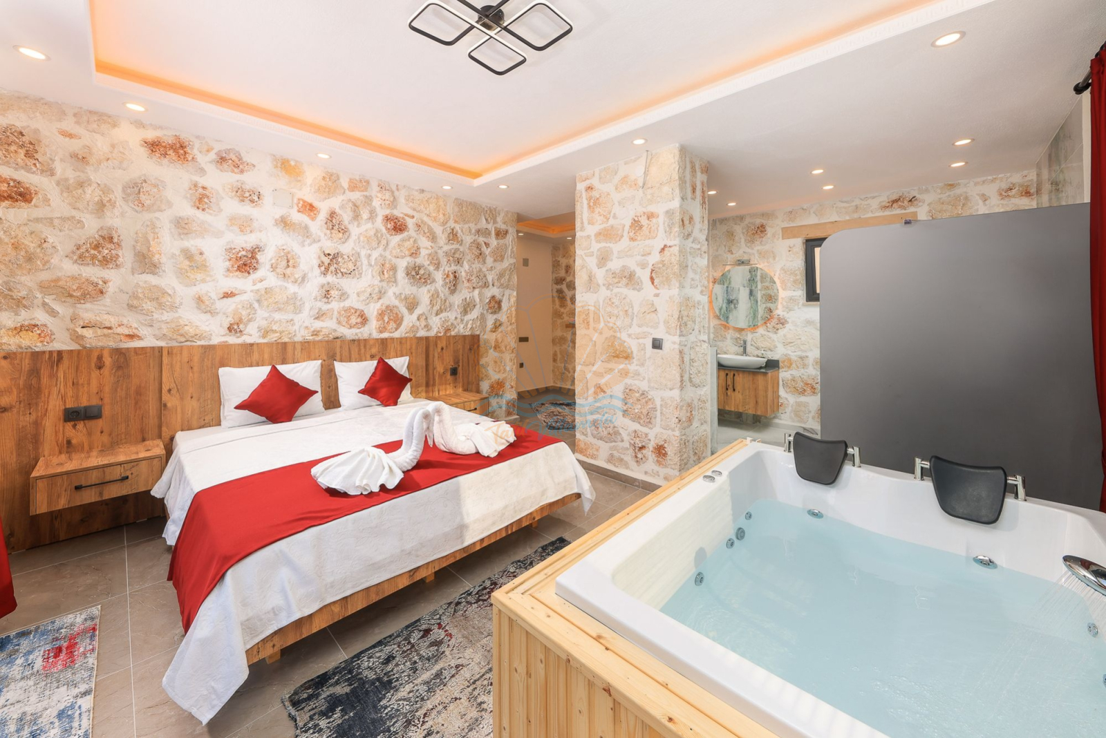Villa, 2 yatak odasıyla toplam 4 kişilik konaklama kapasitesine sahiptir. Her iki yatak odasının da ebeveyn banyolu olması, misafirlerin konforunu ve mahremiyetini ön planda tutar. Jakuzisi ise günün yorgunluğunu atmak, kendinize küçük bir mola vermek için keyifli bir detaydır.