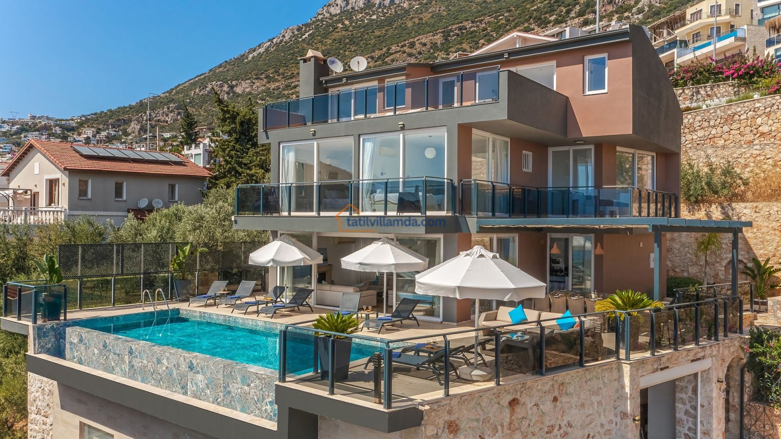 Kalkan’ın prestijli Kızıltaş mevkiinde konumlanan, geniş yaşam alanları ve etkileyici deniz manzarasıyla öne çıkan lüks bir tatil villasıdır. Modern mimarisi, konforlu donanımları ve ferah kullanım alanlarıyla hem geniş ailelerin hem de kalabalık arkadaş gruplarının gönül rahatlığıyla tercih edebileceği özel bir konaklama sunar. 5 yatak odasıyla toplamda 10 kişiye kadar konaklama imkânı sağlayan villa, her detayı özenle düşünülmüş zarif bir tasarıma sahiptir.