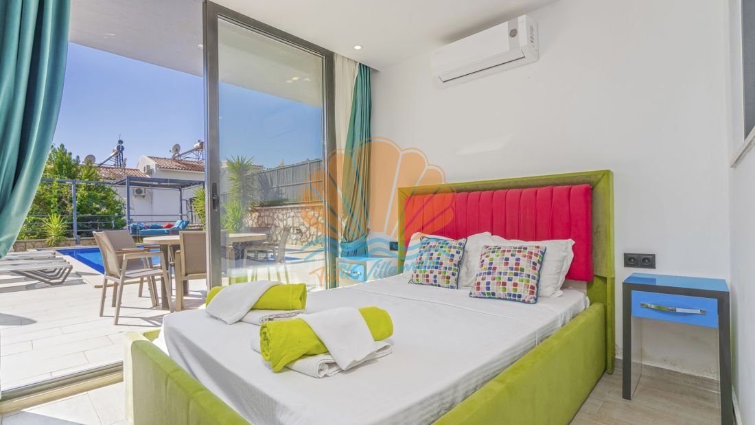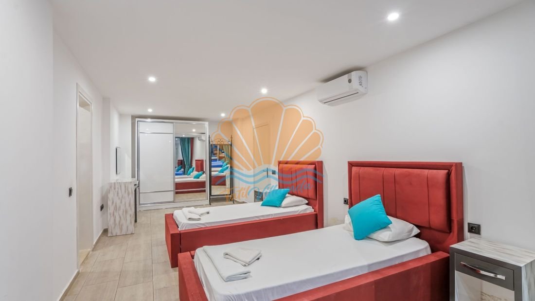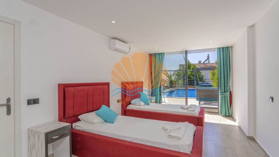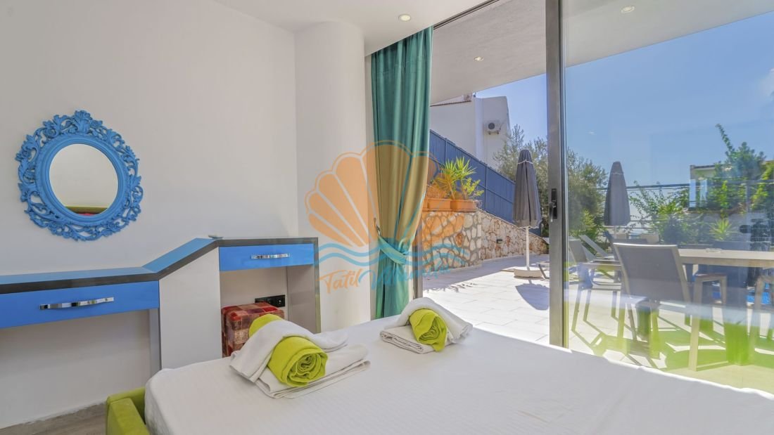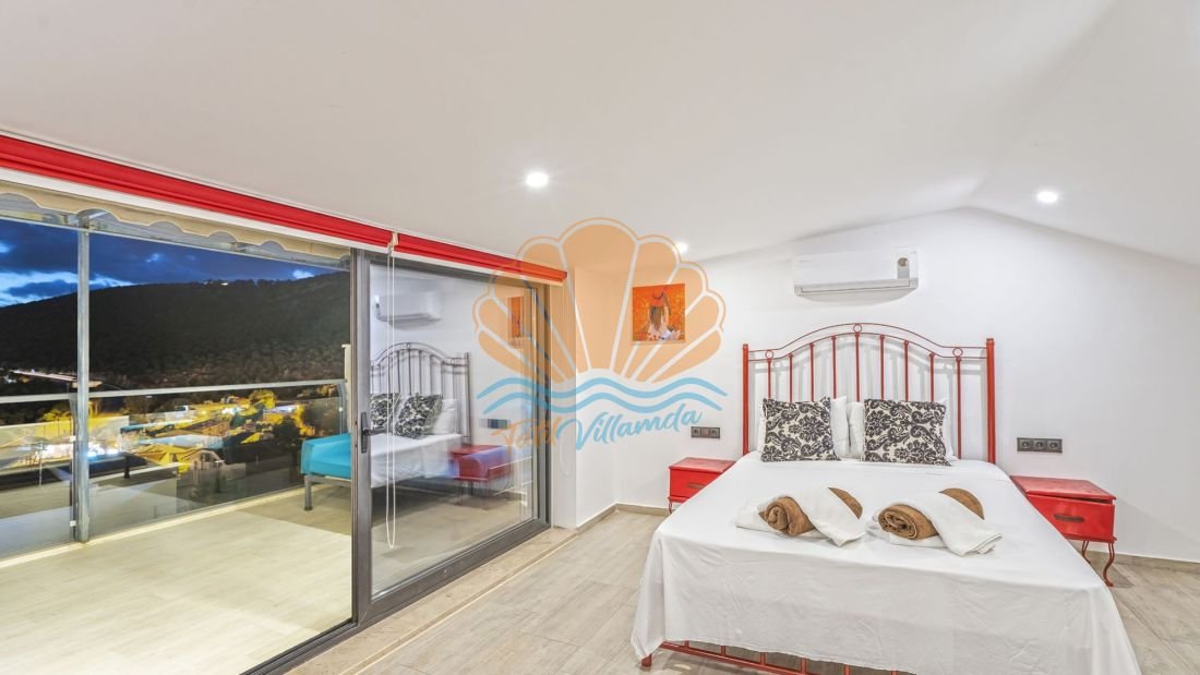 Toplam 4 yatak odasına sahip olan villa, 8 kişilik konaklama kapasitesine sahiptir. Tüm yatak odaları ebeveyn banyoludur ve misafirlerine maksimum konfor ile mahremiyet sağlar. Teras katında bulunan yatak odasında yer alan jakuzi ise deniz manzarası eşliğinde dinlenmek isteyen misafirler için ayrıcalıklı bir detaydır. Gün batımında jakuzide keyif yapmak tatilinize unutulmaz anlar katacaktır.