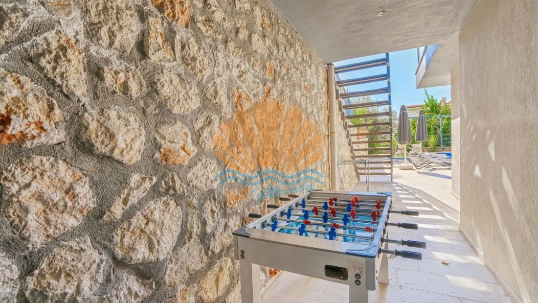 Villa Xanthos’ta spor yapmayı seven misafirler için özel bir spor salonu da bulunmaktadır. Tatilde formunu korumak isteyenler için büyük avantaj sağlayan bu alan, konforlu bir egzersiz imkânı sunar. Ayrıca langırt ve masa tenisi gibi eğlenceli aktiviteler sayesinde hem çocuklar hem de yetişkinler için keyifli vakit geçirme imkânı vardır.