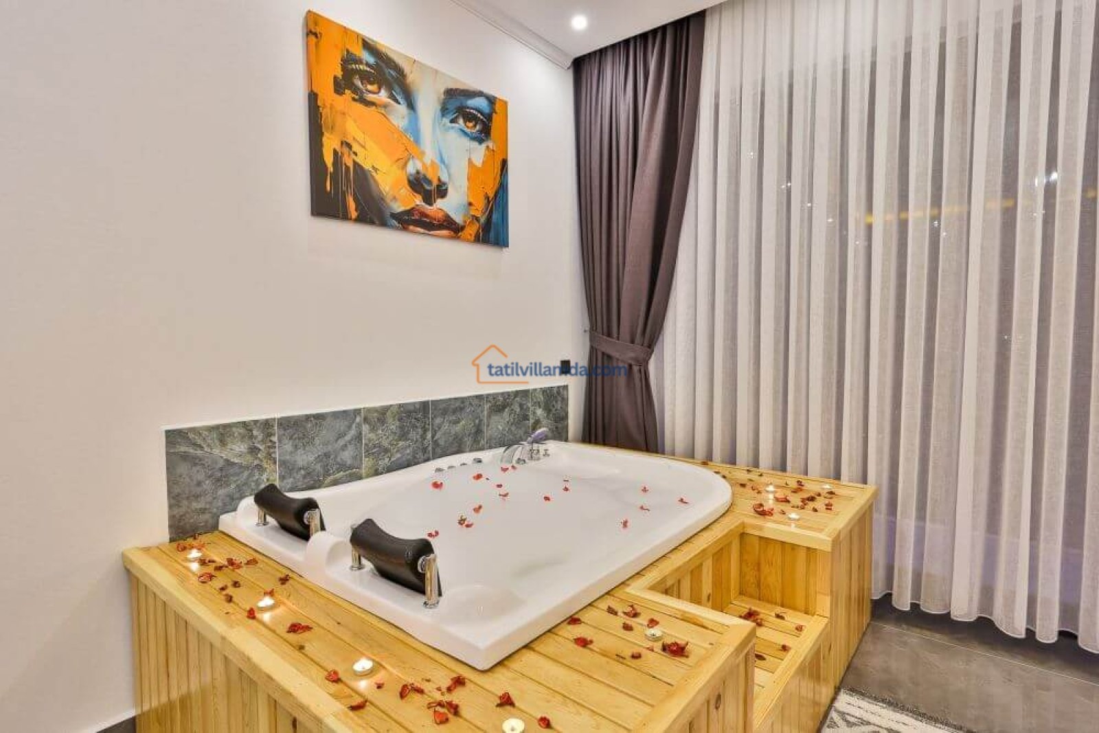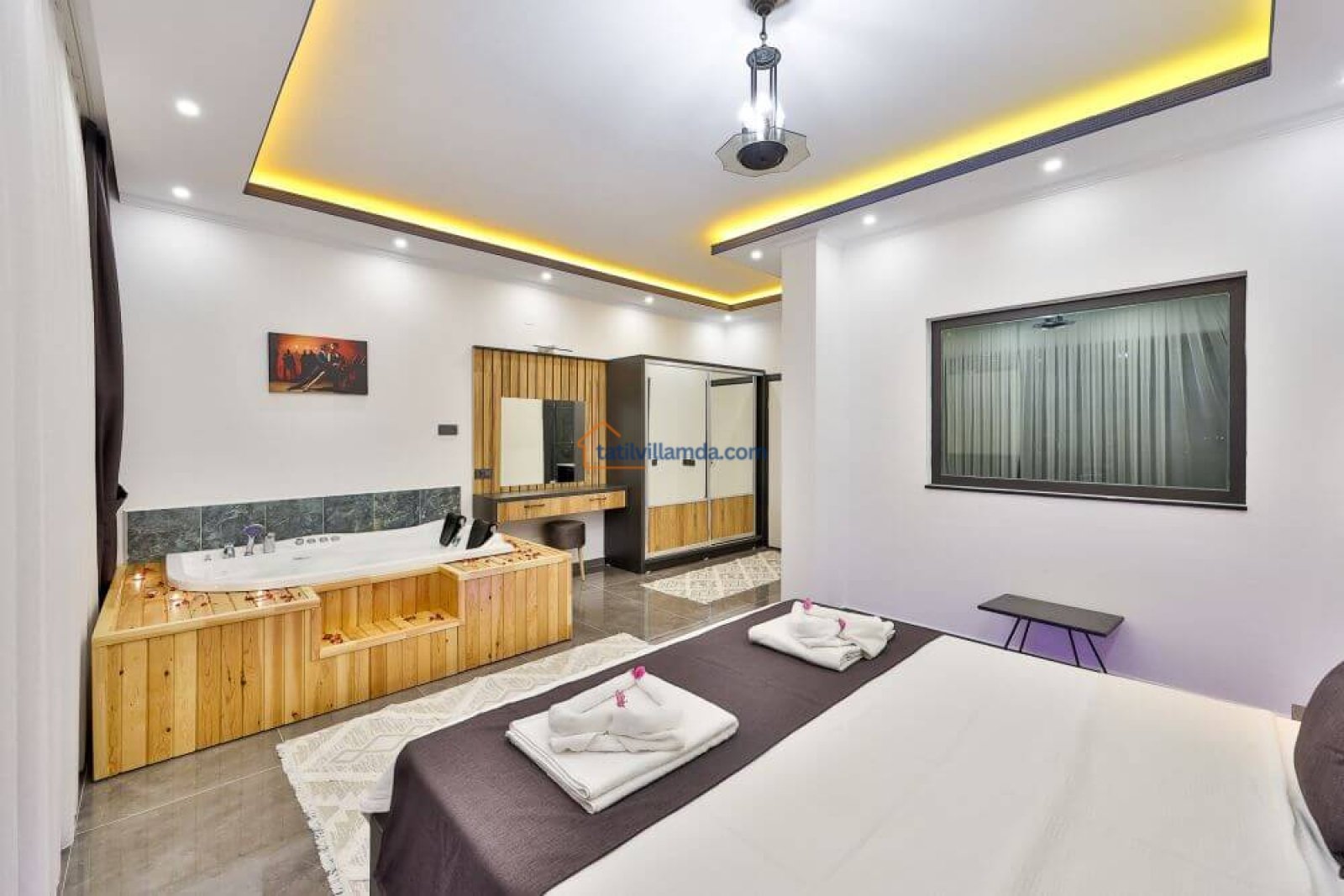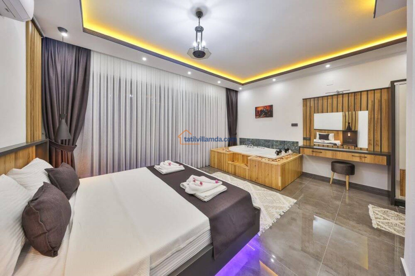 Özel donanımları arasında jakuzili dinlenme alanı, barbekü/mangal alanı ve korunaklı dış havuz alanı yer alan Villa Yaka, tatiliniz boyunca keyifli anlar yaşamanızı sağlar. 13.5 metre uzunluğundaki korunaklı geniş havuzu, misafirlerin serinleyip dinlenebilmesi için ideal bir ortam sunmaktadır. Villada toplam 3 yatak odası bulunmakta olup, 6 yetişkin kapasitelidir. Aileler ve balayı çiftleri için mükemmel bir tercihtir.
