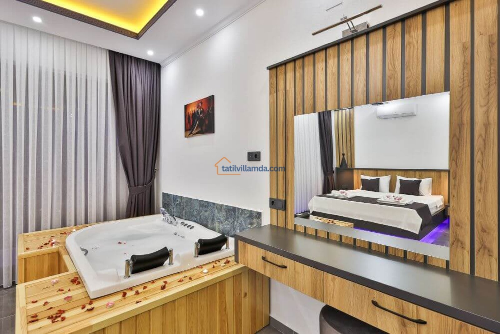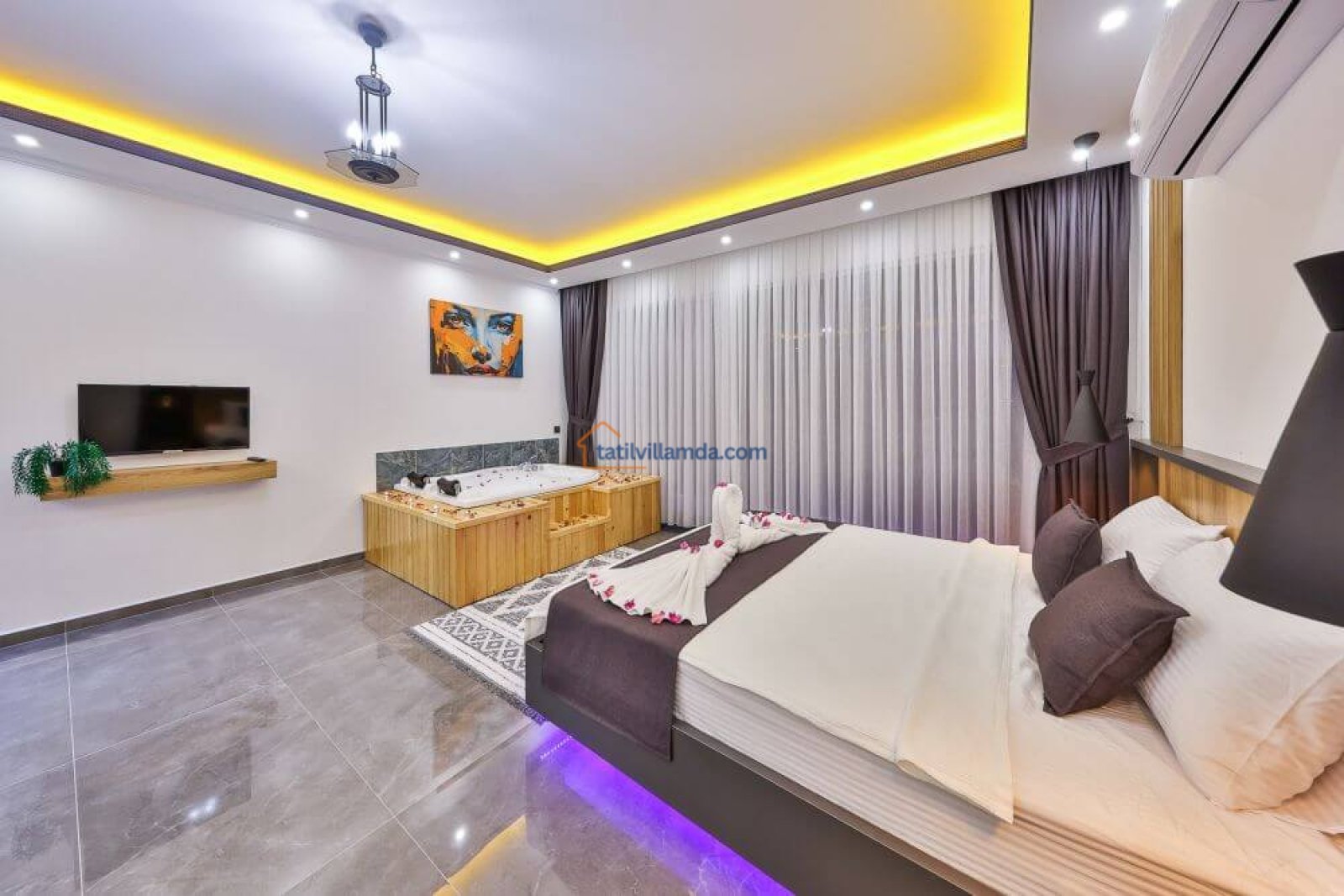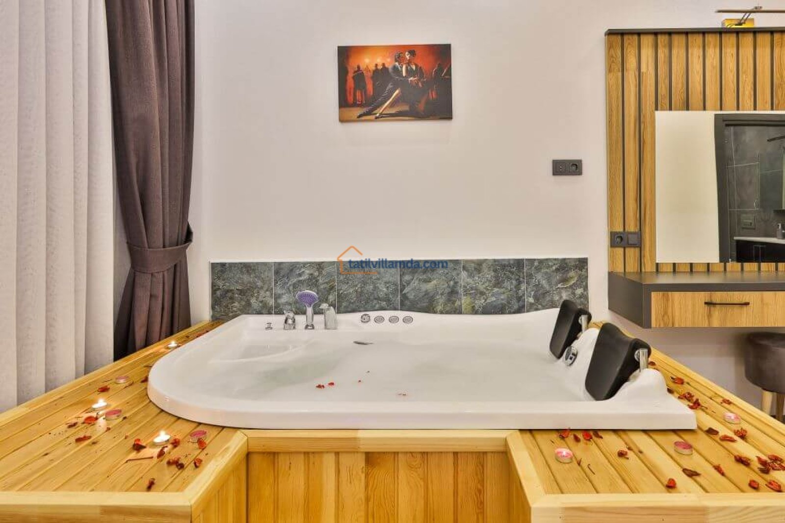 Özel donanımları arasında jakuzili dinlenme alanı, barbekü/mangal alanı ve korunaklı dış havuz alanı yer alan Villa Yaka, tatiliniz boyunca keyifli anlar yaşamanızı sağlar. 13.5 metre uzunluğundaki korunaklı geniş havuzu, misafirlerin serinleyip dinlenebilmesi için ideal bir ortam sunmaktadır. Villada toplam 3 yatak odası bulunmakta olup, 6 yetişkin kapasitelidir. Aileler ve balayı çiftleri için mükemmel bir tercihtir.
