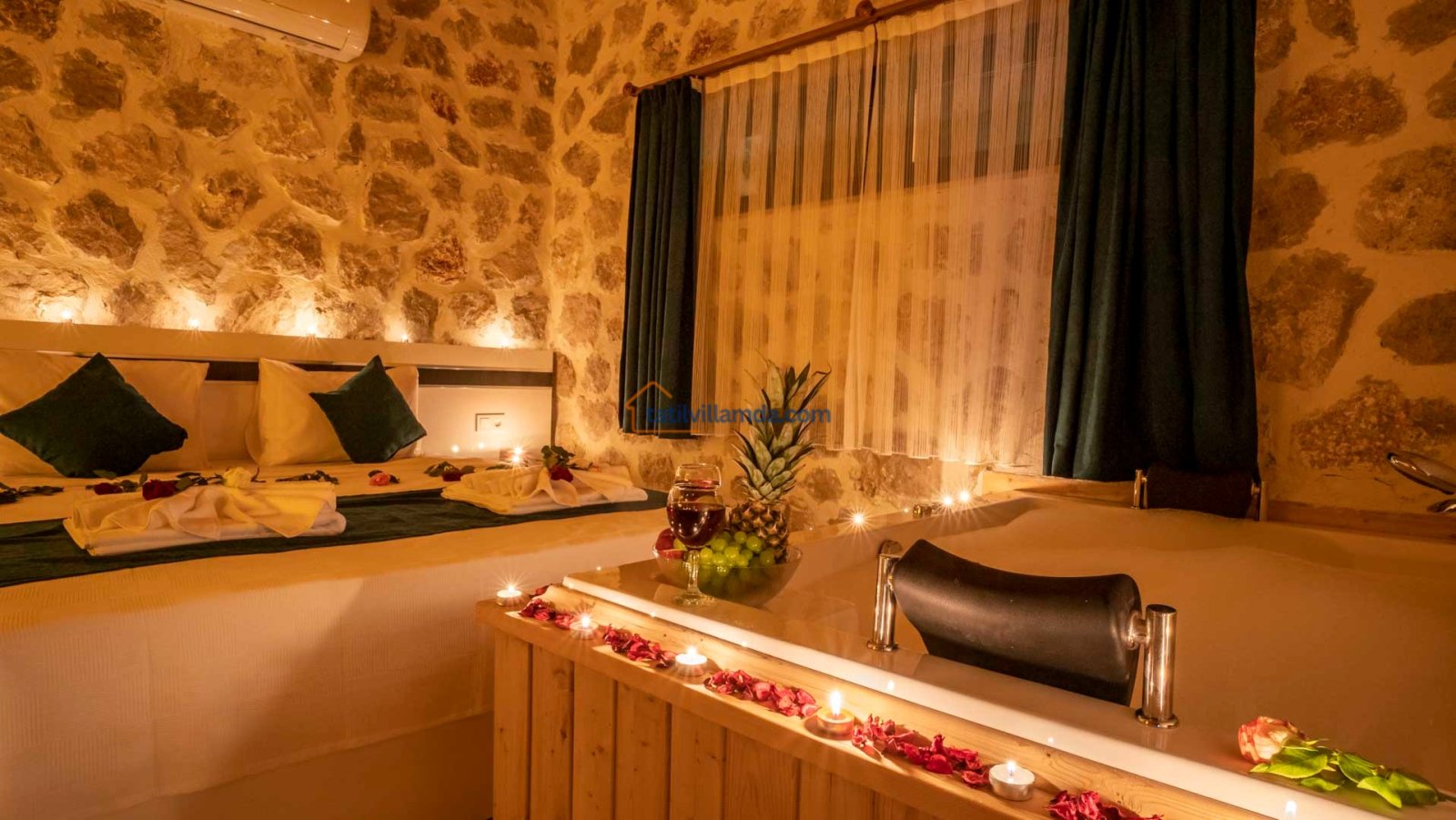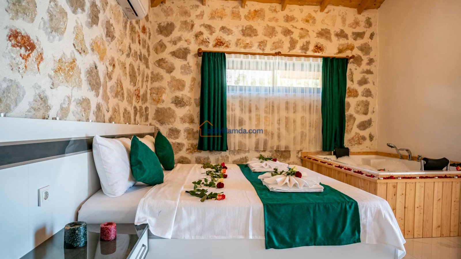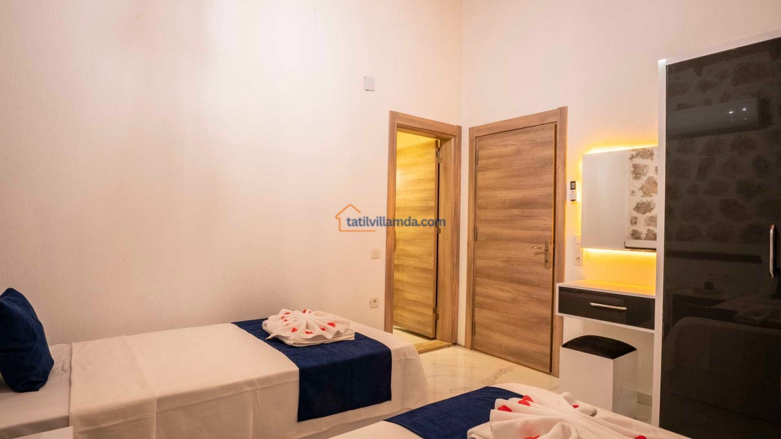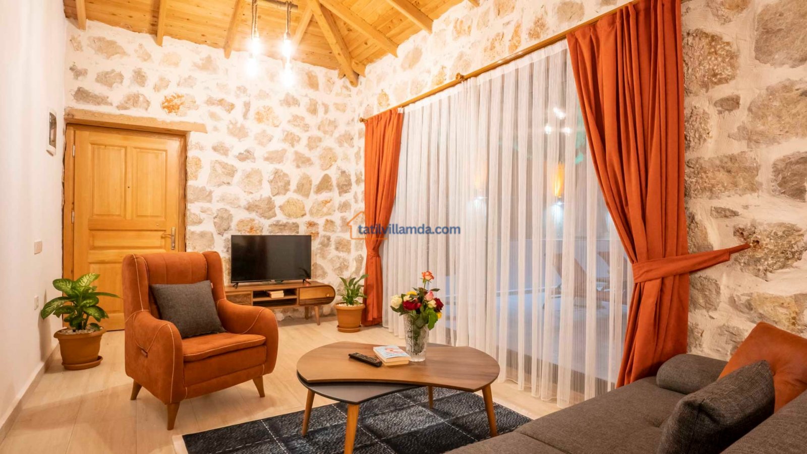 Villa Yazı 5 Kalkan bölgesinin Bezirgan mevkisinde yer almaktadır.Bulunduğu konum itibari ile doğa manzaralı seçenekler arasında olup Kalkan şehir merkezine özel araç ile ortalama 20 dakika mesafededir.2 yatak odası olup toplamda 4 kişi konaklama kapasitesine sahiptir.Korunaklı özel havuzu ile muhafazakar ailelerimiz için oldukça uygun bir villamızdır.