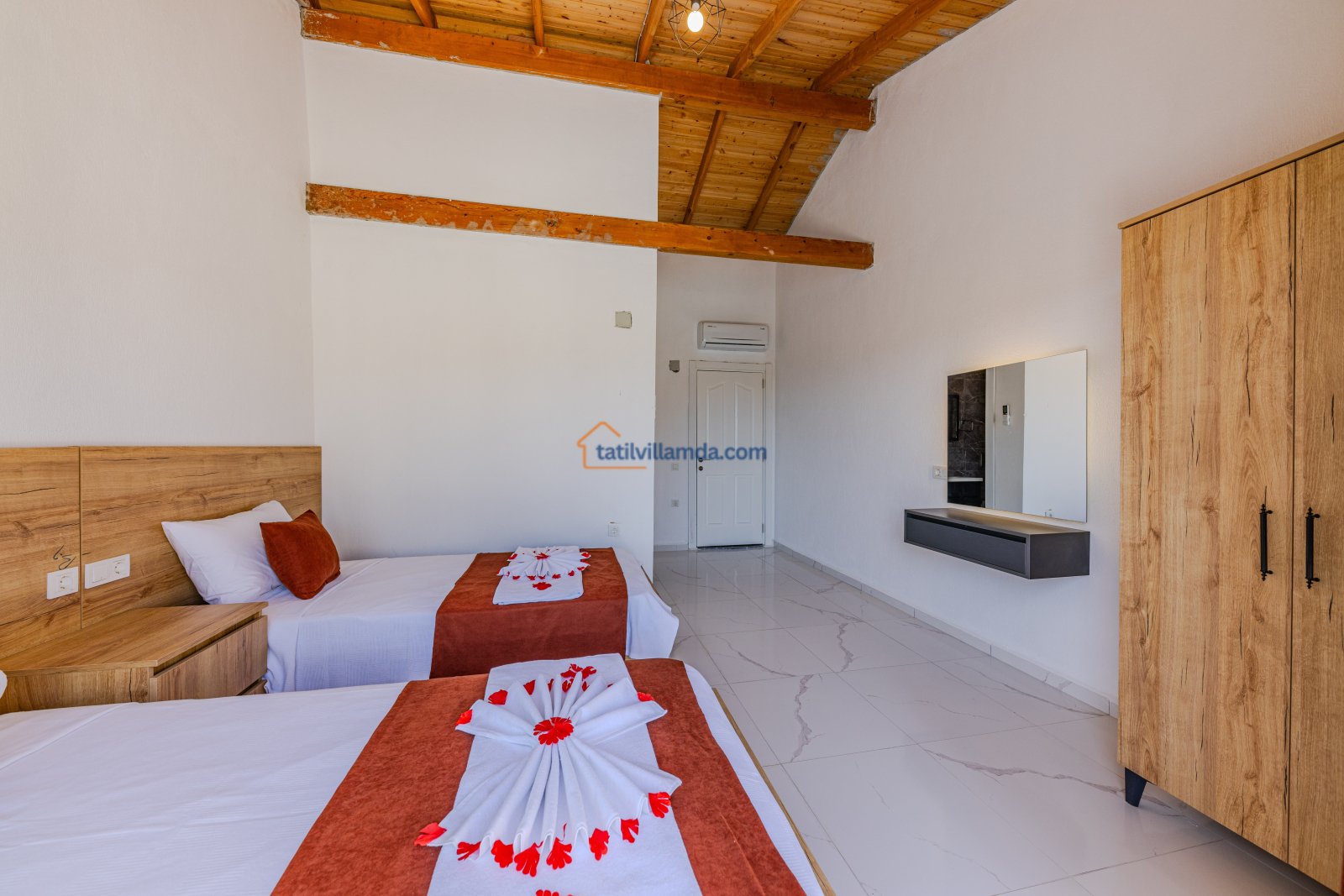 Villamız Site halinde aynı yerde toplam 6 adet villa olarak tasarlanmış olup,toplam site içerisinde yeşillik alan,oturma alanları ve araçlarınız için otopark mevcuttur.6 adet villamız yan yana olup kalabalık ailelerin birlikte tatil yapmasına imkan sağlamaktadır.Her villamız bağımsız ve Muhafazakar(Korunaklı) olup birbiriyle herhangi bir bağlantısı bulunmamaktadır.Gönül rahatlığı ile tatilinizi geçirebilirsiniz.