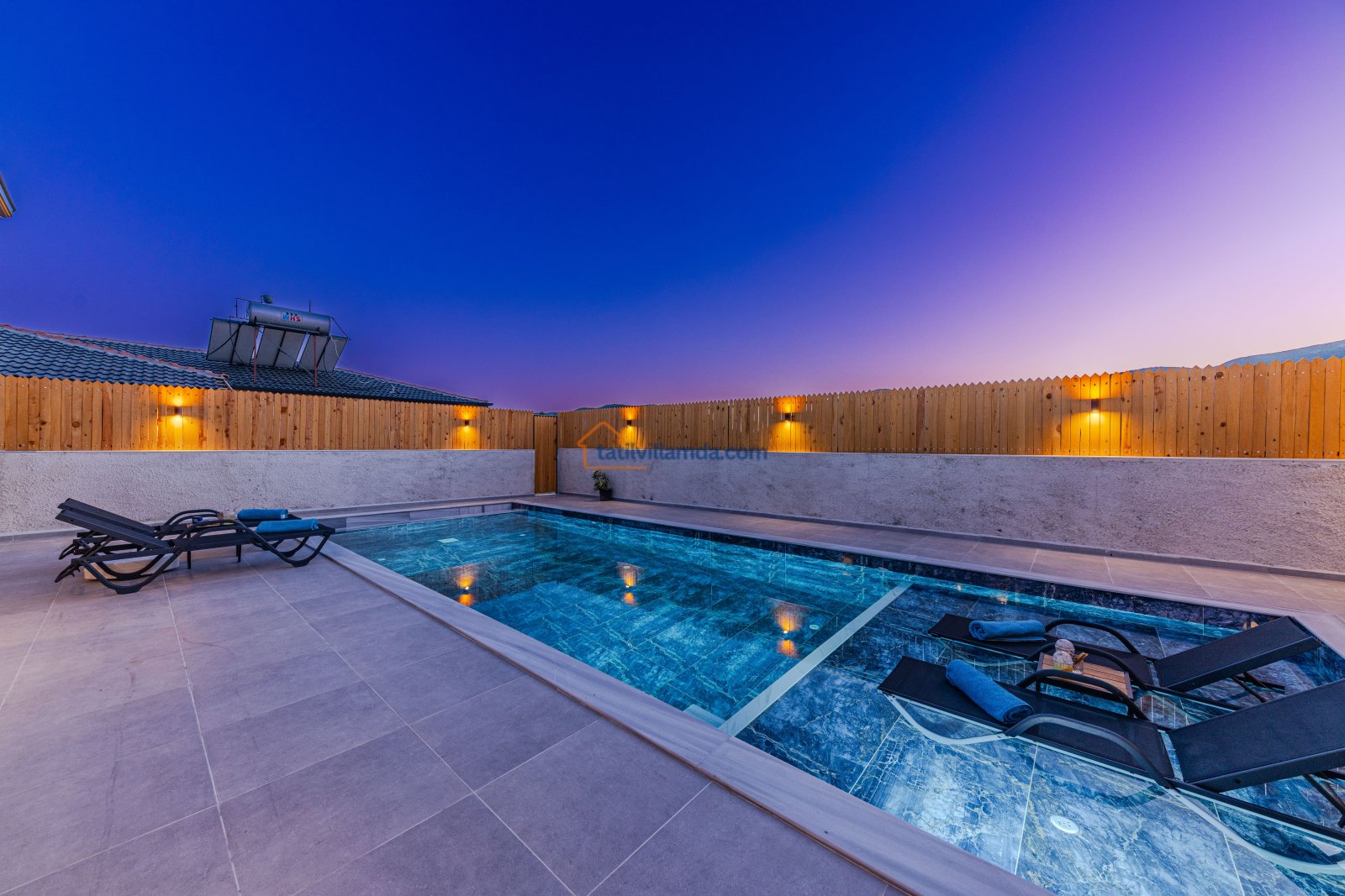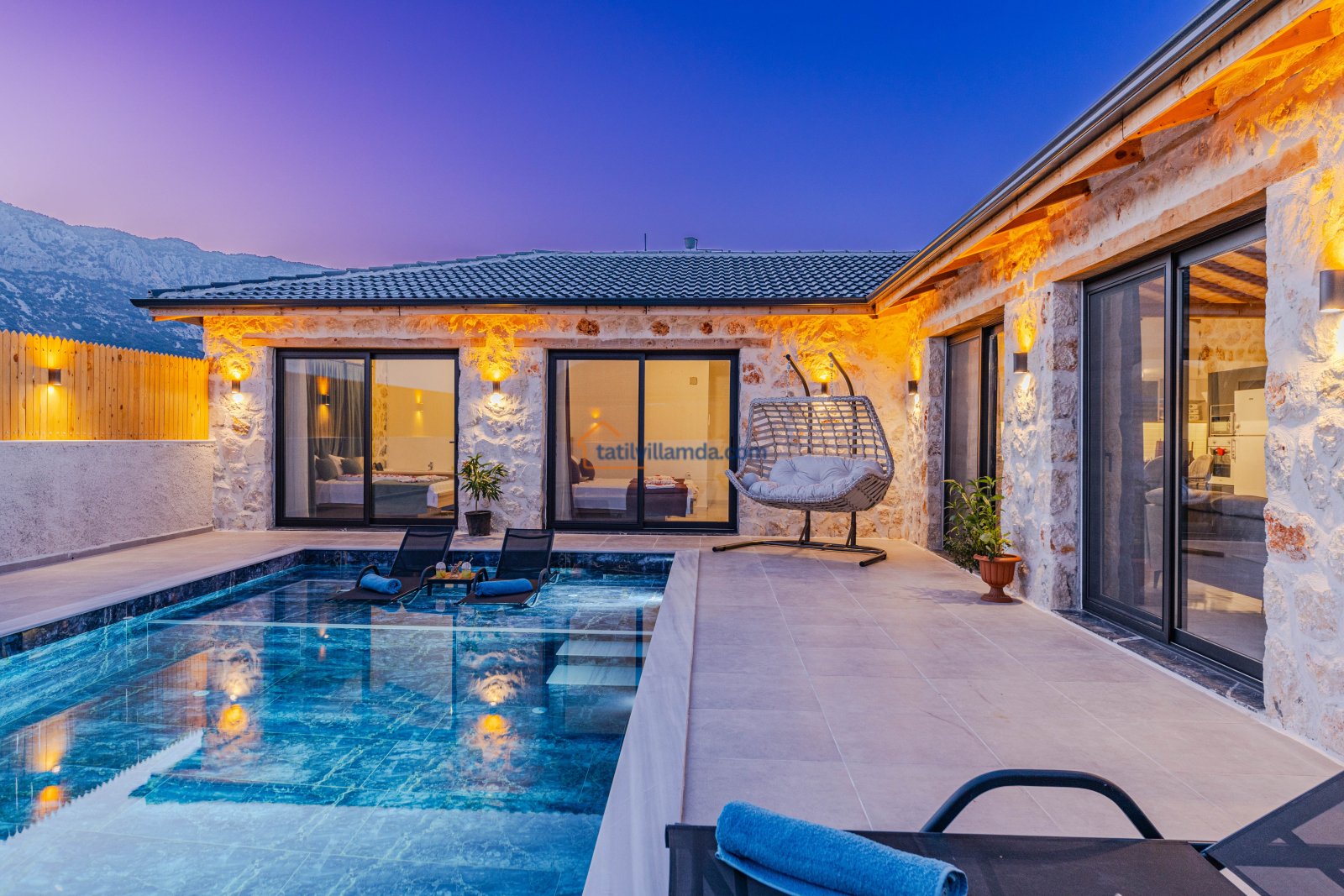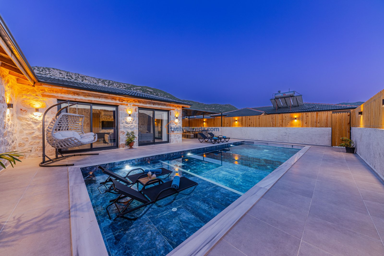 Yapım aşaması 2024 yılında tamamlanmış olup,Kalkan bölgesinin Bezirgan mevkisinde yer alan tatil villamız. Bulunduğu konum itibari ile doğa manzaralı seçenekler arasında olup Kalkan şehir merkezine özel araç ile ortalama max 20 dakika mesafededir.3 yatak odası olup toplamda 6 kişi konaklama kapasitesine sahiptir. Korunaklı özel havuzu ile muhafazakar ailelerimiz için oldukça uygun bir villamızdır. Villamızda aynı zamanda jakuzi ve havuz alanında salıncak,çocuk havuzu bulunmaktadır.Villamızın geniş havuz alanı,çocuklu aileler içinde için oldukça avantajlı bir villa haline gelecektir.Balayı Çiftlerimizinde gözde villası haline gelmiştir.