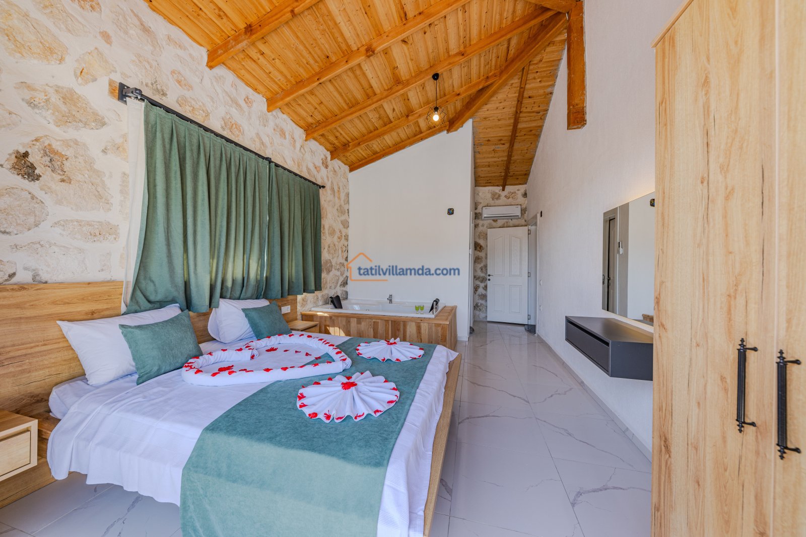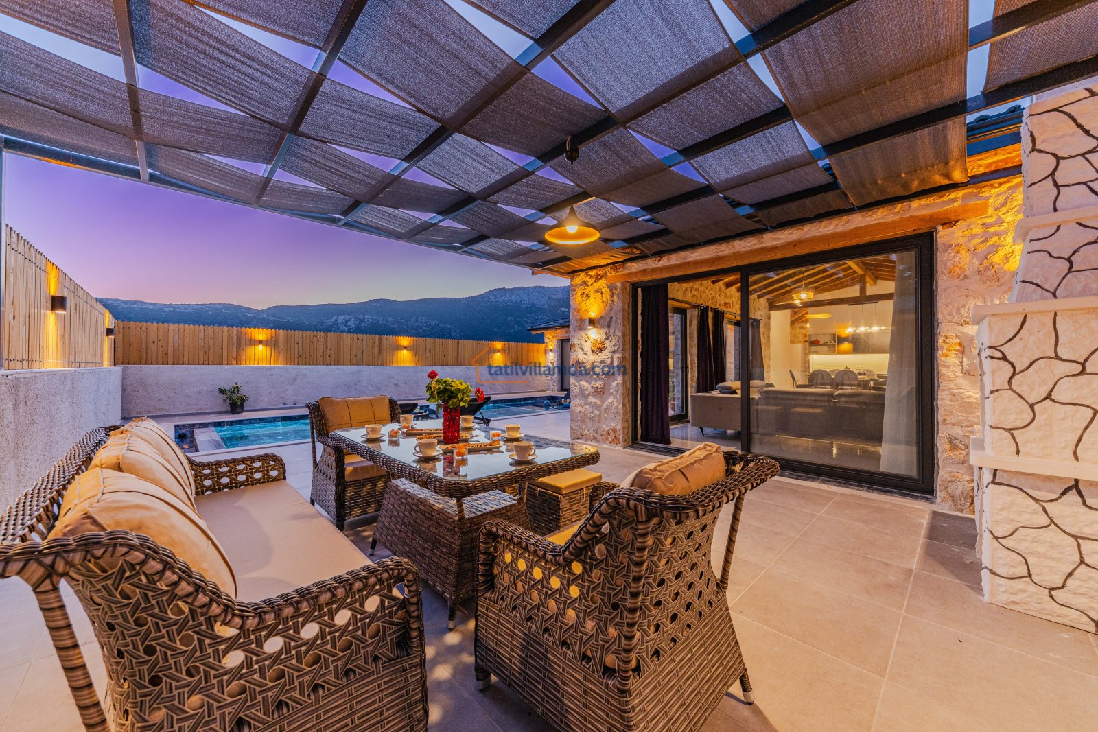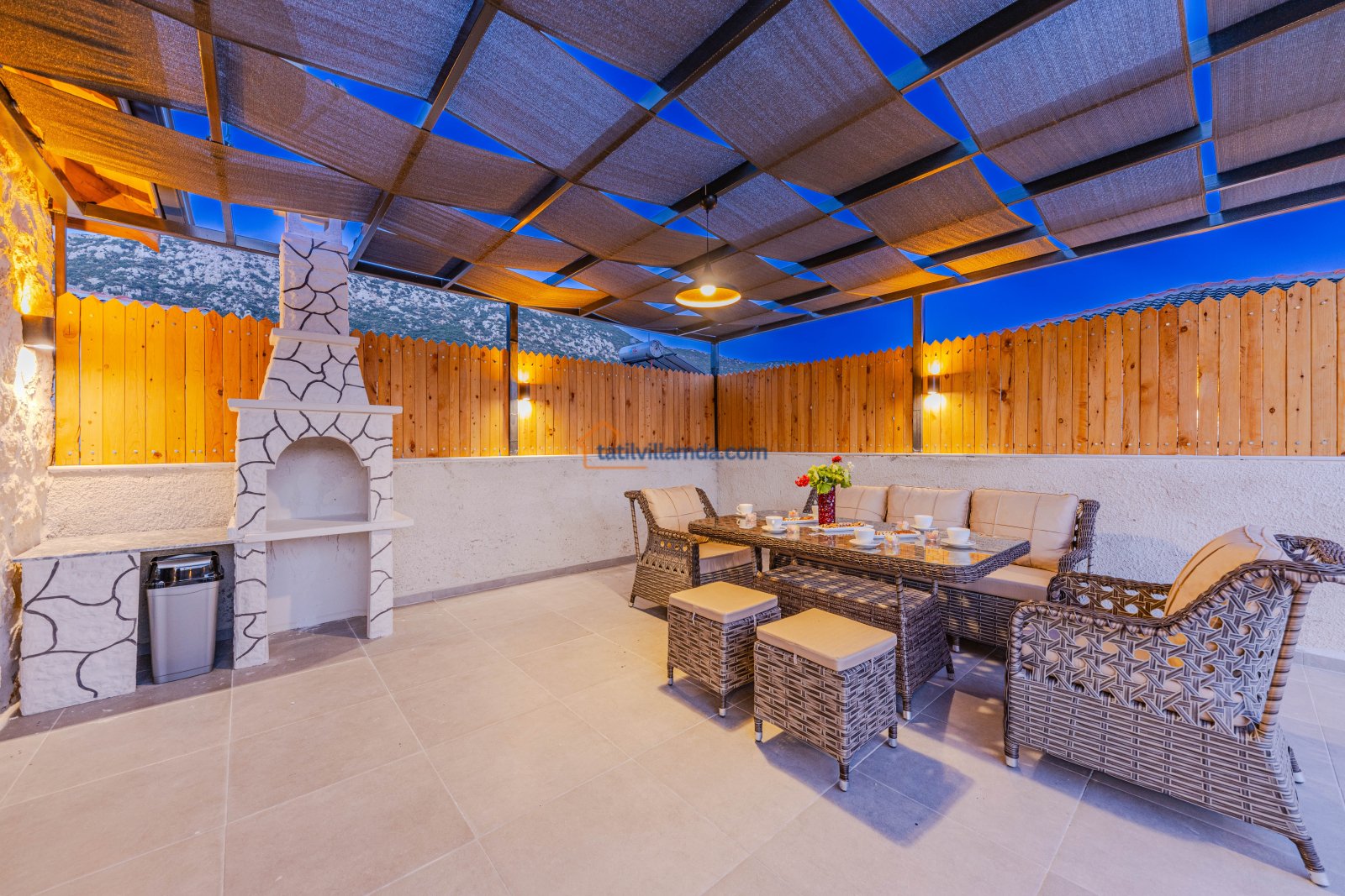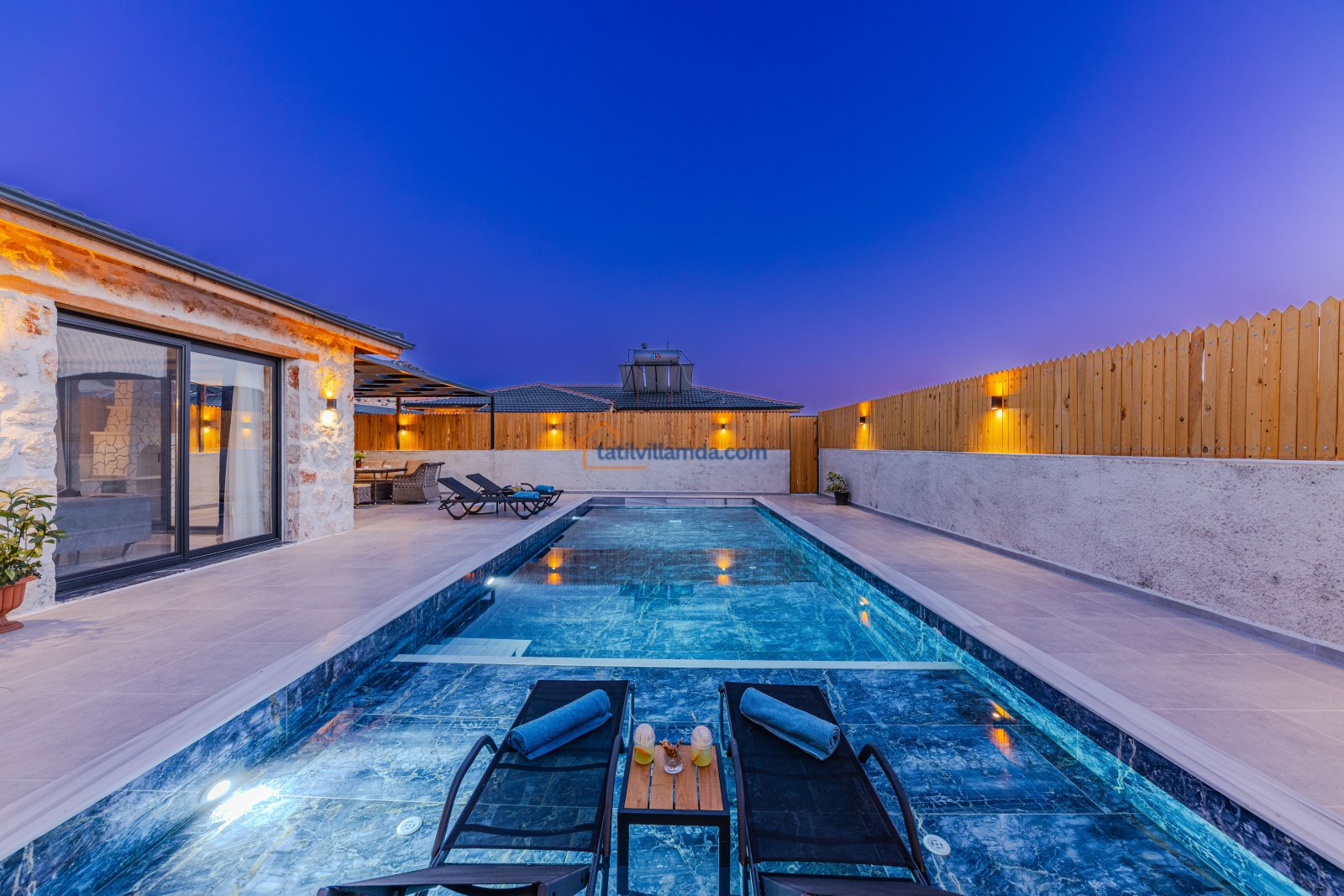Yapım aşaması 2024 yılında tamamlanmış olup,Kalkan bölgesinin Bezirgan mevkisinde yer alan tatil villamız. Bulunduğu konum itibari ile doğa manzaralı seçenekler arasında olup Kalkan şehir merkezine özel araç ile ortalama max 20 dakika mesafededir.3 yatak odası olup toplamda 6 kişi konaklama kapasitesine sahiptir. Korunaklı özel havuzu ile muhafazakar ailelerimiz için oldukça uygun bir villamızdır. Villamızda aynı zamanda jakuzi ve havuz alanında salıncak,çocuk havuzu bulunmaktadır.Villamızın geniş havuz alanı,çocuklu aileler içinde için oldukça avantajlı bir villa haline gelecektir.Balayı Çiftlerimizinde gözde villası haline gelmiştir.