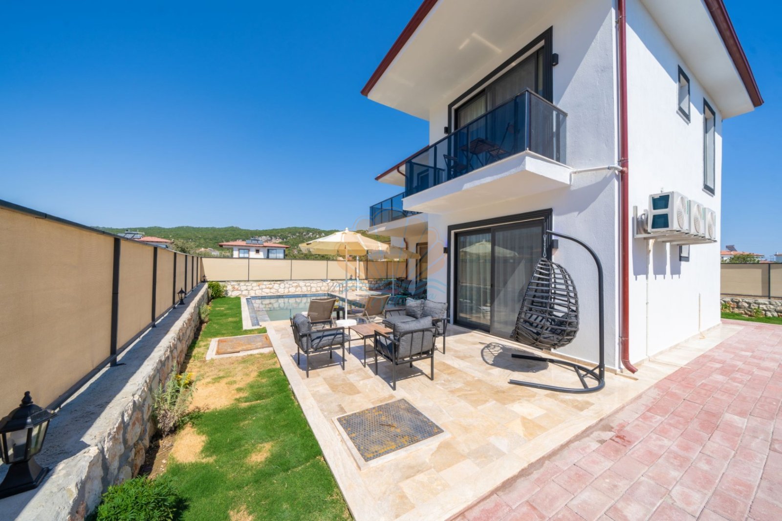 Villanın geniş havuz terasında şezlonglar, şemsiye, salıncak ve masa takımı yer alır. Bahçe oturma grubu, sevdiklerinizle uzun sohbetler etmek ya da gün batımının tadını çıkarmak için ideal bir alan sunar. Barbekü alanı ise akşam yemeklerini keyifli bir ritüele dönüştürür. Korunaklı yapısı sayesinde dış gözlerden uzak, özgürce vakit geçirebileceğiniz bir ortam sağlar.