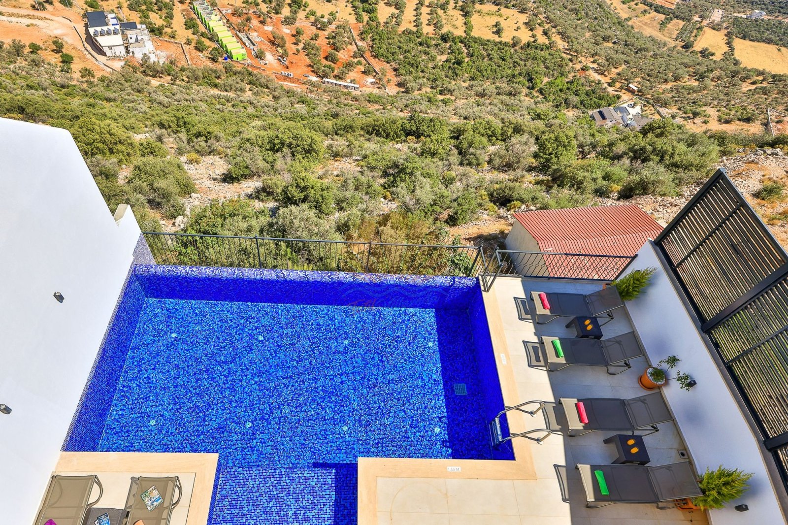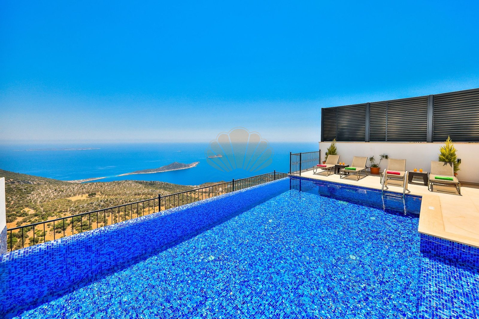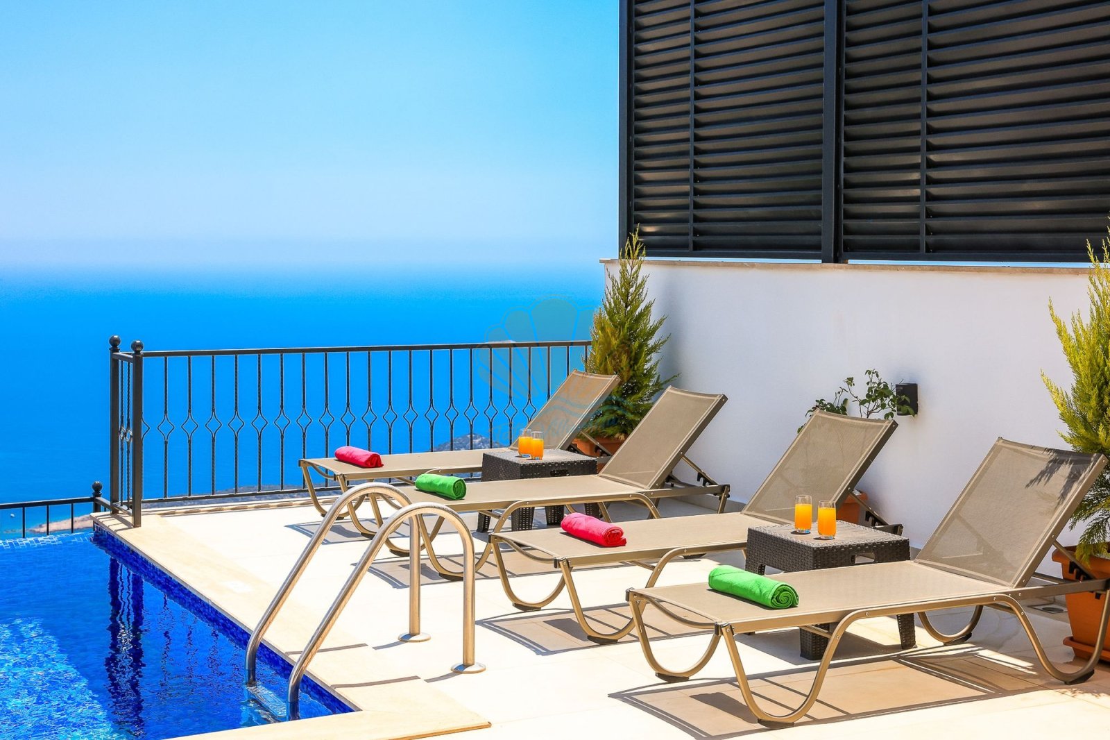 Deniz manzaralı sonsuzluk havuzu, villanın en dikkat çekici noktalarından biridir. Korunaklı ve geniş yapısı sayesinde gün boyu özgürce yüzebilir, güneşin tadını çıkarabilirsiniz. Havuz başında şezlonglar, şemsiye, salıncak ve bahçe oturma grubu yer alırken, akşamları barbekü keyfiyle tatilinize lezzet katabilirsiniz.