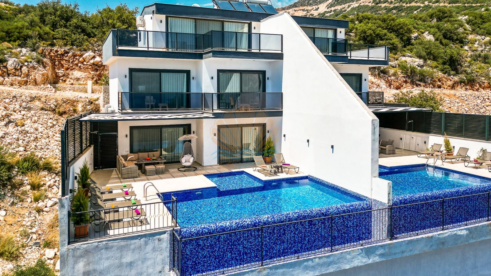 Kalkan’ın gözde bölgelerinden Kördere’de, denizin mavisini ayaklarınızın altına seren özel bir konumda yer alır. Modern mimarisi, ferah yaşam alanları ve manzarasıyla daha ilk bakışta tatilin başladığını hissettirir. Üç katlı olarak tasarlanan villa, hem kalabalık aileler hem de arkadaş grupları için konforlu ve keyifli bir konaklama sunar.