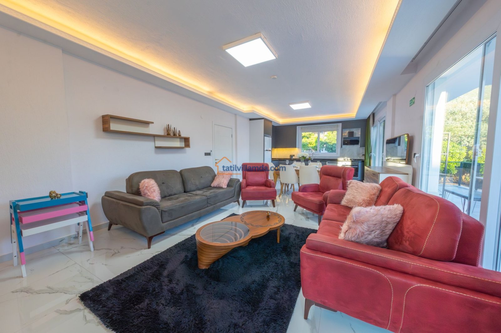 Villanın bulunduğu konum, misafirlere kolay ulaşım imkânı sunar. Market, restoran, merkez ve plaja yakın mesafede bulunur. Otopark imkânı sayesinde araçla gelen misafirler de rahat bir tatil geçirebilir.