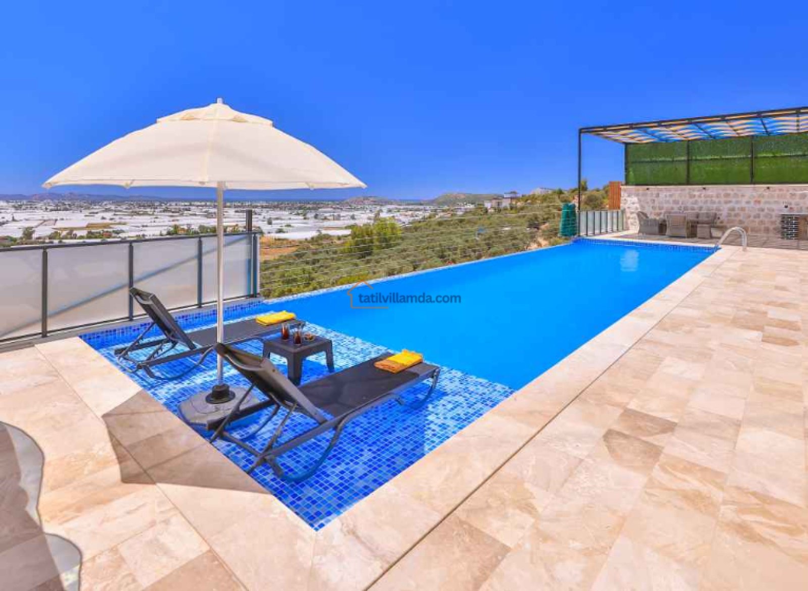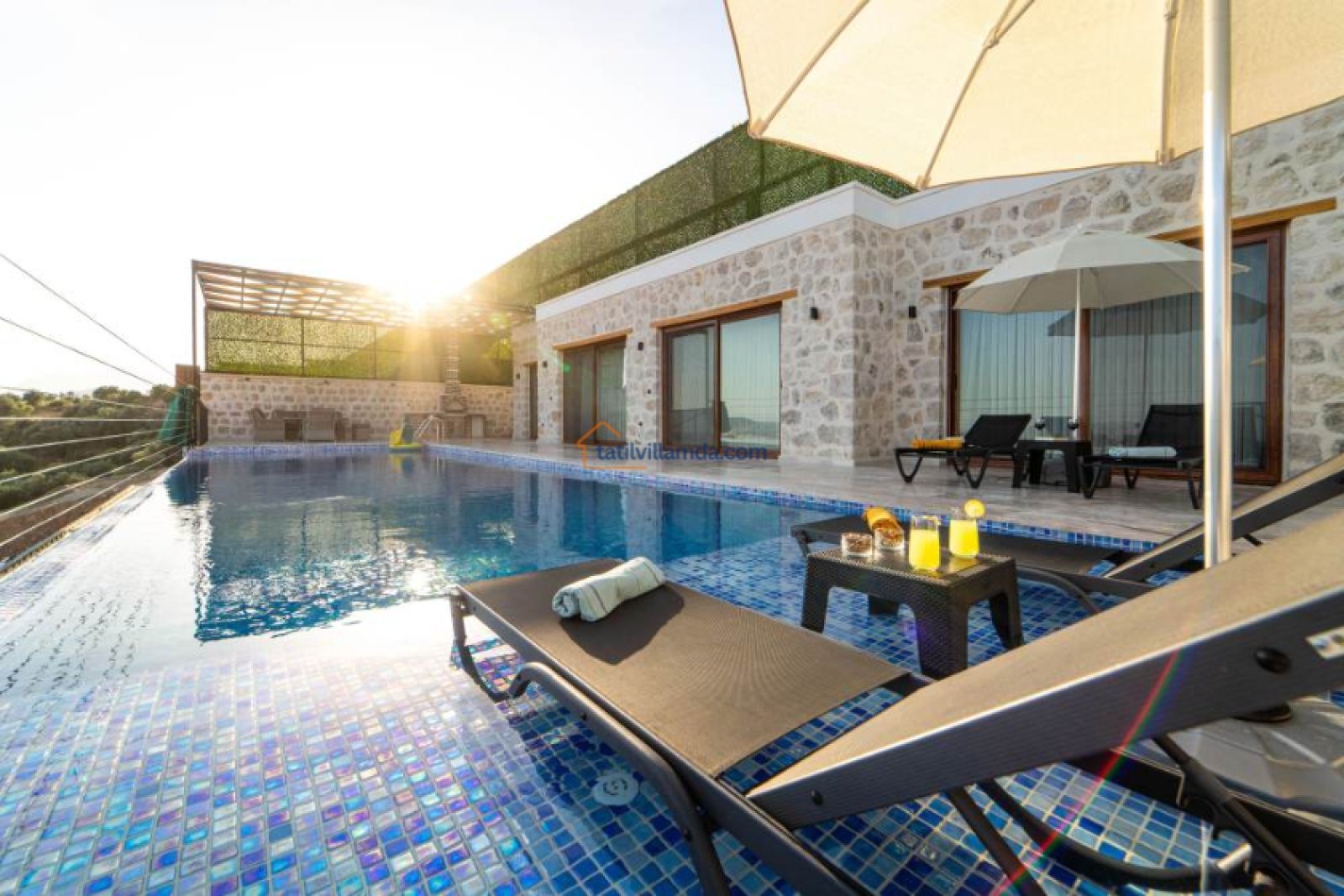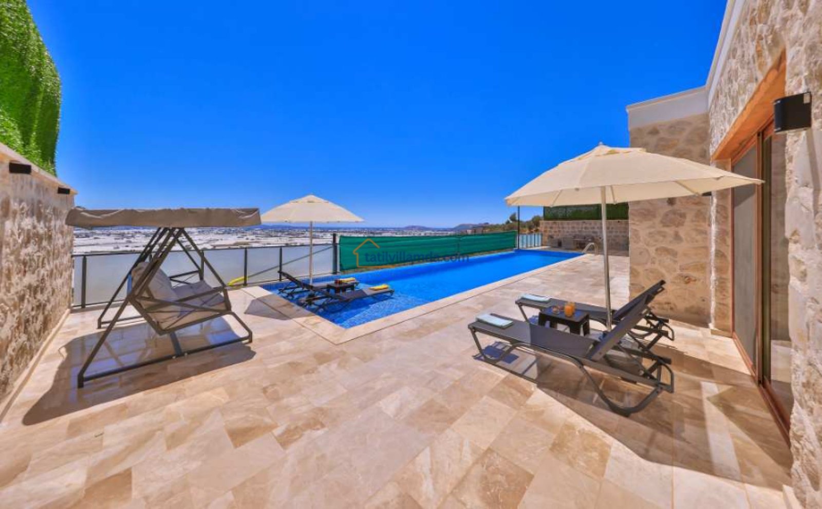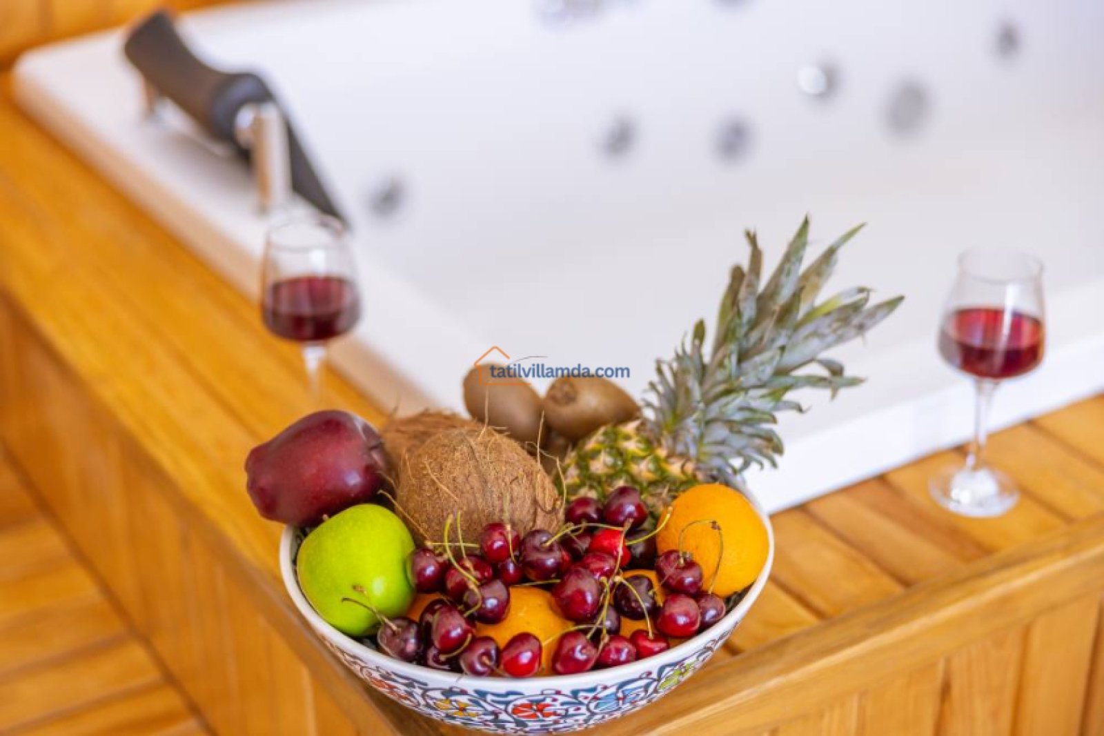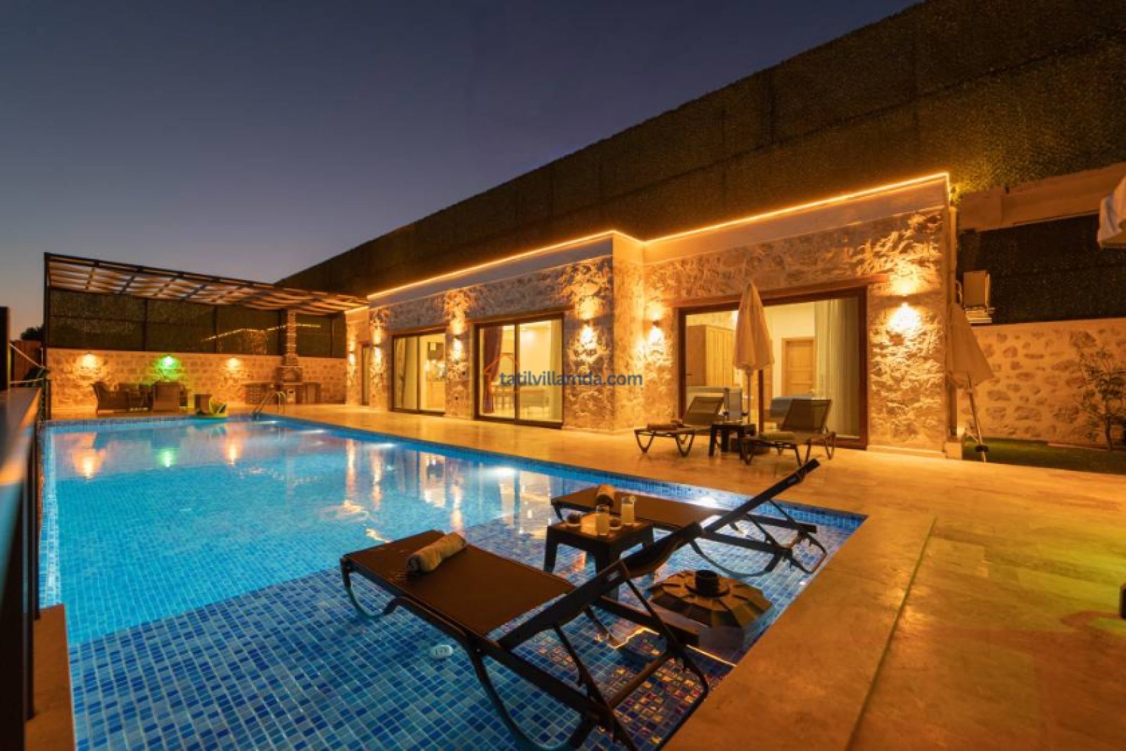 Villamız, 2 yatak odası ve 4 kişilik konaklama kapasitesi ile aileler ve balayı çiftleri için ideal bir seçenek. Geniş ve tamamen korunaklı özel yüzme havuzu, havuz başında şezlonglar, şemsiye, barbekü ve bahçe oturma grubu ile tatilinizi açık havada keyifle geçirebilirsiniz.