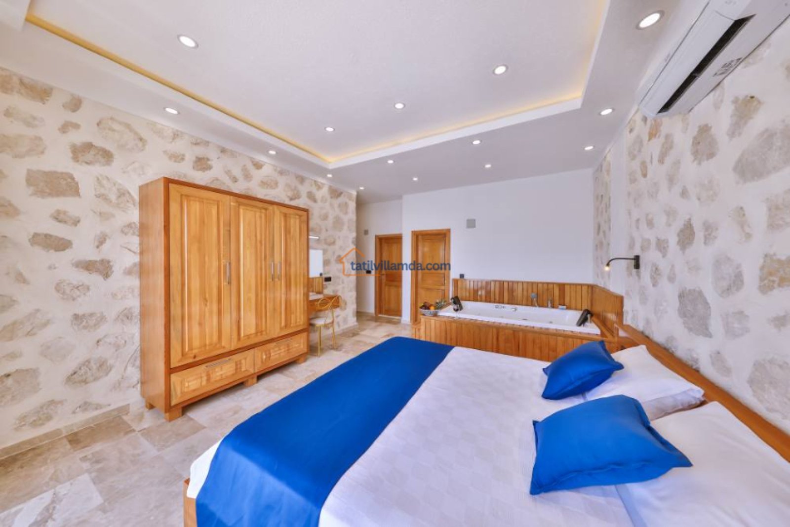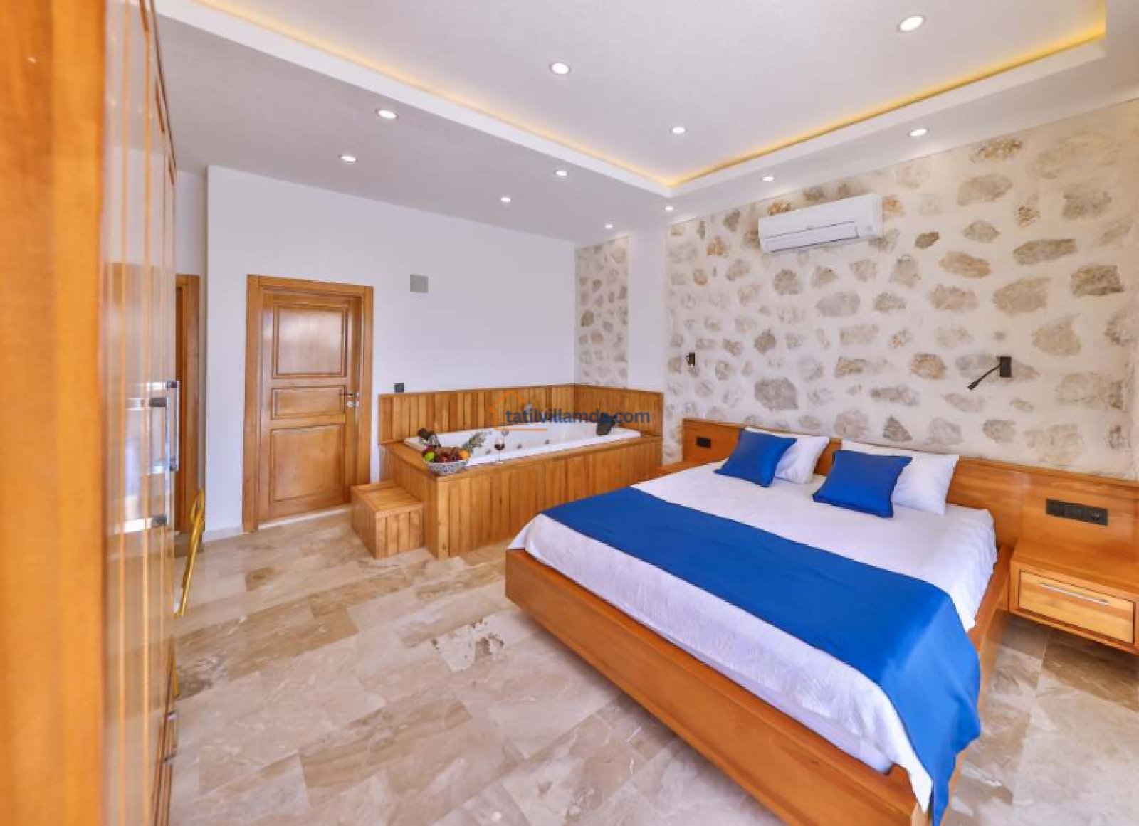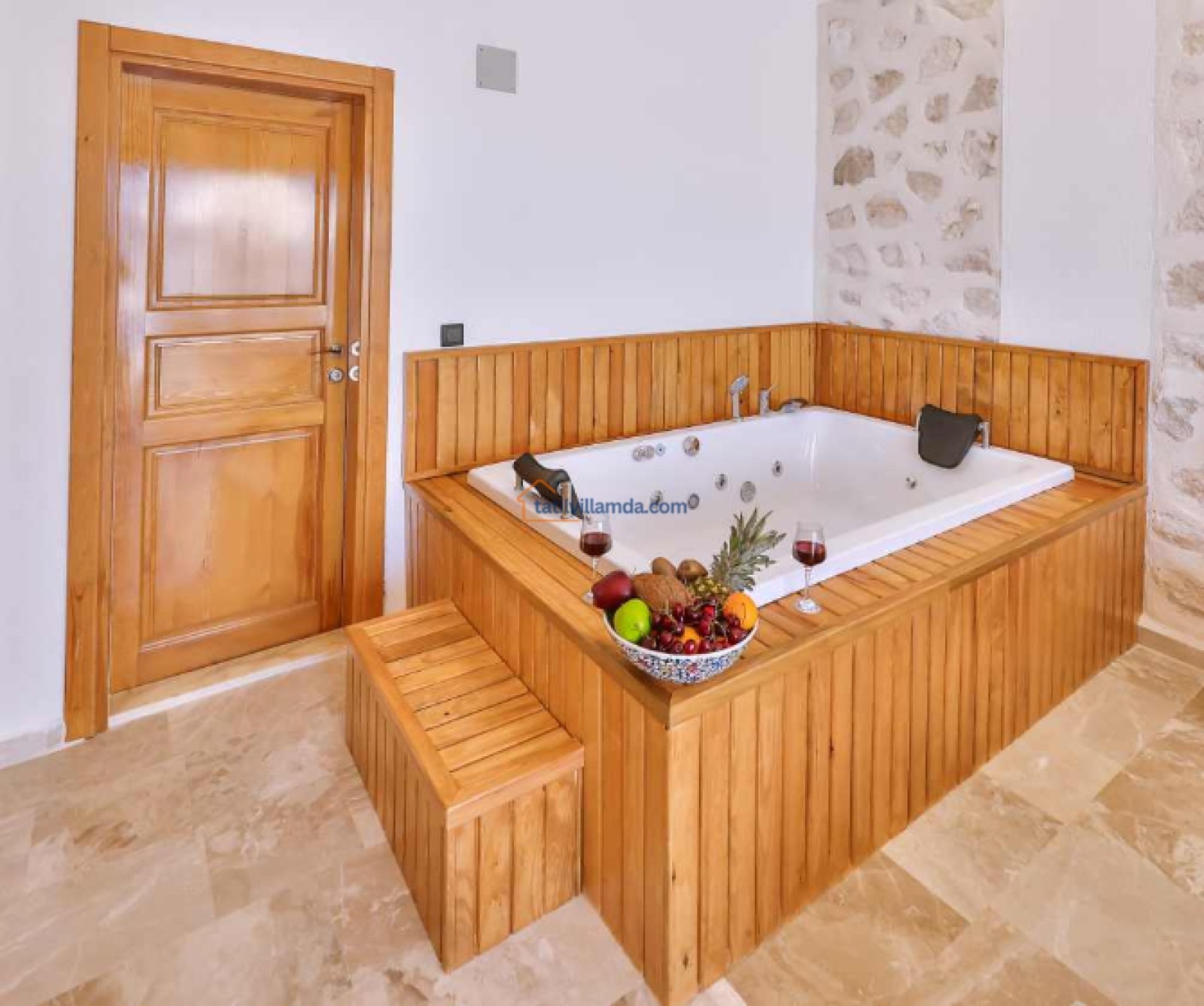 Villa Fay 2’nin iç tasarımı modern ve lüks bir şekilde dizayn edilmiştir. Jakuzili ana yatak odası, günün yorgunluğunu atmanız için mükemmel bir dinlenme alanı sunar. Ayrıca villa içinde yer alan sauna ve hamam, tatilinizi bir adım öteye taşıyarak size özel bir spa deneyimi yaşatır.