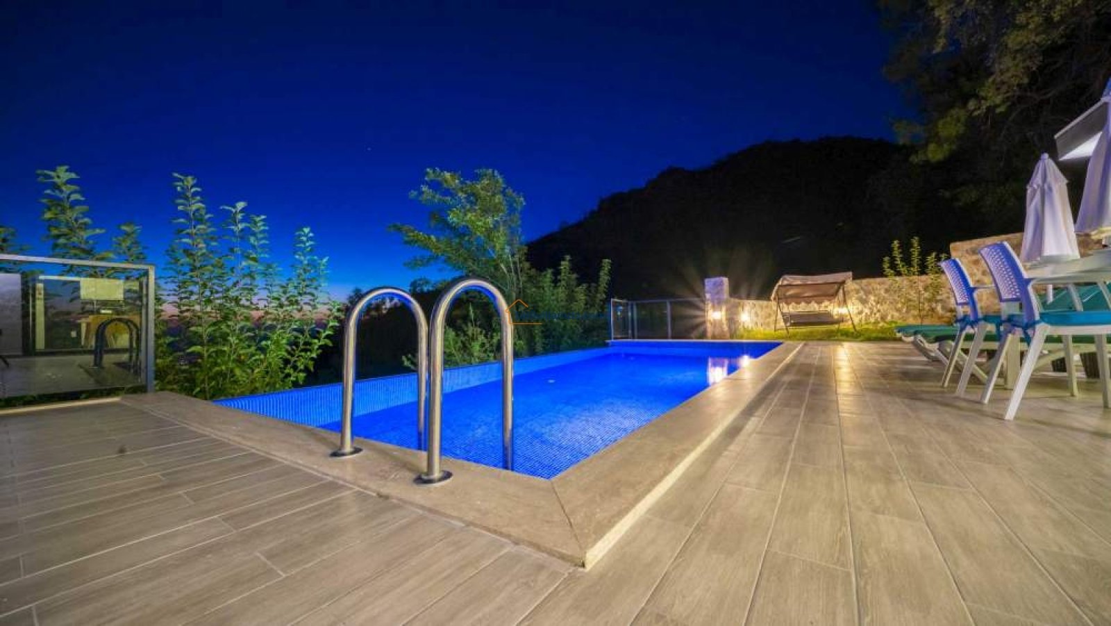 Villa Arzum, Kalkan Üzümlü Lapaz bölgesinde yer alan ve doğayla iç içe bir tatil deneyimi sunan harika bir tatil villasıdır. Kalkan merkeze ve plajlara sadece 10 dakika mesafede olup, ulaşım açısından oldukça rahattır. Villa, korunaklı yapısıyla konforlu ve gizlilik arayan misafirlere hitap etmektedir. Geniş yüzme havuzu, yaz aylarında serinleme imkanı sunarken, masaj özellikli kumandalı ikinci havuz, misafirlere ekstra rahatlama fırsatı sunmaktadır.