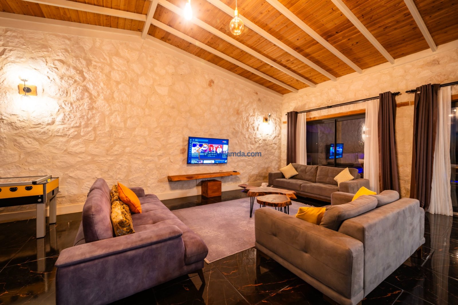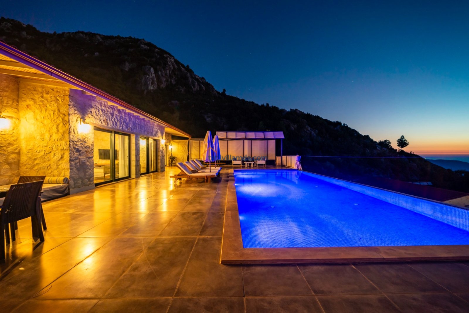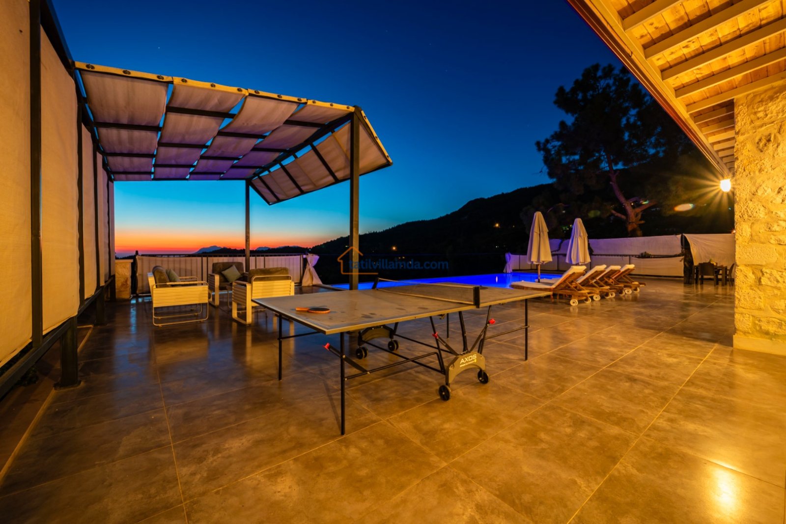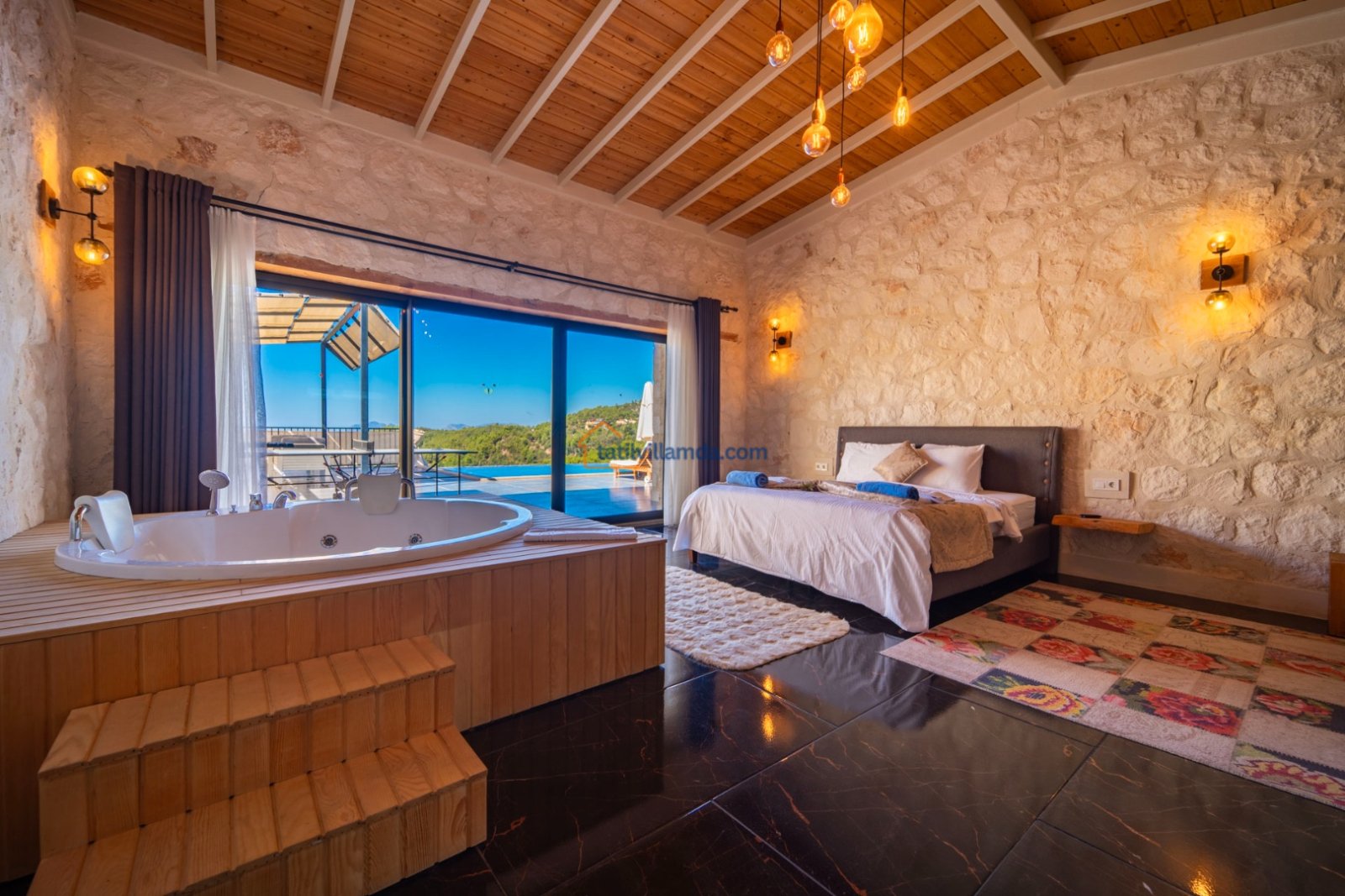 Villa Ateş Eco, Kalkan’ın huzur veren İslamlar bölgesinde doğayla iç içe konumlanmış modern ve lüks bir tatil villasıdır. Muhteşem manzarası, korunaklı özel havuzu ve şık mimarisiyle dört kişilik aileler ve arkadaş grupları için ideal bir konaklama sunar. İki yatak odasının her biri özel banyoya sahiptir; ebeveyn odasında ayrıca jakuzi ve TV bulunmaktadır. Geniş ve ferah salonda konforlu oturma grubu, klima, TV ve havuz terasına direkt çıkış yer alır. Amerikan mutfakta buzdolabı, bulaşık makinesi, çamaşır makinesi, fırın, mikrodalga ve yemek ekipmanları eksiksiz şekilde sunulmaktadır. Villa Ateş’in korunaklı bahçesinde bulunan özel yüzme havuzu, şezlonglar ve oturma alanları misafirlerine sakin ve keyifli bir tatil imkânı sağlar. Villa Hava Eco, Villa Toprak Eco ve Villa Su Eco gibi yan komşu villalarla birlikte kalabalık gruplar için de avantajlıdır. Doğal yaşamının içinde yer alan villa, doğa severler için unutulmaz ve konforlu bir tatil deneyimi sunar.