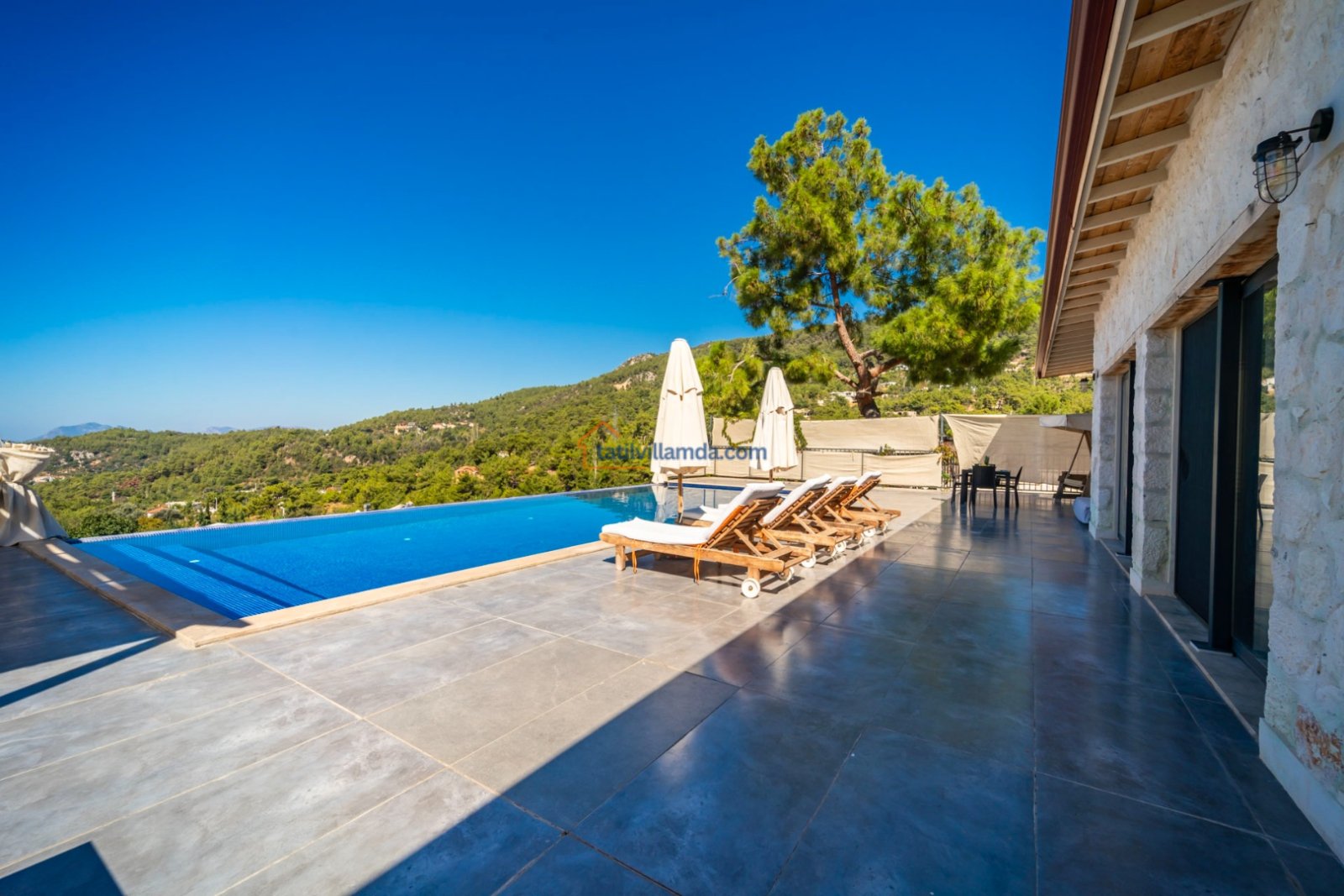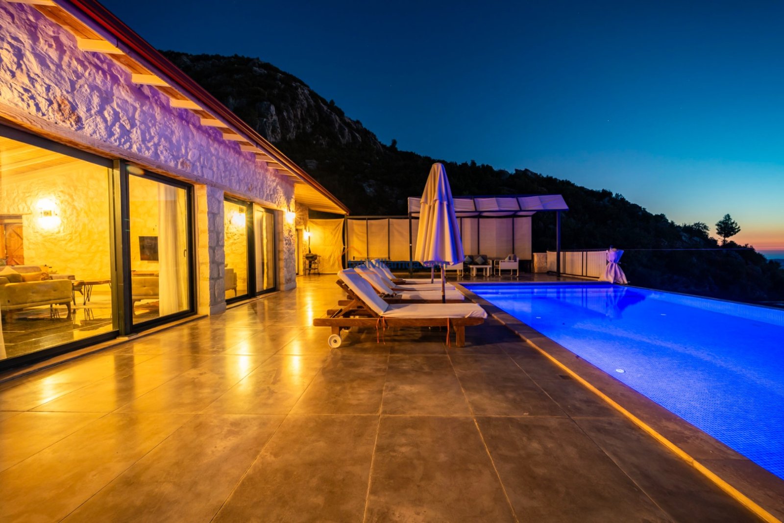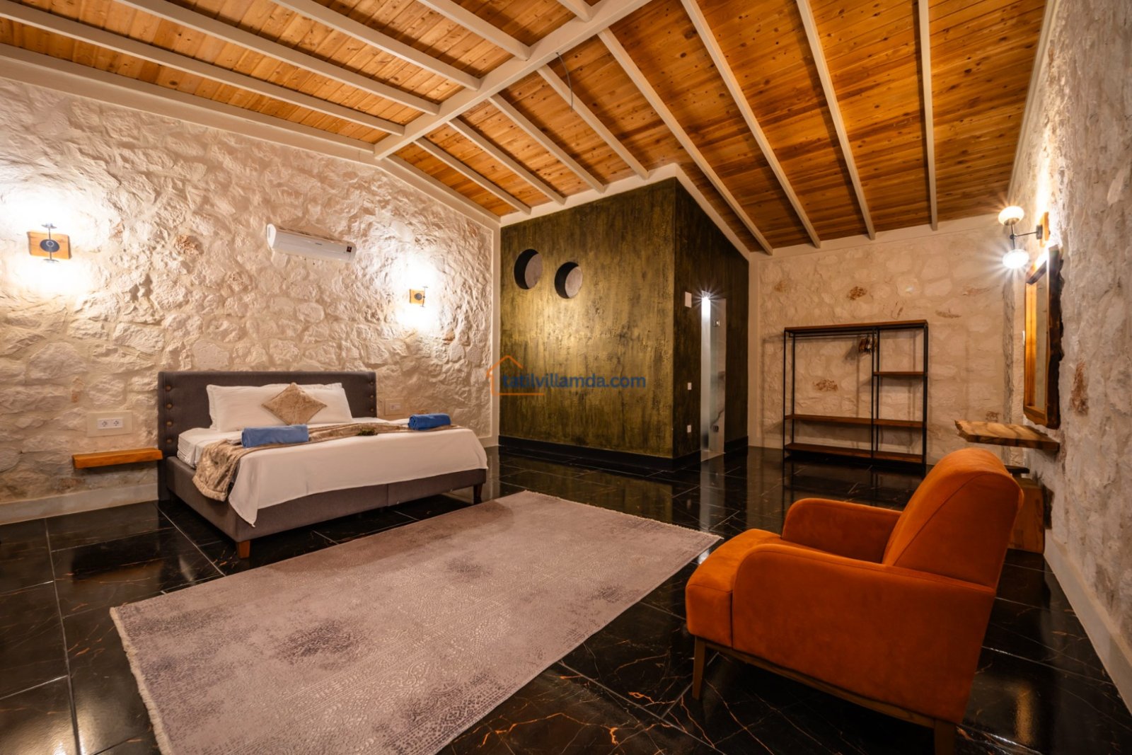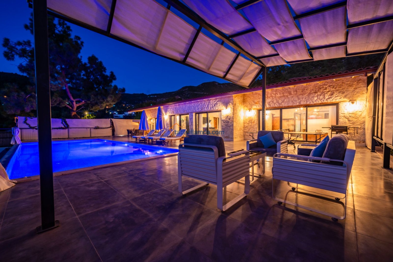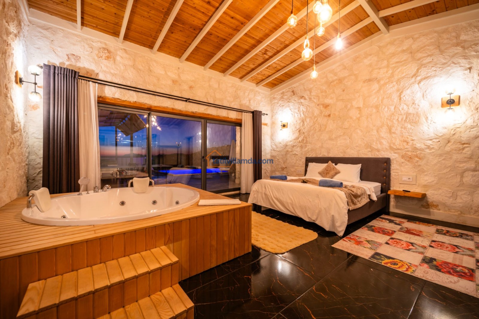 Villa Ateş Eco, Kalkan’ın huzur veren İslamlar bölgesinde doğayla iç içe konumlanmış modern ve lüks bir tatil villasıdır. Muhteşem manzarası, korunaklı özel havuzu ve şık mimarisiyle dört kişilik aileler ve arkadaş grupları için ideal bir konaklama sunar. İki yatak odasının her biri özel banyoya sahiptir; ebeveyn odasında ayrıca jakuzi ve TV bulunmaktadır. Geniş ve ferah salonda konforlu oturma grubu, klima, TV ve havuz terasına direkt çıkış yer alır. Amerikan mutfakta buzdolabı, bulaşık makinesi, çamaşır makinesi, fırın, mikrodalga ve yemek ekipmanları eksiksiz şekilde sunulmaktadır. Villa Ateş’in korunaklı bahçesinde bulunan özel yüzme havuzu, şezlonglar ve oturma alanları misafirlerine sakin ve keyifli bir tatil imkânı sağlar. Villa Hava Eco, Villa Toprak Eco ve Villa Su Eco gibi yan komşu villalarla birlikte kalabalık gruplar için de avantajlıdır. Doğal yaşamının içinde yer alan villa, doğa severler için unutulmaz ve konforlu bir tatil deneyimi sunar.