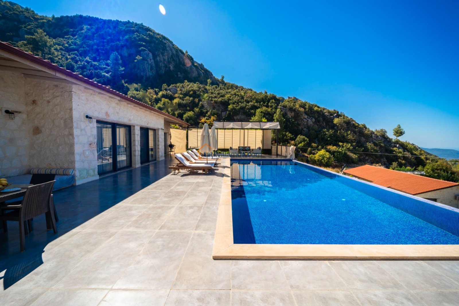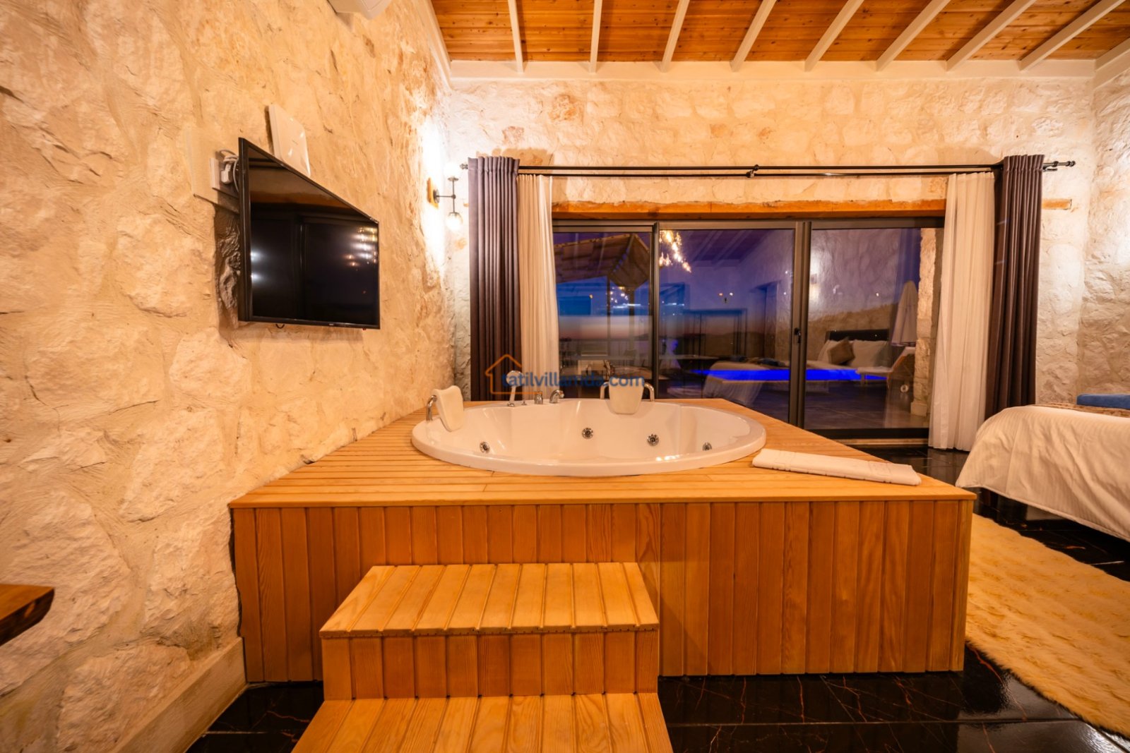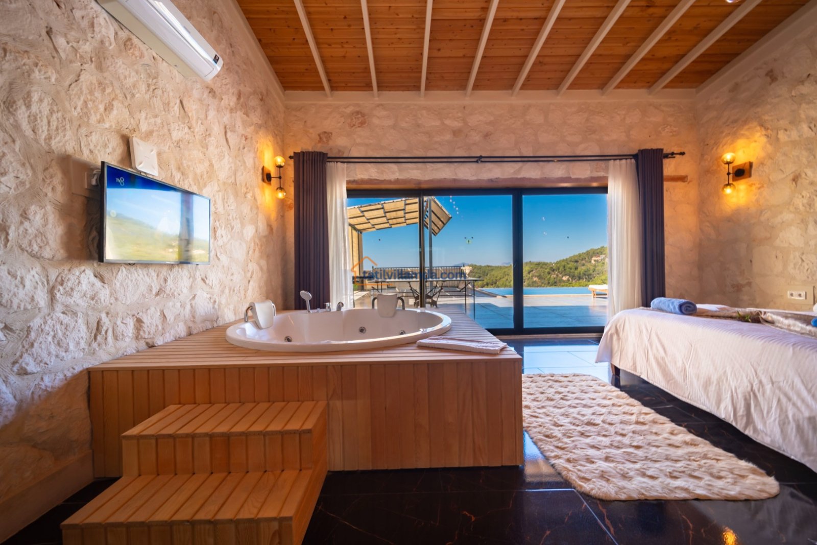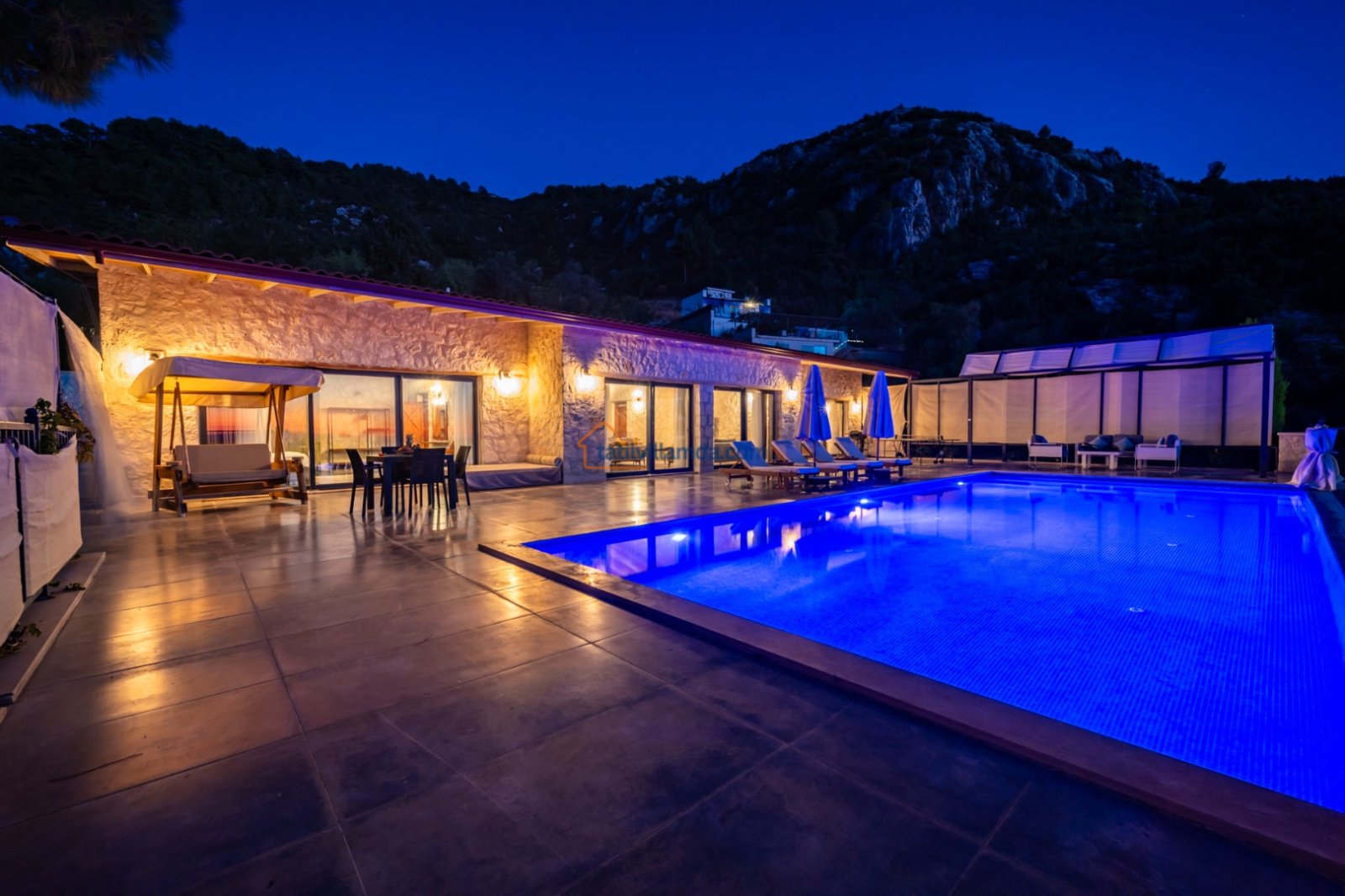 Villa Ateş Eco, Kalkan’ın huzur veren İslamlar bölgesinde doğayla iç içe konumlanmış modern ve lüks bir tatil villasıdır. Muhteşem manzarası, korunaklı özel havuzu ve şık mimarisiyle dört kişilik aileler ve arkadaş grupları için ideal bir konaklama sunar. İki yatak odasının her biri özel banyoya sahiptir; ebeveyn odasında ayrıca jakuzi ve TV bulunmaktadır. Geniş ve ferah salonda konforlu oturma grubu, klima, TV ve havuz terasına direkt çıkış yer alır. Amerikan mutfakta buzdolabı, bulaşık makinesi, çamaşır makinesi, fırın, mikrodalga ve yemek ekipmanları eksiksiz şekilde sunulmaktadır. Villa Ateş’in korunaklı bahçesinde bulunan özel yüzme havuzu, şezlonglar ve oturma alanları misafirlerine sakin ve keyifli bir tatil imkânı sağlar. Villa Hava Eco, Villa Toprak Eco ve Villa Su Eco gibi yan komşu villalarla birlikte kalabalık gruplar için de avantajlıdır. Doğal yaşamının içinde yer alan villa, doğa severler için unutulmaz ve konforlu bir tatil deneyimi sunar.
