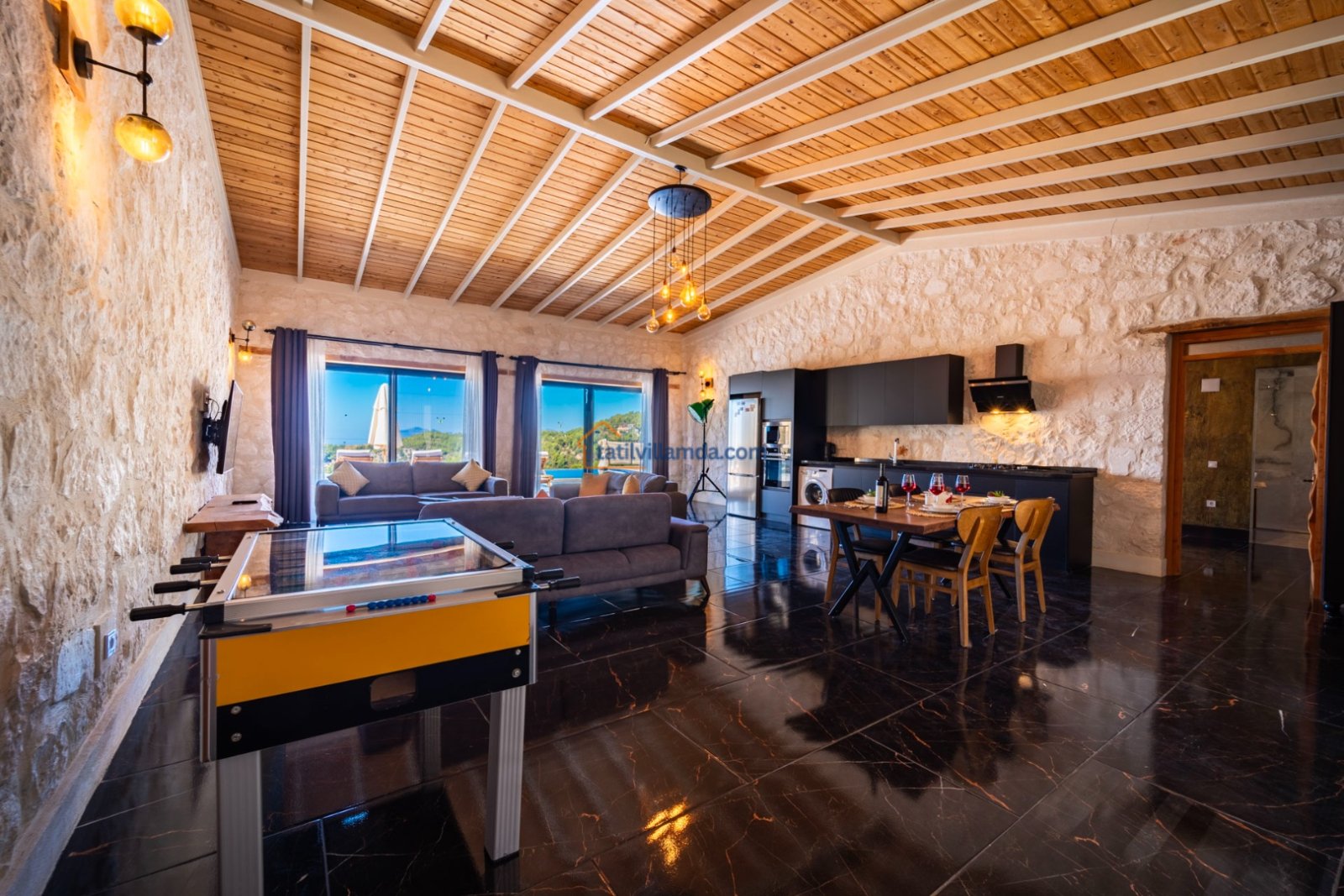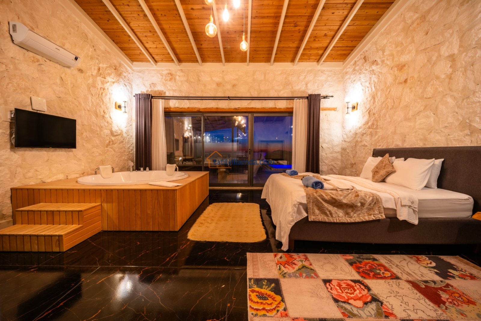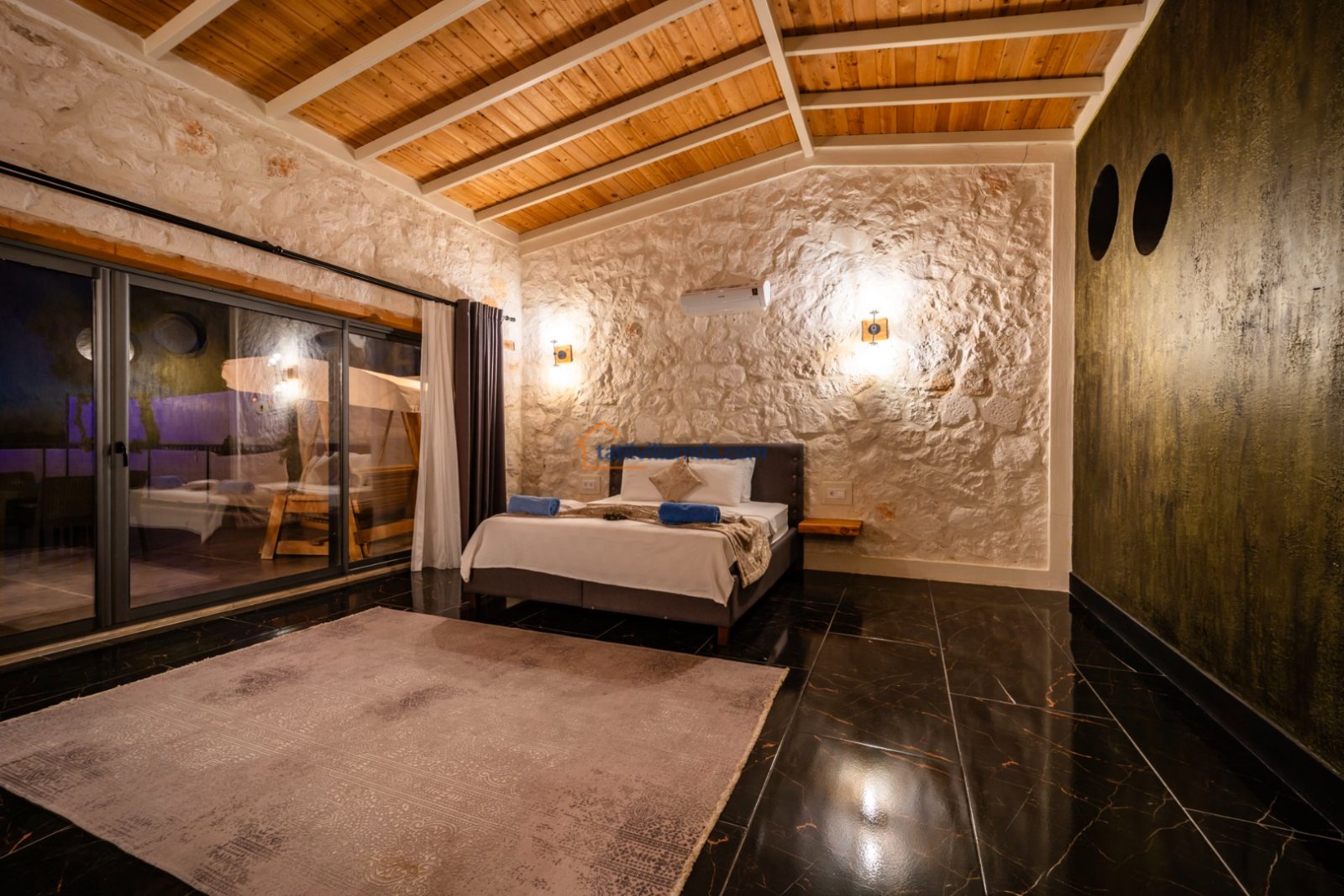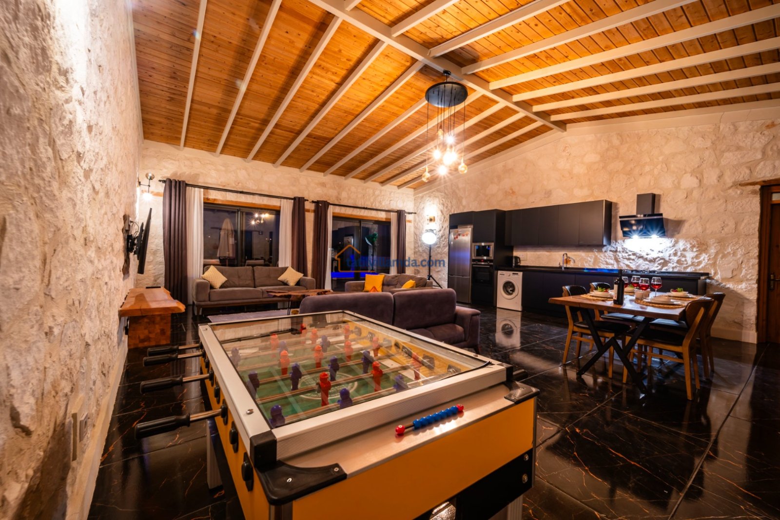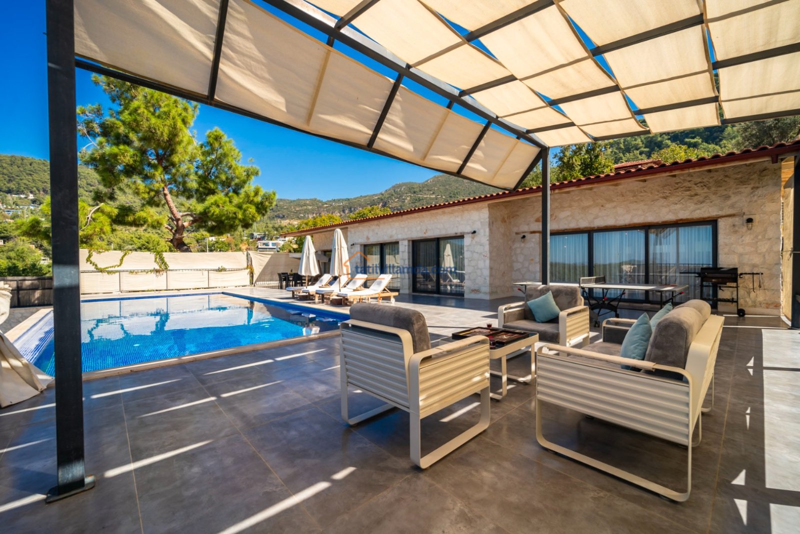 Villa Ateş Eco, Kalkan’ın huzur veren İslamlar bölgesinde doğayla iç içe konumlanmış modern ve lüks bir tatil villasıdır. Muhteşem manzarası, korunaklı özel havuzu ve şık mimarisiyle dört kişilik aileler ve arkadaş grupları için ideal bir konaklama sunar. İki yatak odasının her biri özel banyoya sahiptir; ebeveyn odasında ayrıca jakuzi ve TV bulunmaktadır. Geniş ve ferah salonda konforlu oturma grubu, klima, TV ve havuz terasına direkt çıkış yer alır. Amerikan mutfakta buzdolabı, bulaşık makinesi, çamaşır makinesi, fırın, mikrodalga ve yemek ekipmanları eksiksiz şekilde sunulmaktadır. Villa Ateş’in korunaklı bahçesinde bulunan özel yüzme havuzu, şezlonglar ve oturma alanları misafirlerine sakin ve keyifli bir tatil imkânı sağlar. Villa Hava Eco, Villa Toprak Eco ve Villa Su Eco gibi yan komşu villalarla birlikte kalabalık gruplar için de avantajlıdır. Doğal yaşamının içinde yer alan villa, doğa severler için unutulmaz ve konforlu bir tatil deneyimi sunar.