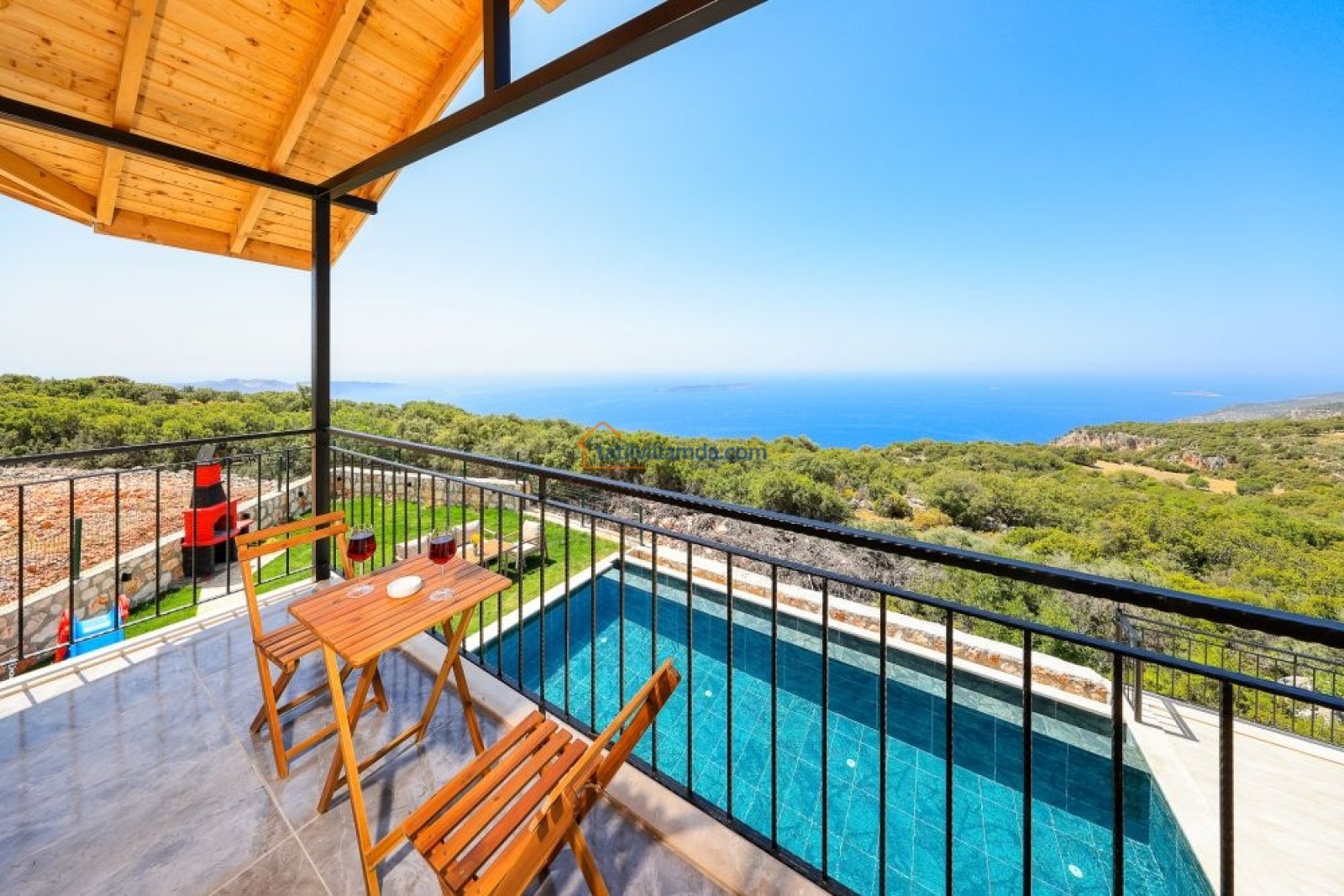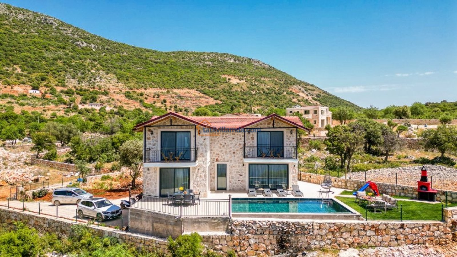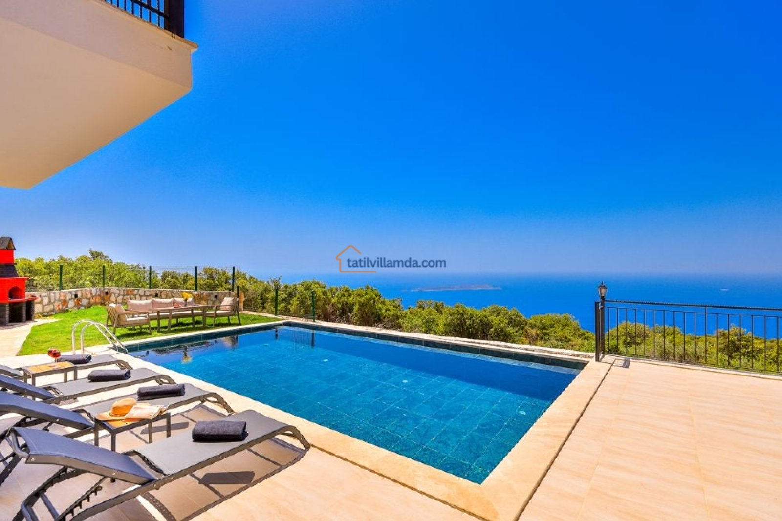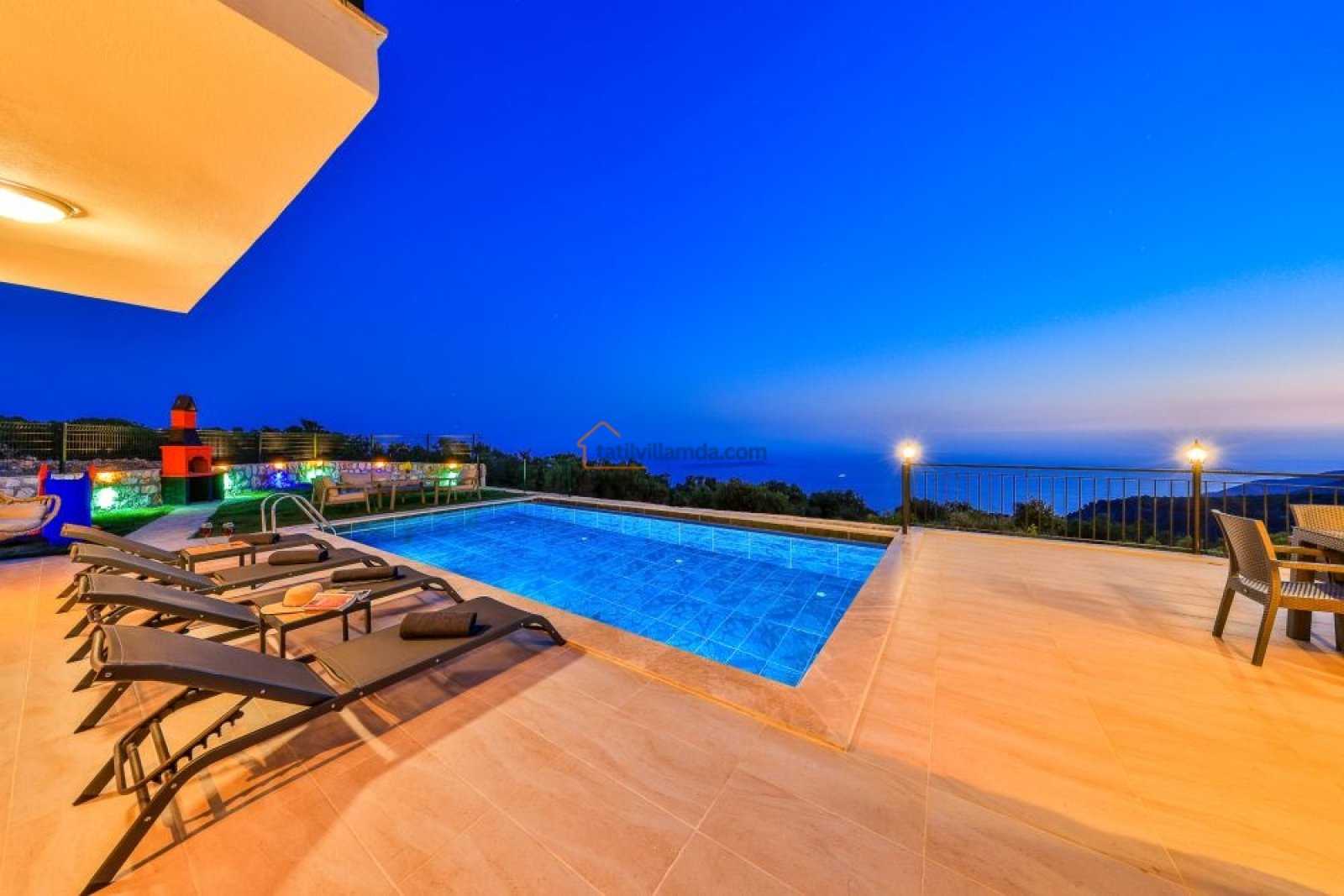 Villanın bahçesi, tatilinize keyif katacak birçok olanak sunar. Geniş havuz alanında bulunan şezlonglar, gün boyu güneşin tadını çıkarmanız için idealdir. Ayrıca, salıncak, barbekü alanı ve bahçe oturma grubu ile açık havada unutulmaz anlar yaşayabilirsiniz. Akşamları barbekü yaparken, gün batımının huzur verici atmosferinde sevdiklerinizle keyifli vakit geçirebilirsiniz.