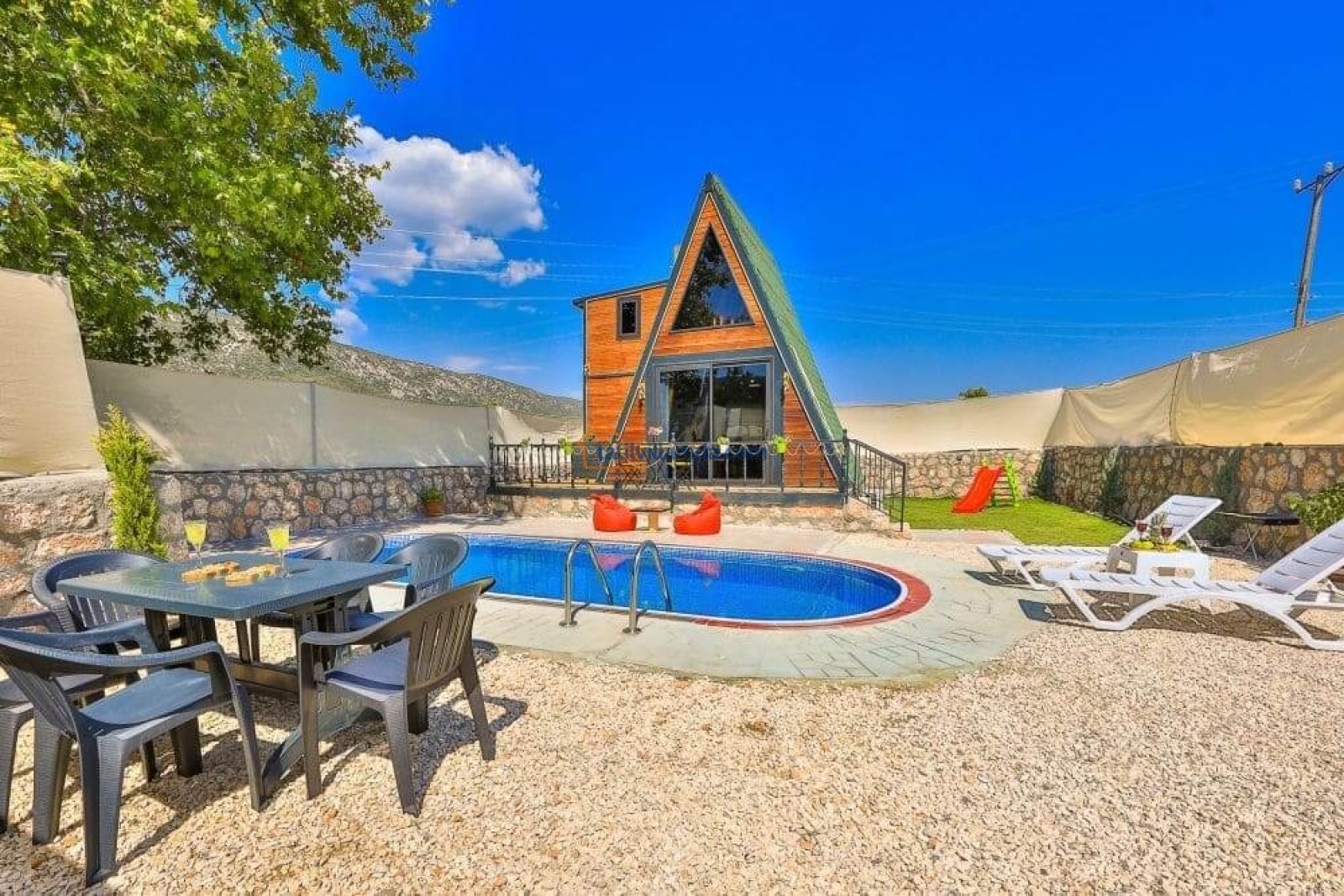 Villa Bir İnci, Kalkan'ın huzur dolu Sarıbelen mevkiinde yer alan, doğayla iç içe, keyifli bir tatil için ideal bir bungalovdur. Korunaklı havuzu sayesinde misafirlerine tam bir mahremiyet sunar. Geniş bahçesi, yeşillikler arasında dinlenmek, sevdiklerinizle keyifli anlar yaşamak ve çocuklar için güvenli bir oyun alanı sağlar.