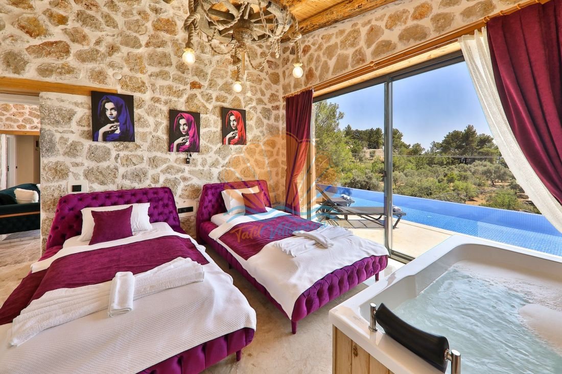 Toplamda 2 yatak odasına sahip olan villa, 4 kişilik konaklama kapasitesi ile çekirdek aileler ve balayı çiftleri için uygundur. Her iki yatak odası da ebeveyn banyolu olup konforunuz ön planda düşünülmüştür. Ayrıca her iki odada da yer alan jakuziler sayesinde günün yorgunluğunu keyifle atabilirsiniz. Modern ve lüks detaylarla dekore edilmiş iç mekan, şık ve konforlu bir yaşam alanı sunmaktadır.