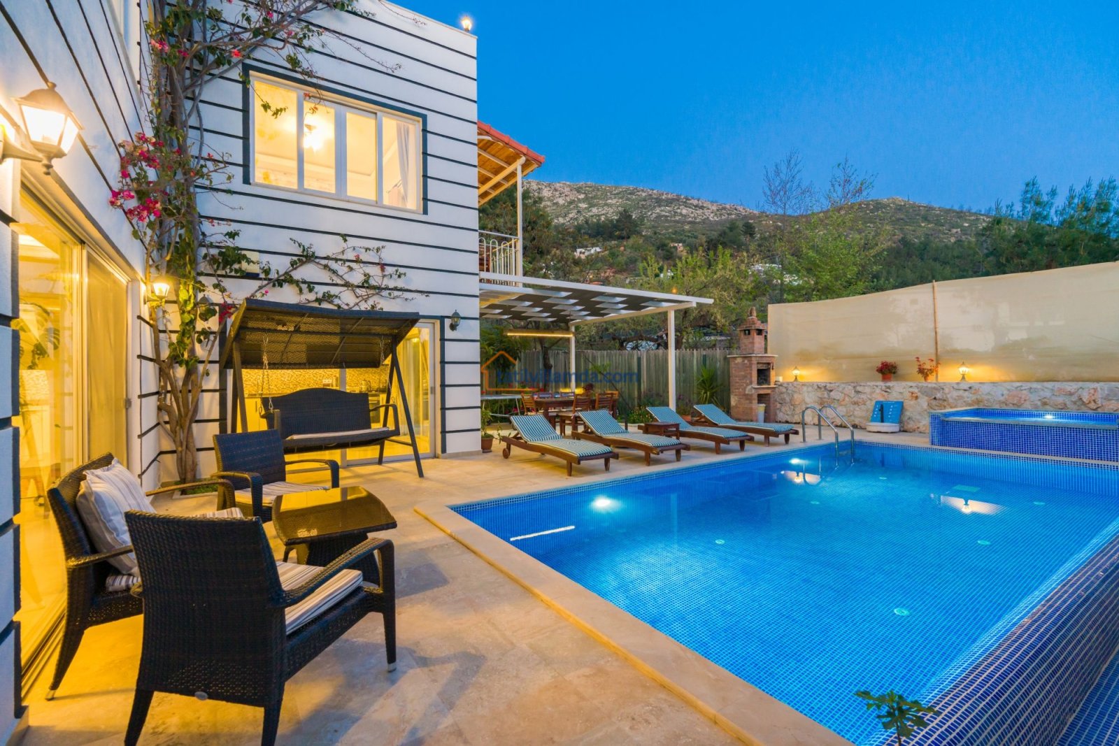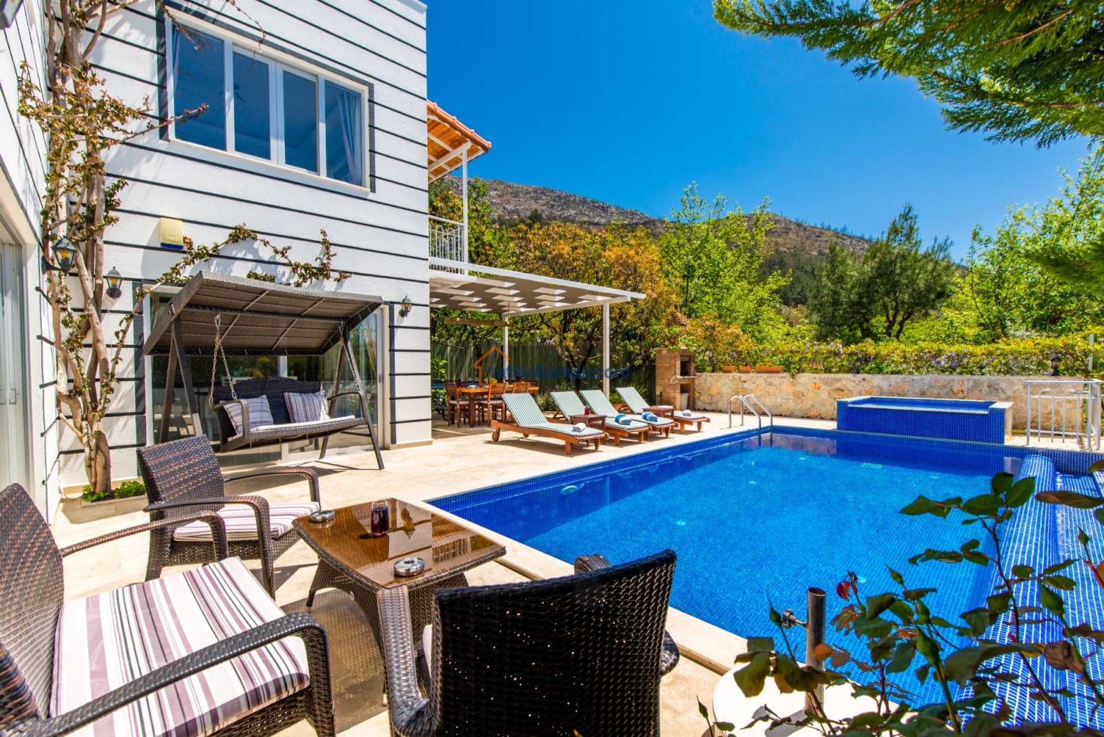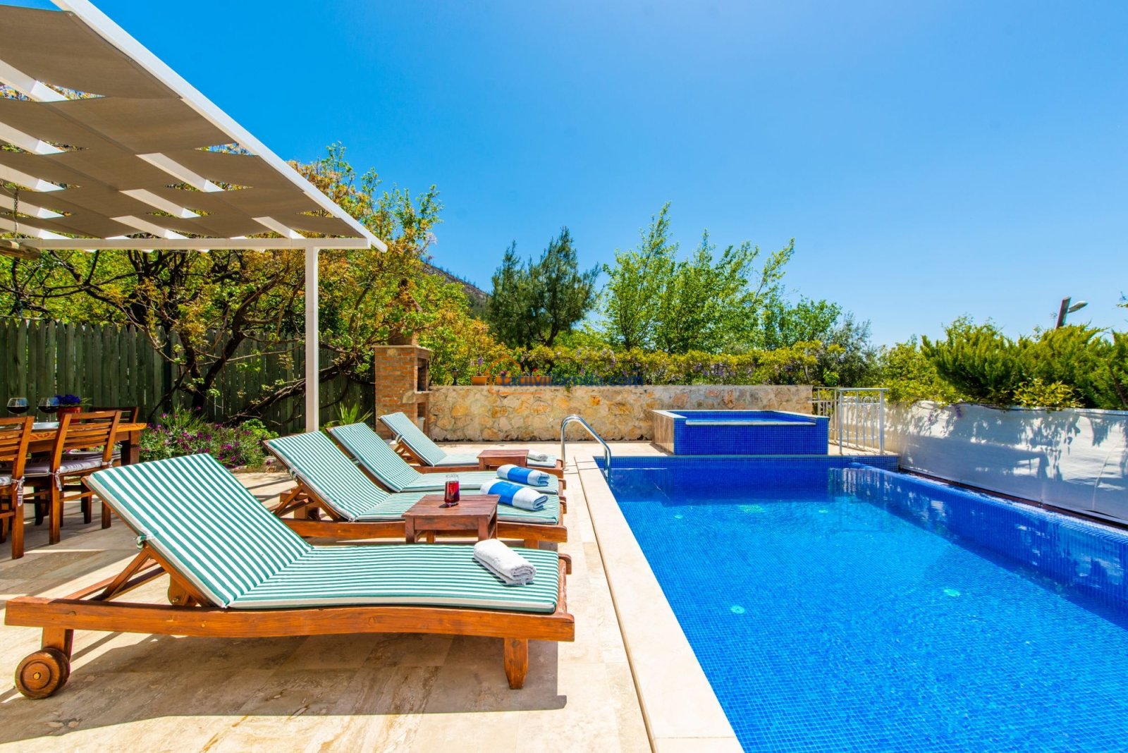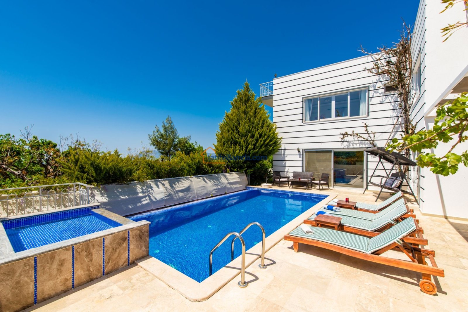 Kalkan Üzümlü’nün huzurlu atmosferinde yer alan bu geniş ve ferah villamız, konforlu donanımı ve modern mimarisiyle misafirlerine ayrıcalıklı bir tatil deneyimi sunuyor. Ebeveyn odasında yer alan özel jakuzi, tatilinize ekstra rahatlık katarken; yılın her döneminde kullanılabilen ısıtmalı havuz sayesinde dört mevsim keyifli bir konaklama mümkündür.