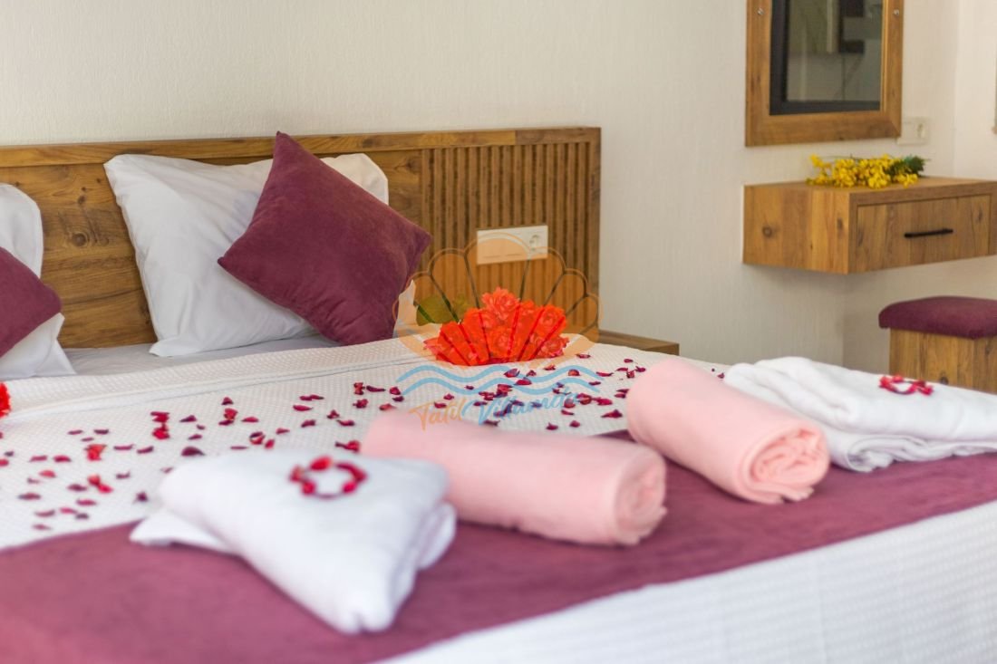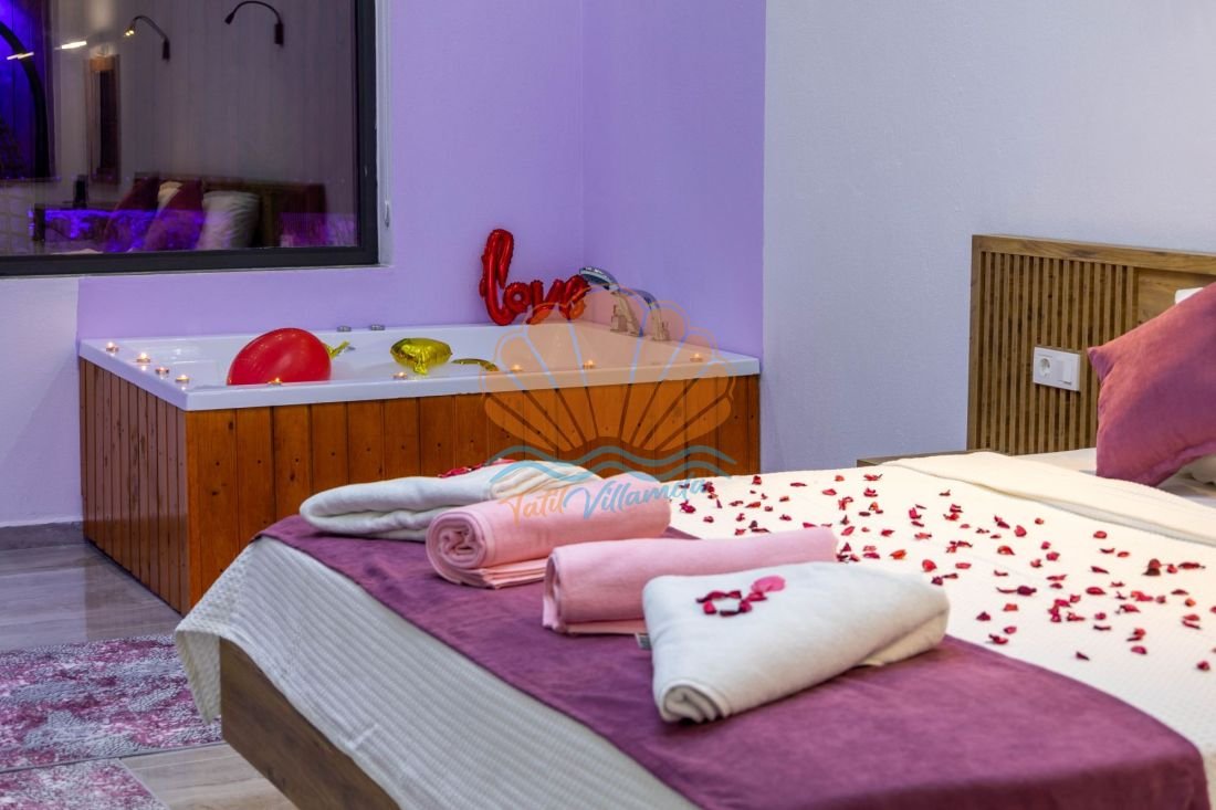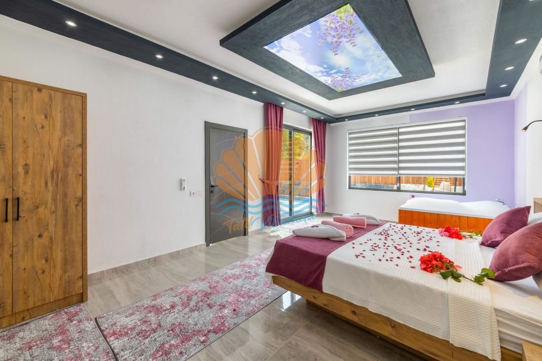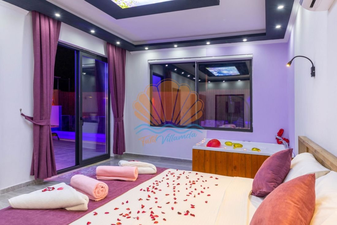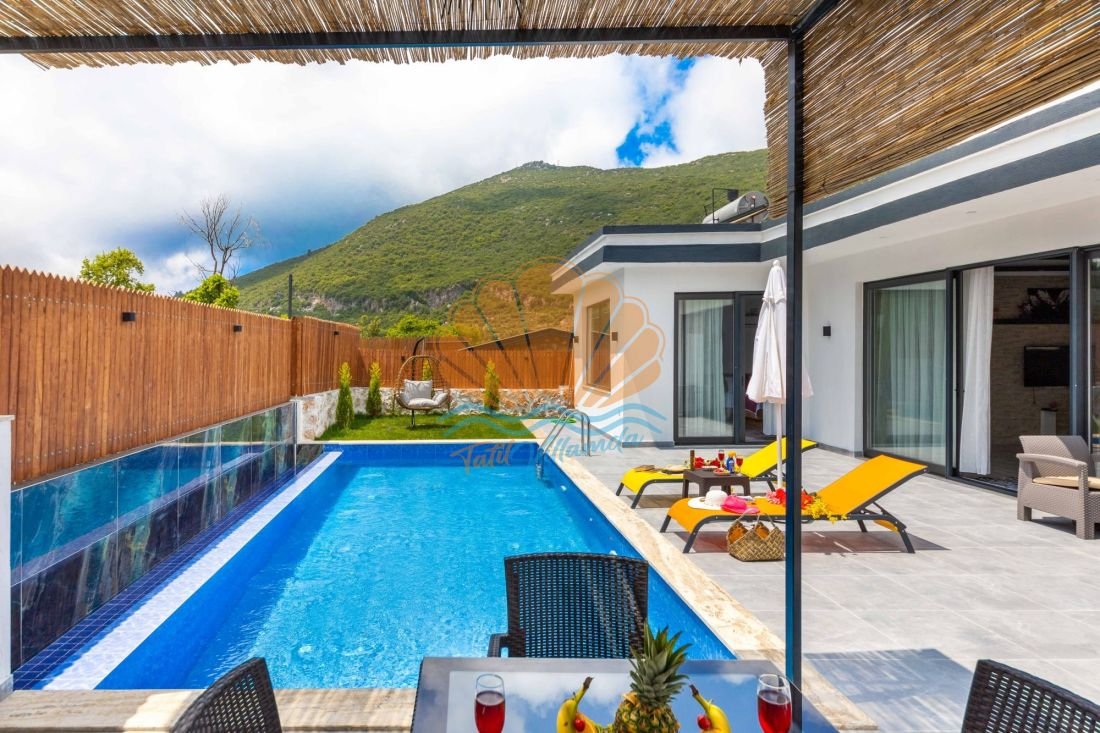Kalkan Sarıbelen mevkiinde konumlanan, doğa ile iç içe, korunaklı özel havuzlu yapısıyla özellikle balayı çiftleri ve muhafazakar tatil arayan misafirler için tasarlanmış lüks bir kiralık villadır. Tek yatak odalı ve 2 kişi konaklama kapasiteli olan villa, romantik ve huzurlu bir tatil geçirmek isteyen çiftler için ideal bir seçenek sunar. Gözlerden uzak yapısı sayesinde havuz alanı tamamen korunaklıdır ve dışarıdan görünmez.