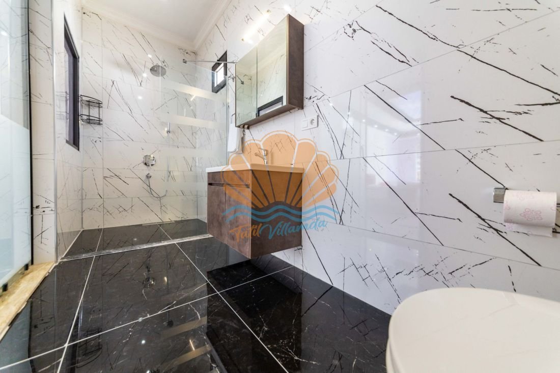 Villanın bahçe ve havuz terası oldukça kullanışlıdır. Özel yüzme havuzu, güneşlenme alanı, şezlonglar ve şemsiye ile gün boyu keyifli vakit geçirebilirsiniz. Havuz başındaki salıncak ve bahçe oturma grubu, akşam saatlerinde dinlenmek için ideal bir ortam sunar. Barbekü alanı sayesinde açık havada yemek keyfi yaşayabilir, doğa manzarası eşliğinde unutulmaz anlar biriktirebilirsiniz.