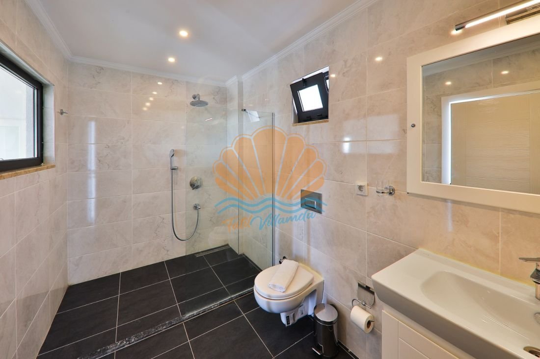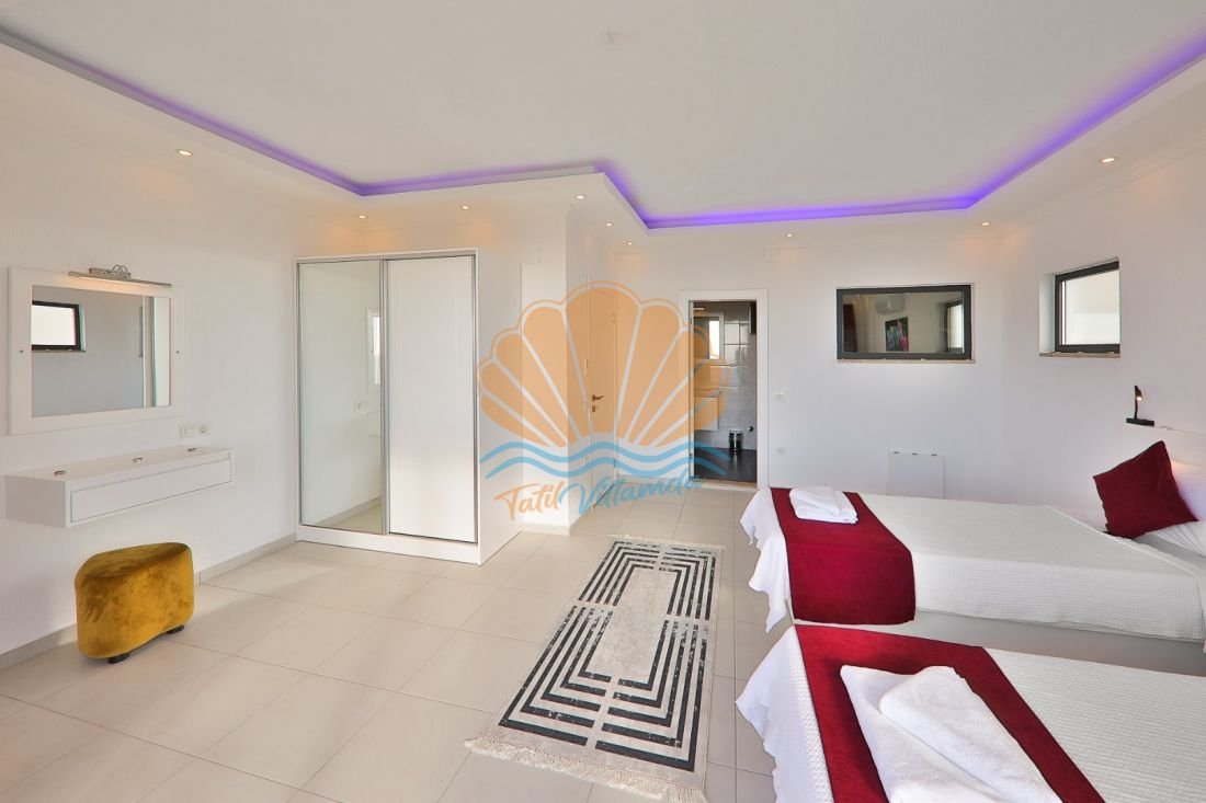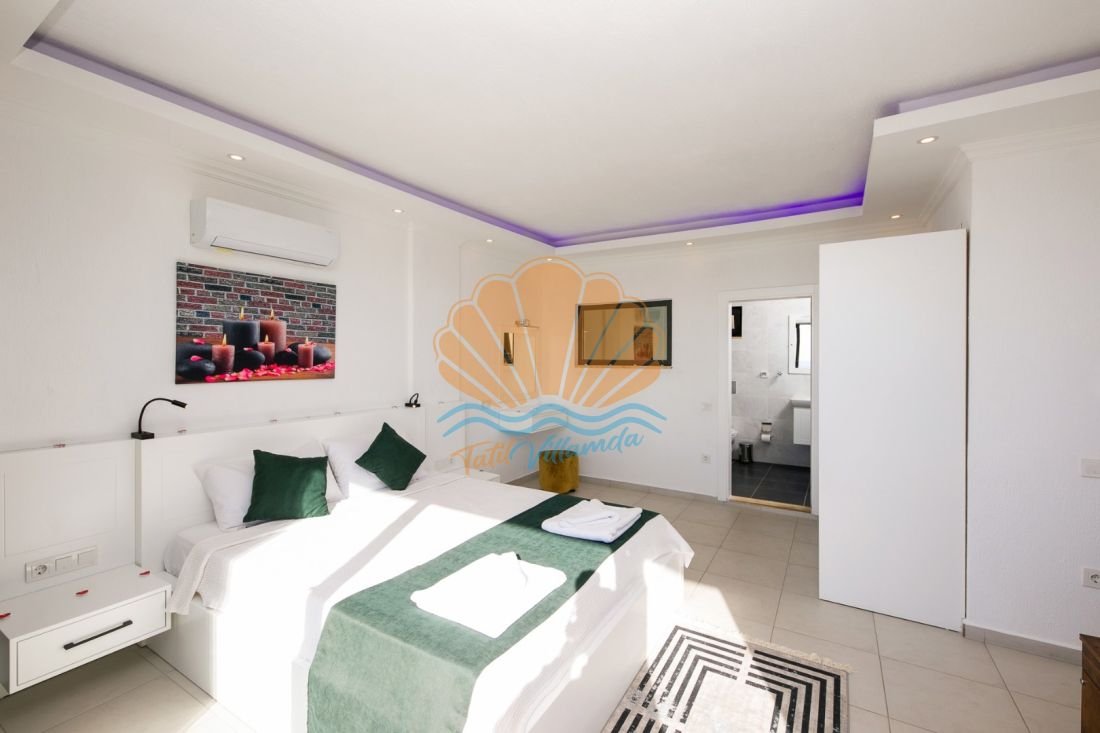 2 yatak odalı ve 4 kişi konaklama kapasitesine sahip olan villada tüm odalar ebeveyn banyoludur. Ferah süit yatak odasında bulunan jakuzi, tatilinize ekstra keyif ve rahatlama katar. Geniş salon alanı, konforlu oturma grubu ve tam donanımlı mutfağı ile evinizdeki rahatlığı aratmayacak şekilde tasarlanmıştır. Büyük pencereler sayesinde gün boyu doğal ışık alan yaşam alanı, deniz manzarasıyla birleşerek huzurlu bir atmosfer oluşturur.