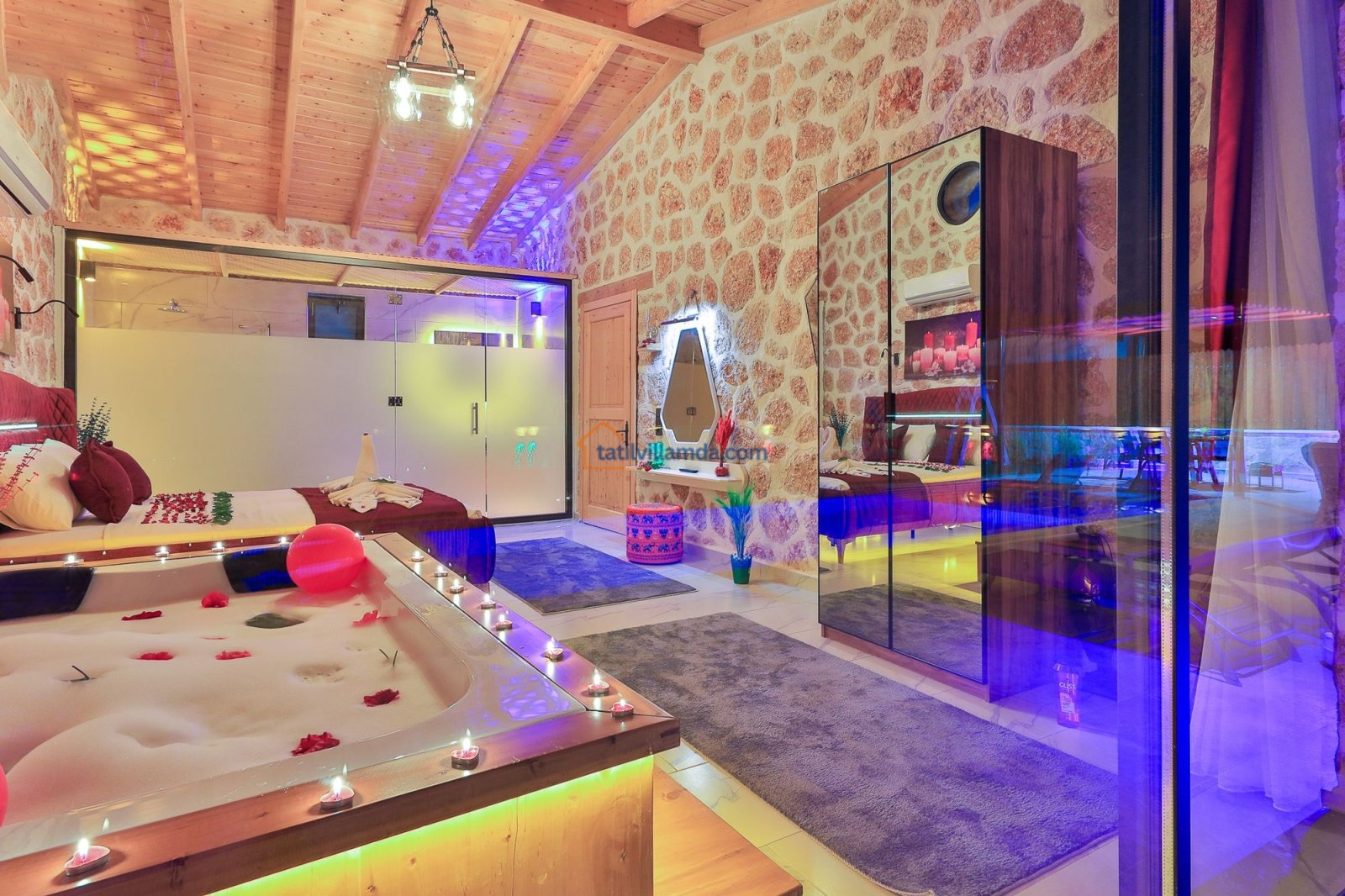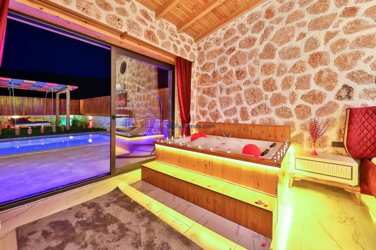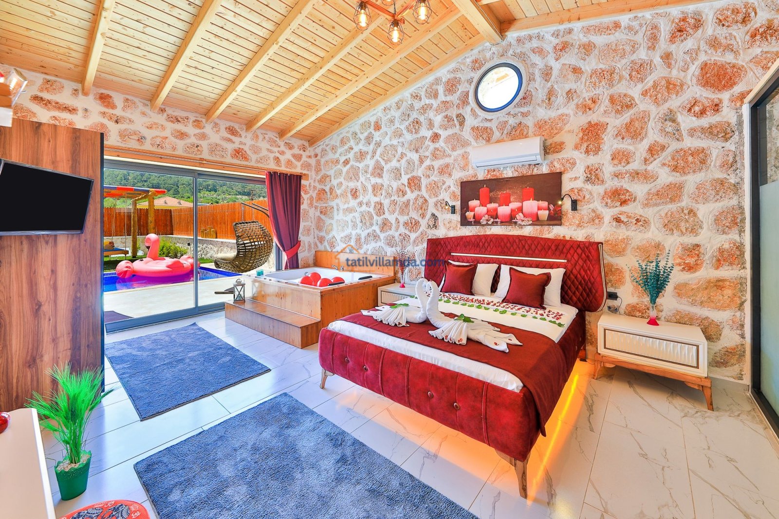 Kalkan Sarıbelen’de doğayla iç içe, tamamen korunaklı 10×4 metre genişliğinde özel havuzu ile mahremiyet arayan misafirler için ideal bir konaklama imkanı sunar. 2 yatak odalı ve 5 kişilik kapasiteye sahip villamız, ebeveyn banyolu yapısıyla aileler ve arkadaş grupları için son derece konforludur. Bir yatak odasında çift kişilik yatak ve jakuzi bulunurken, diğer yatak odasında bir çift kişilik yatak ve bir tek kişilik yatak yer alır. Tüm odalar modern, lüks ve özenle seçilmiş mobilyalarla dizayn edilmiştir.