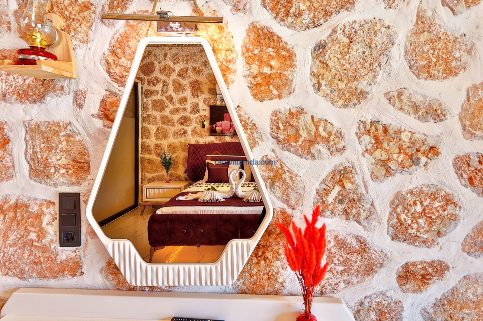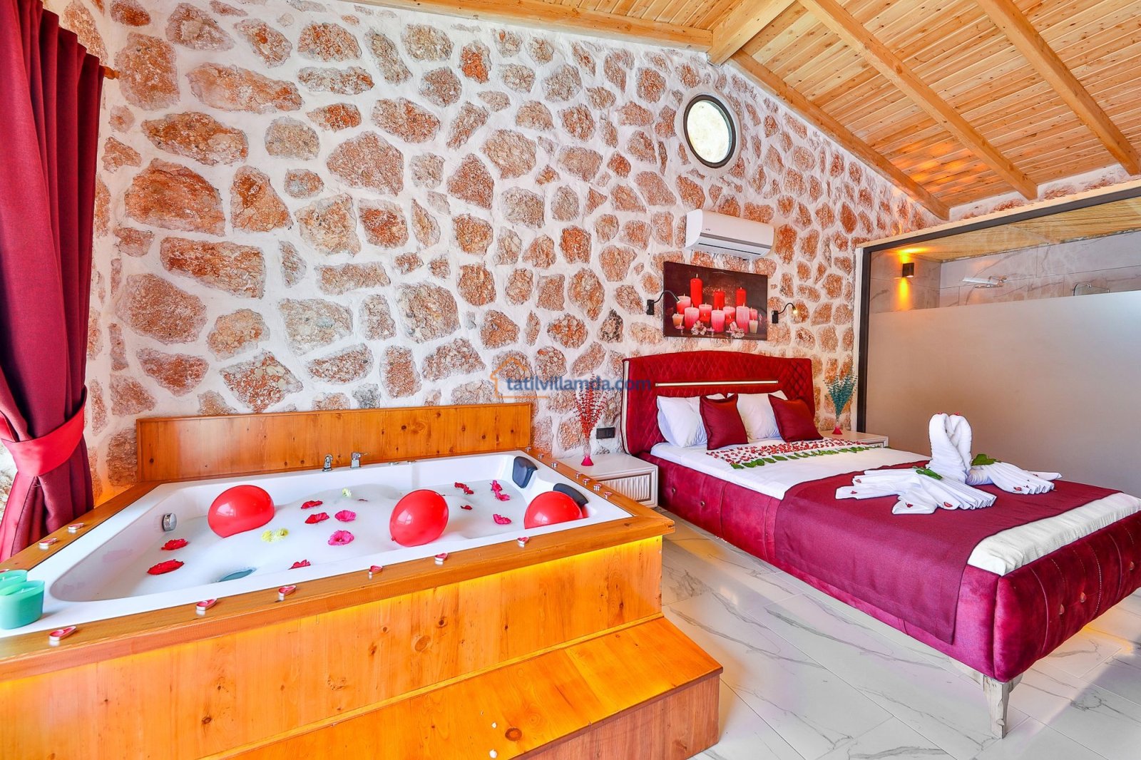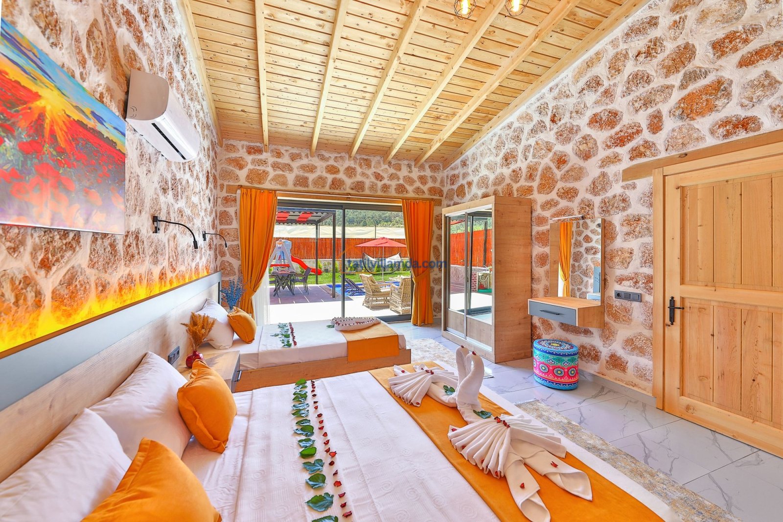 Kalkan Sarıbelen’de doğayla iç içe, tamamen korunaklı 10×4 metre genişliğinde özel havuzu ile mahremiyet arayan misafirler için ideal bir konaklama imkanı sunar. 2 yatak odalı ve 5 kişilik kapasiteye sahip villamız, ebeveyn banyolu yapısıyla aileler ve arkadaş grupları için son derece konforludur. Bir yatak odasında çift kişilik yatak ve jakuzi bulunurken, diğer yatak odasında bir çift kişilik yatak ve bir tek kişilik yatak yer alır. Tüm odalar modern, lüks ve özenle seçilmiş mobilyalarla dizayn edilmiştir.